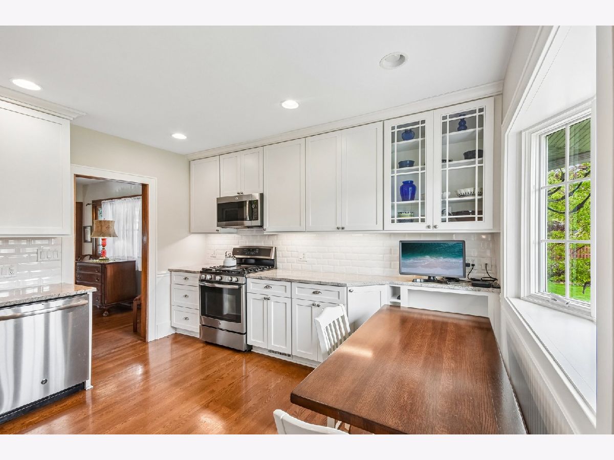 Welcome home to 821 N Grove, a beautifully updated 3-bedroom, 2-bath bungalow where timeless character meets modern updates. Set on a picturesque North Oak Park block, a charming brick paver walkway leads to a welcoming screened-in front porch-perfect for morning coffee or unwinding at the end of the day. Inside, enjoy easy first-floor living with two bedrooms on the main level. The living room features a cozy gas fireplace, while the living and dining rooms showcase leaded glass windows, original woodwork, and hardwood floors; the dining room is highlighted by an original built-in hutch. The completely renovated kitchen is both stylish & functional featuring granite countertops, stainless steel appliances, white shaker cabinetry with glass inlays, and a bright eat-in nook overlooking the beautifully landscaped backyard. The main floor bathroom has been thoughtfully updated with tile finishes, a walk-in shower, and luxurious heated floors. The primary bedroom features a walk-in closet. The fully renovated basement adds over 800 square feet of additional living space, featuring new flooring and lighting, a fully renovated second full bath, a true third bedroom with egress, a storage room, and a spacious laundry area. Step outside to your own private retreat-a fully fenced, deep yard filled with mature landscaping, including a magnolia tree, lilacs, hydrangeas, and a variety of perennials. The oversized, newly stained deck with a built-in gas line is ready for effortless outdoor entertaining. Ideally located near Mann Elementary, Lindberg Park, Field Rec Center, public transportation, I-290, and all the conveniences of downtown Oak Park, this move-in ready home offers the perfect blend of charm, thoughtful updates, and everyday convenience.