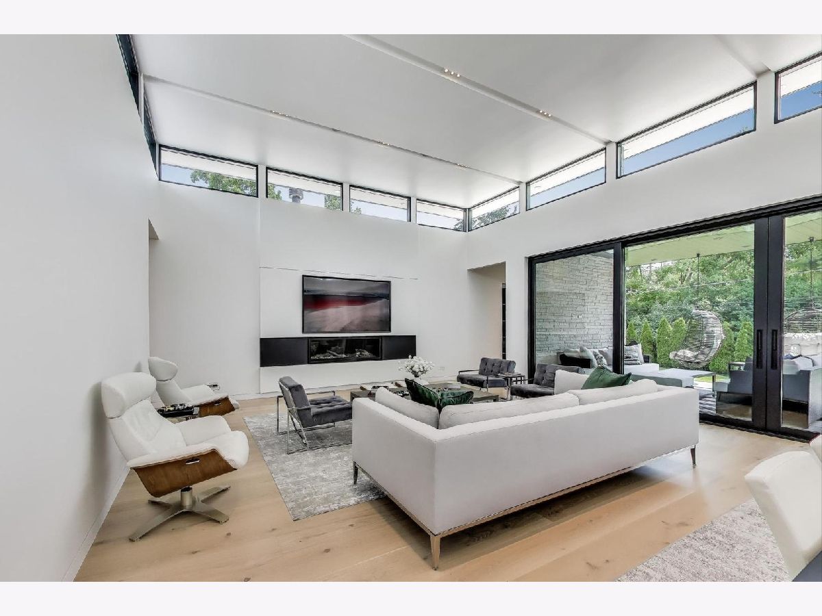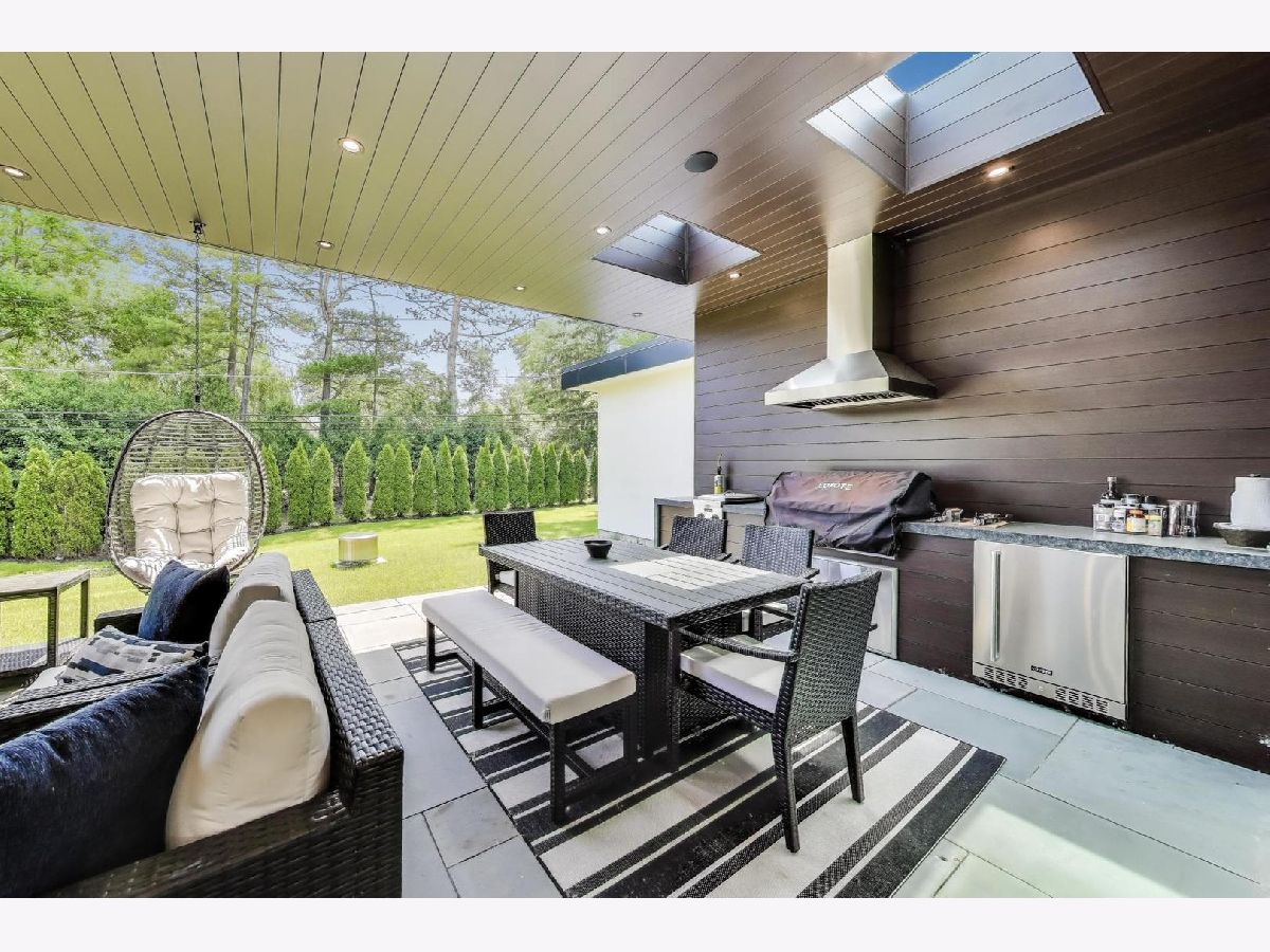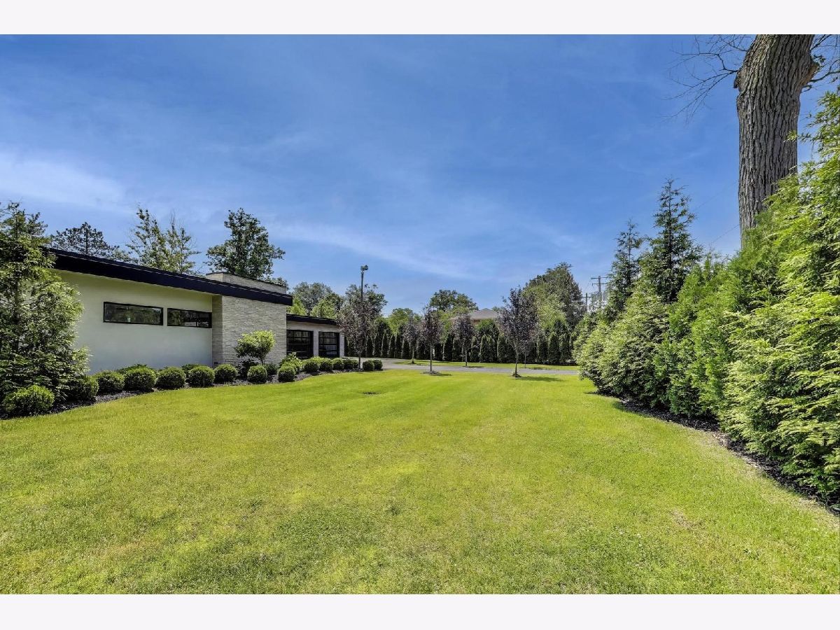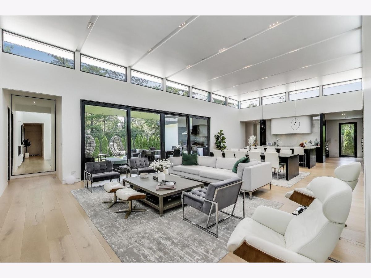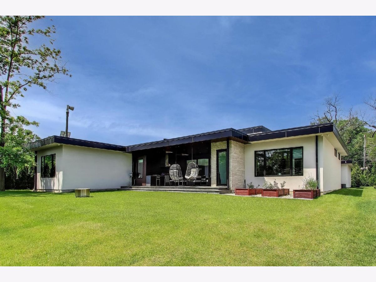 Modern Luxury Meets Everyday Comfort in a Prime Location! This custom-built new modern ranch, completed in 2022, offers a rare opportunity to enjoy thoughtfully designed single-level living on the North Shore, where newly built ranch homes of this quality are hard to come by. Striking architectural details and smart design converge in perfect harmony throughout. Soaring 14-foot ceilings and expansive windows flood the open floor plan with natural light, creating a bright, welcoming atmosphere complemented by wide-plank oak floors and integrated surround sound throughout the home. At the heart of the home lies a chef's dream kitchen, featuring top-of-the-line Miele appliances, custom cabinetry, and an oversized island with a prep sink, perfect for both entertaining and daily living. The primary suite is a true retreat, complete with heated bathroom floors and a spa-inspired bath boasting a freestanding soaking tub, spacious glass-enclosed shower, dual vanities, and an impressive walk-in closet. Each secondary bedroom includes its own en-suite bath and walk-in closet, offering comfort and privacy for family and guests alike. The fourth bedroom provides flexible space for a guest suite, home office, or creative studio. Entertain or unwind in your outdoor living room, where all but one wall is enclosed. Outfitted with a built-in grill, dual burners, Sonos sound system, and outdoor TV hookup, it's ideal for year-round enjoyment. Two built-in mudrooms, conveniently located at each garage entry, keep daily life organized, while the four-car garage with electric car hookup and epoxy floors adds exceptional functionality. The professionally landscaped yard is bordered by mature evergreens, offering both beauty and privacy. Smart security cameras accessible from any device provide added peace of mind. Ideally located in award-winning District 39 (Romona Elementary) and District 203 (New Trier High School), this home sits just across from the North Branch Trail and Harms Woods Forest Preserve. Enjoy nature, biking, and scenic walks just steps away, with easy access to top restaurants, Old Orchard Mall, parks, and the I-94 Expressway.