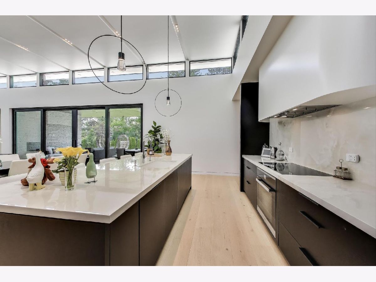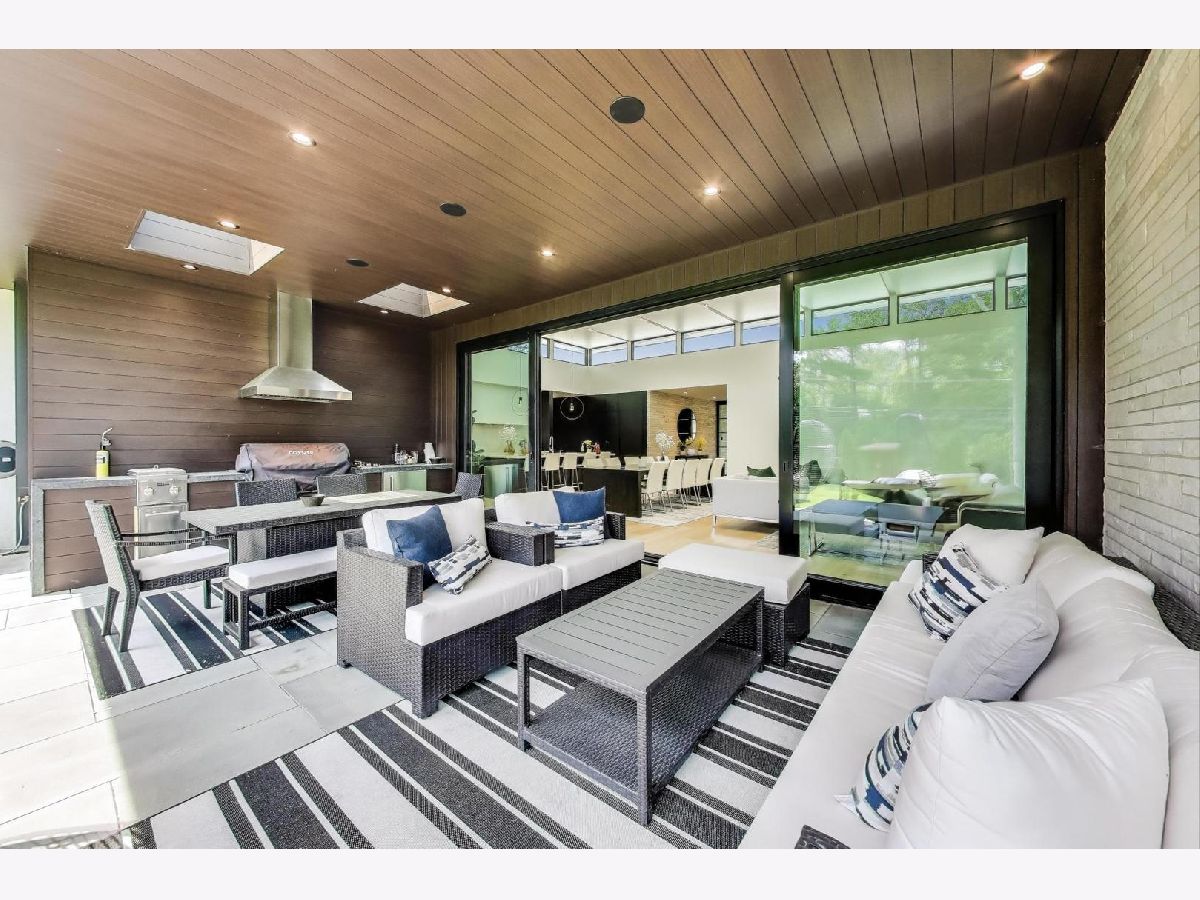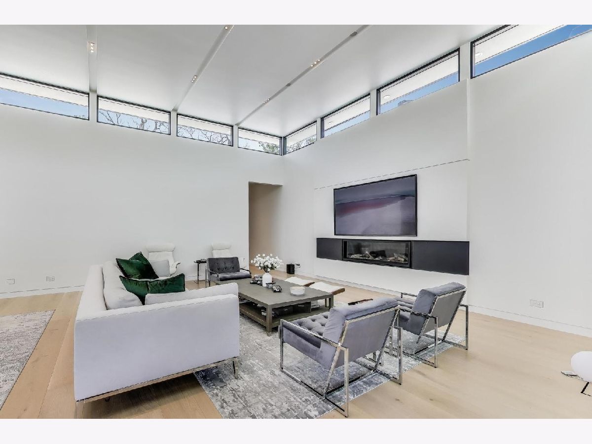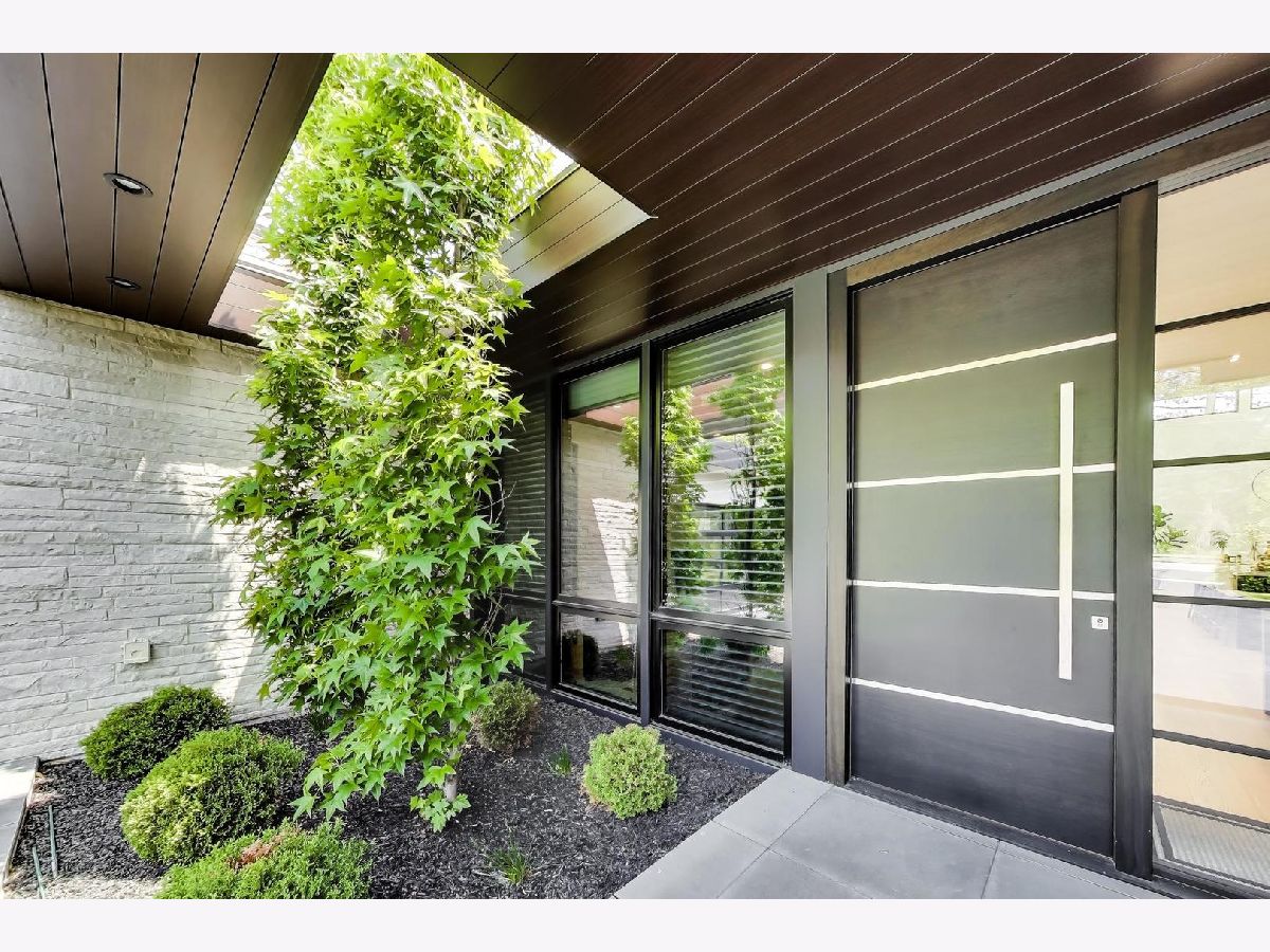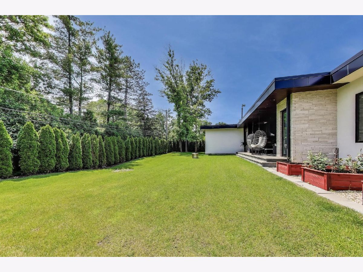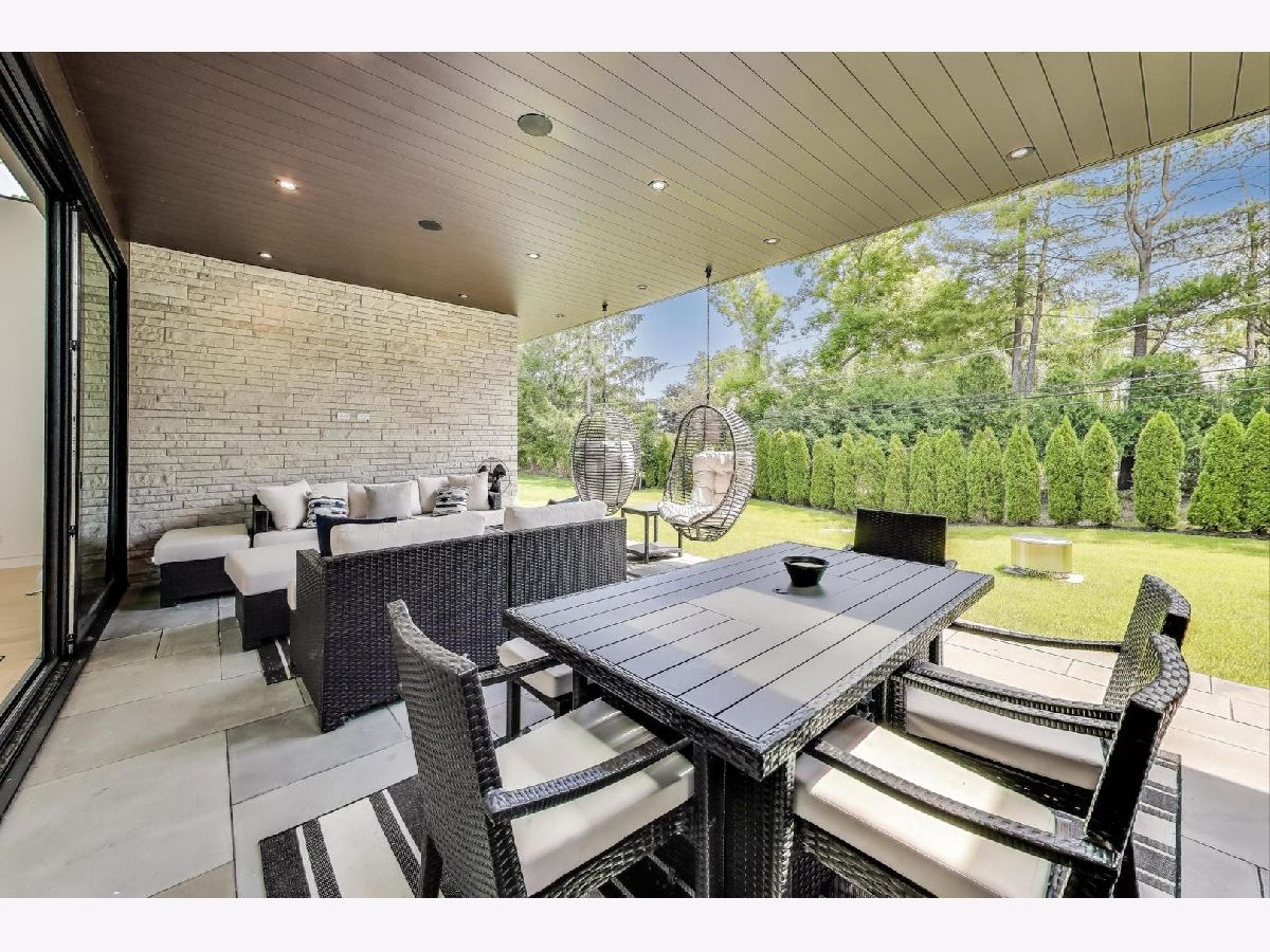 Modern Luxury Meets Everyday Comfort in a Prime Location! This custom-built new modern ranch, completed in 2022, offers a rare opportunity to enjoy thoughtfully designed single-level living on the North Shore, where newly built ranch homes of this quality are hard to come by. Striking architectural details and smart design converge in perfect harmony throughout. Soaring 14-foot ceilings and expansive windows flood the open floor plan with natural light, creating a bright, welcoming atmosphere complemented by wide-plank oak floors and integrated surround sound throughout the home. At the heart of the home lies a chef's dream kitchen, featuring top-of-the-line Miele appliances, custom cabinetry, and an oversized island with a prep sink, perfect for both entertaining and daily living. The primary suite is a true retreat, complete with heated bathroom floors and a spa-inspired bath boasting a freestanding soaking tub, spacious glass-enclosed shower, dual vanities, and an impressive walk-in closet. Each secondary bedroom includes its own en-suite bath and walk-in closet, offering comfort and privacy for family and guests alike. The fourth bedroom provides flexible space for a guest suite, home office, or creative studio. Entertain or unwind in your outdoor living room, where all but one wall is enclosed. Outfitted with a built-in grill, dual burners, Sonos sound system, and outdoor TV hookup, it's ideal for year-round enjoyment. Two built-in mudrooms, conveniently located at each garage entry, keep daily life organized, while the four-car garage with electric car hookup and epoxy floors adds exceptional functionality. The professionally landscaped yard is bordered by mature evergreens, offering both beauty and privacy. Smart security cameras accessible from any device provide added peace of mind. Ideally located in award-winning District 39 (Romona Elementary) and District 203 (New Trier High School), this home sits just across from the North Branch Trail and Harms Woods Forest Preserve. Enjoy nature, biking, and scenic walks just steps away, with easy access to top restaurants, Old Orchard Mall, parks, and the I-94 Expressway.