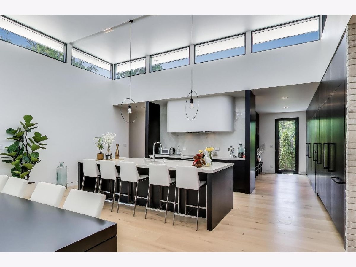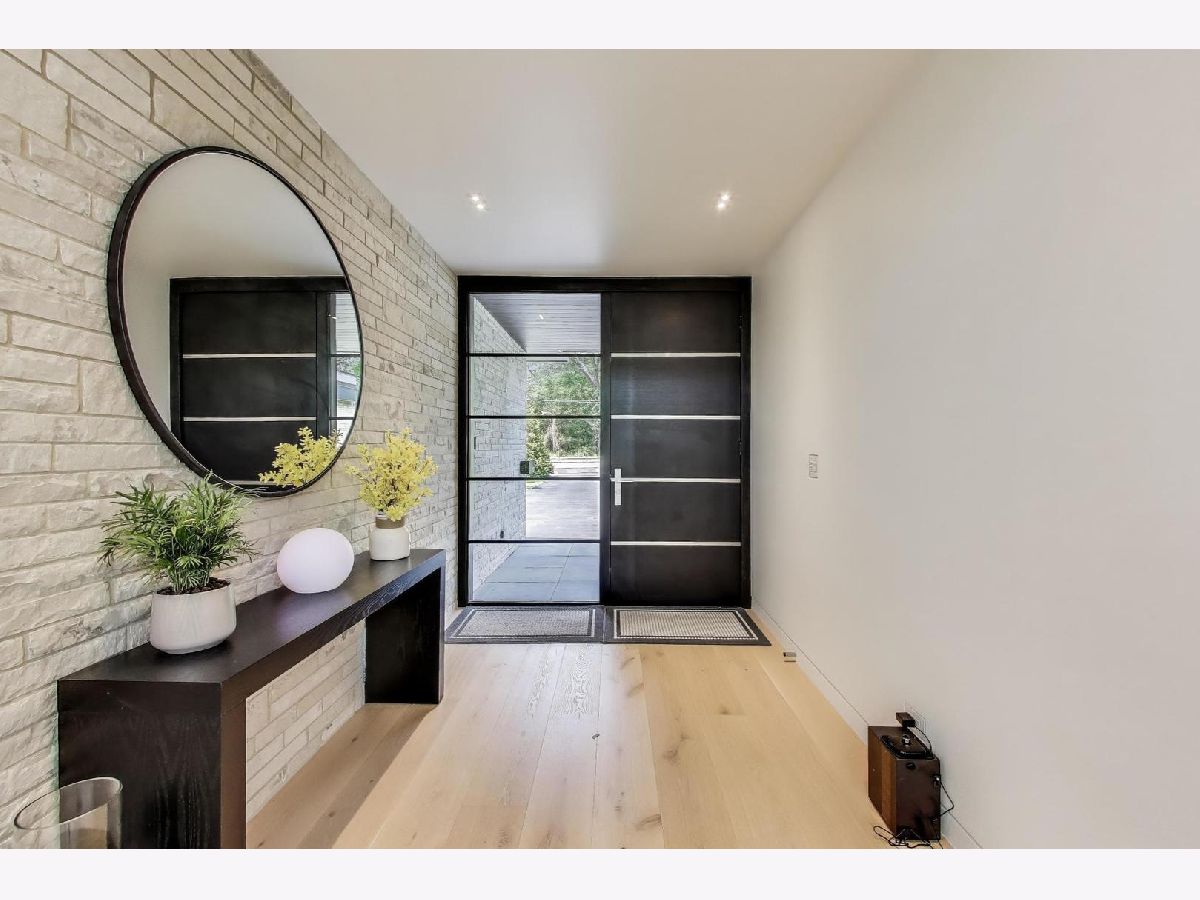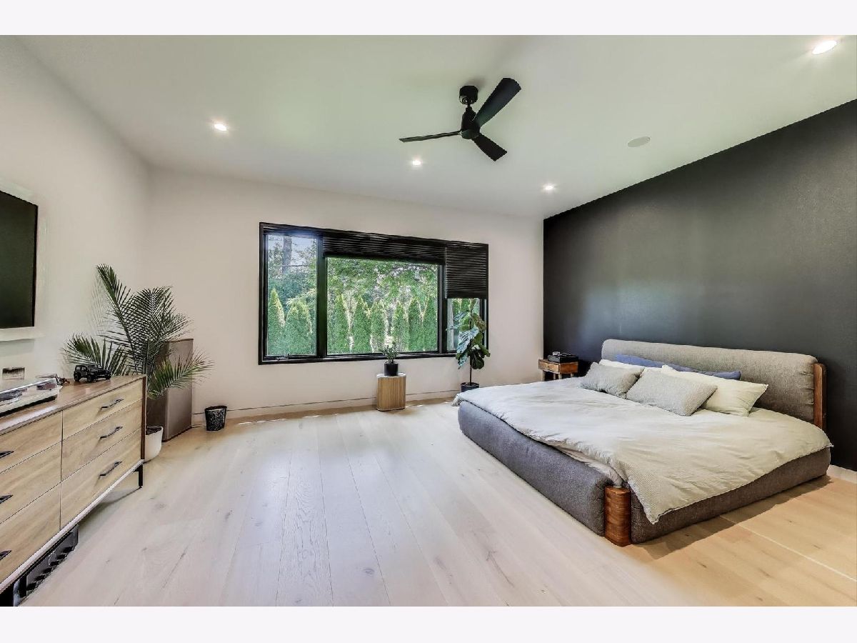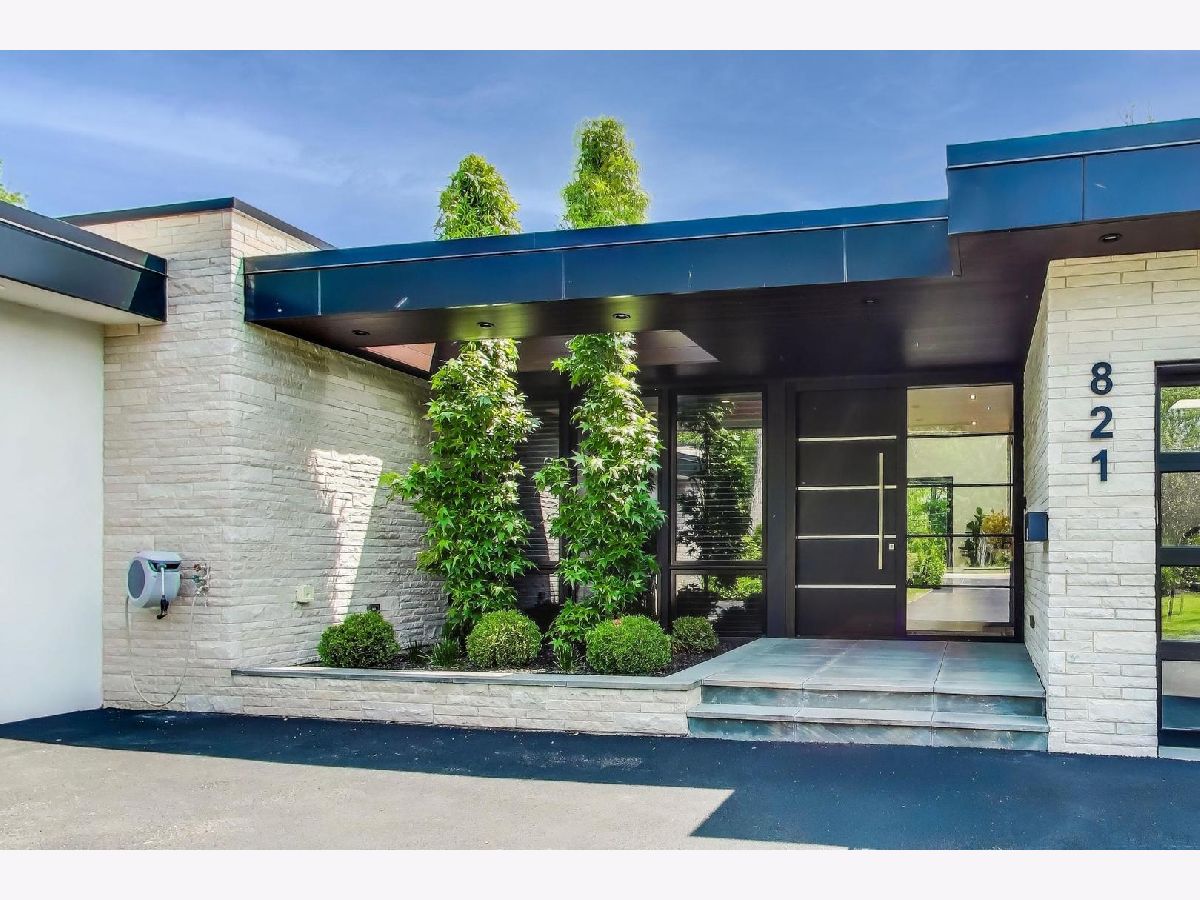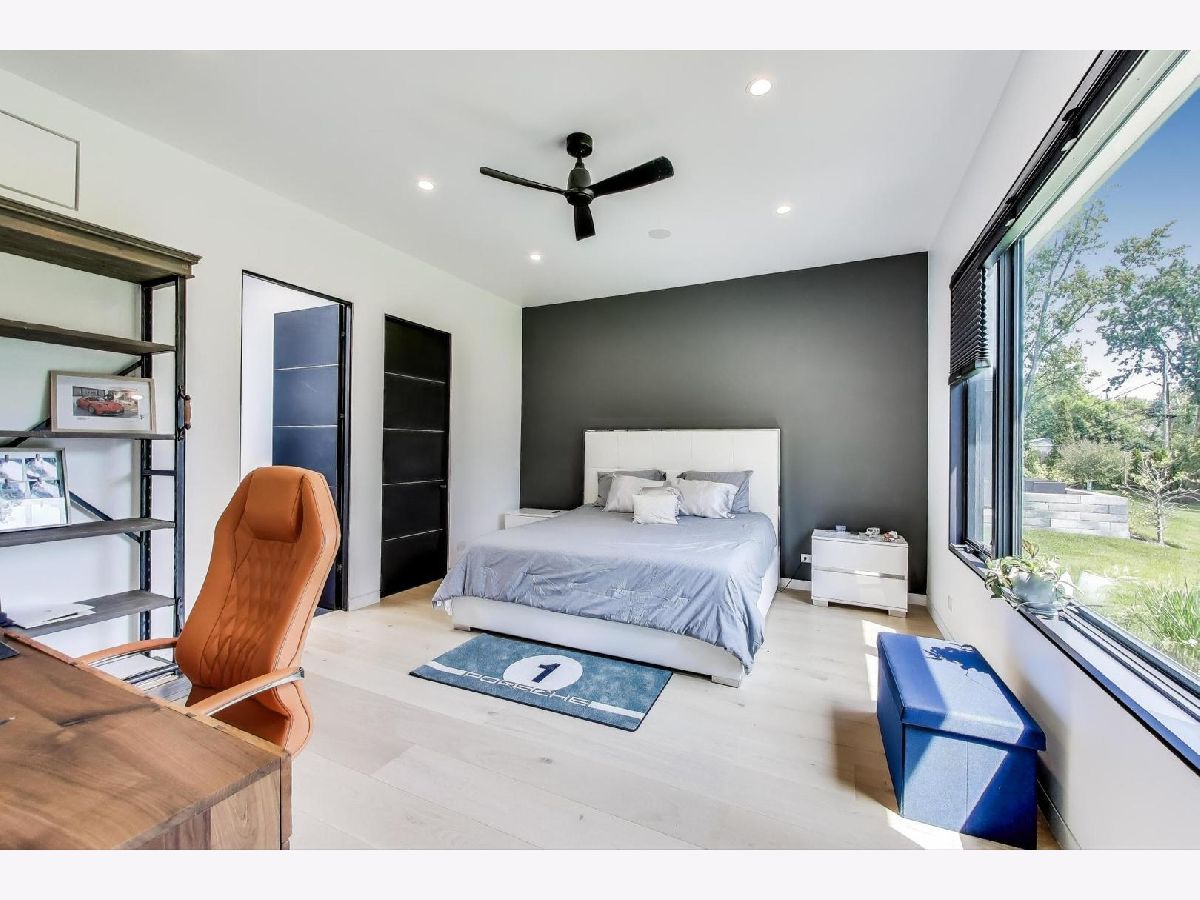 Modern Luxury Meets Everyday Comfort in a Prime Location! This custom-built new modern ranch, completed in 2022, offers a rare opportunity to enjoy thoughtfully designed single-level living on the North Shore, where newly built ranch homes of this quality are hard to come by. Striking architectural details and smart design converge in perfect harmony throughout. Soaring 14-foot ceilings and expansive windows flood the open floor plan with natural light, creating a bright, welcoming atmosphere complemented by wide-plank oak floors and integrated surround sound throughout the home. At the heart of the home lies a chef's dream kitchen, featuring top-of-the-line Miele appliances, custom cabinetry, and an oversized island with a prep sink, perfect for both entertaining and daily living. The primary suite is a true retreat, complete with heated bathroom floors and a spa-inspired bath boasting a freestanding soaking tub, spacious glass-enclosed shower, dual vanities, and an impressive walk-in closet. Each secondary bedroom includes its own en-suite bath and walk-in closet, offering comfort and privacy for family and guests alike. The fourth bedroom provides flexible space for a guest suite, home office, or creative studio. Entertain or unwind in your outdoor living room, where all but one wall is enclosed. Outfitted with a built-in grill, dual burners, Sonos sound system, and outdoor TV hookup, it's ideal for year-round enjoyment. Two built-in mudrooms, conveniently located at each garage entry, keep daily life organized, while the four-car garage with electric car hookup and epoxy floors adds exceptional functionality. The professionally landscaped yard is bordered by mature evergreens, offering both beauty and privacy. Smart security cameras accessible from any device provide added peace of mind. Ideally located in award-winning District 39 (Romona Elementary) and District 203 (New Trier High School), this home sits just across from the North Branch Trail and Harms Woods Forest Preserve. Enjoy nature, biking, and scenic walks just steps away, with easy access to top restaurants, Old Orchard Mall, parks, and the I-94 Expressway.