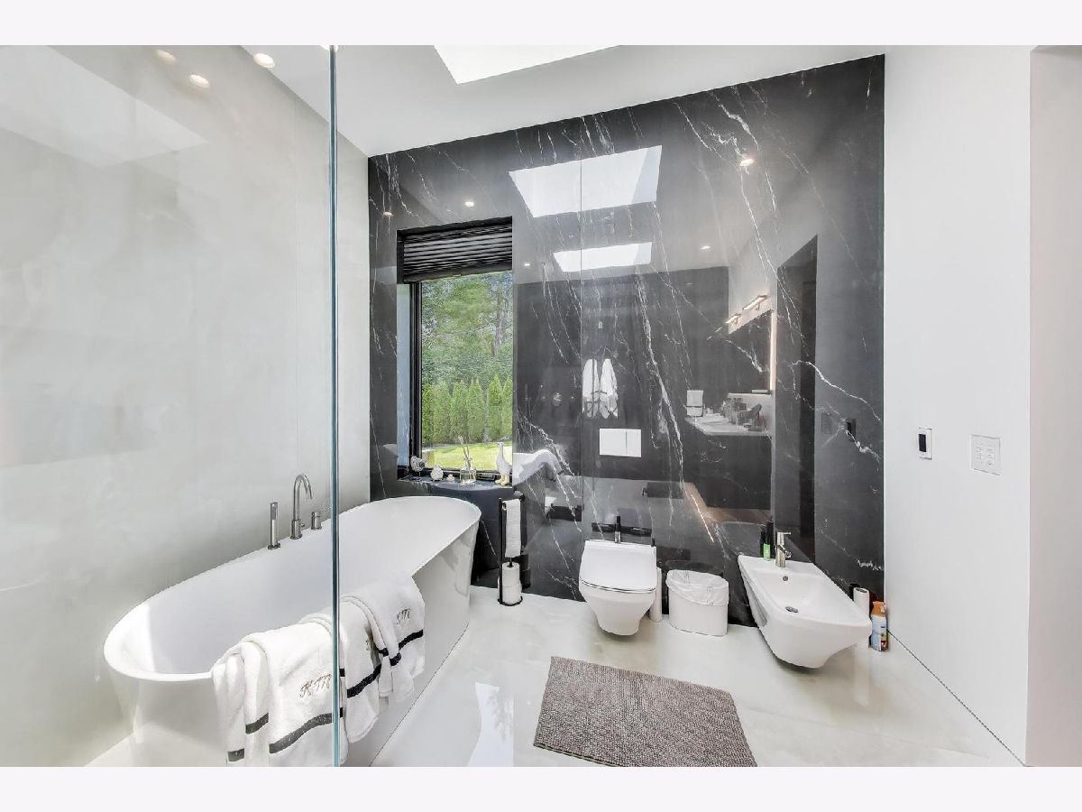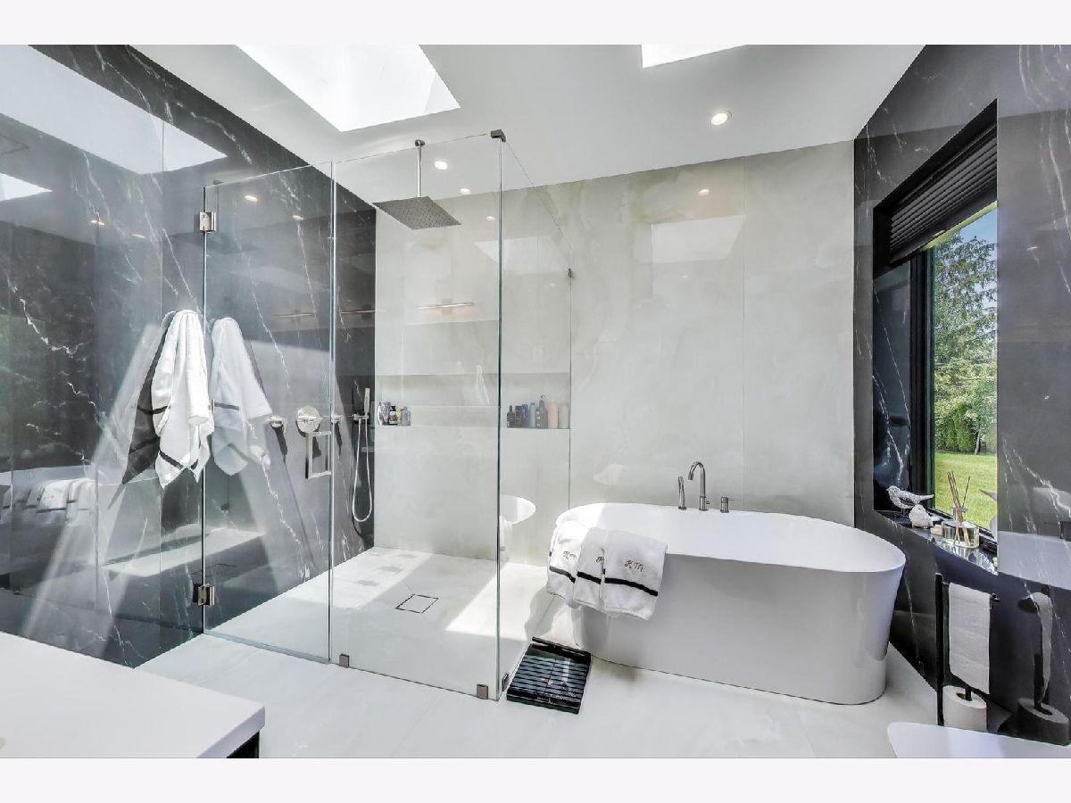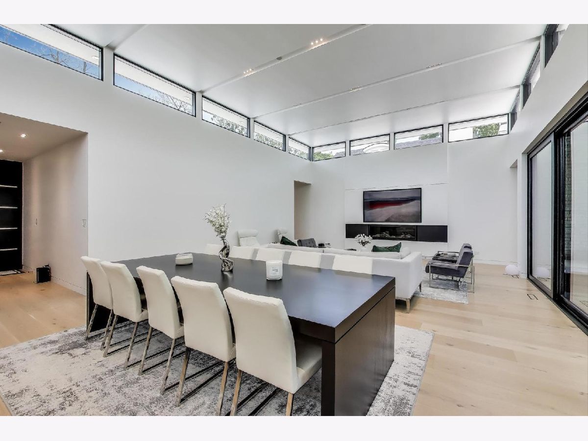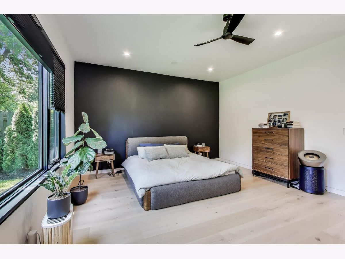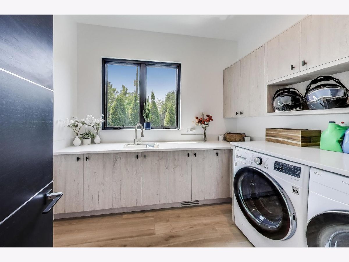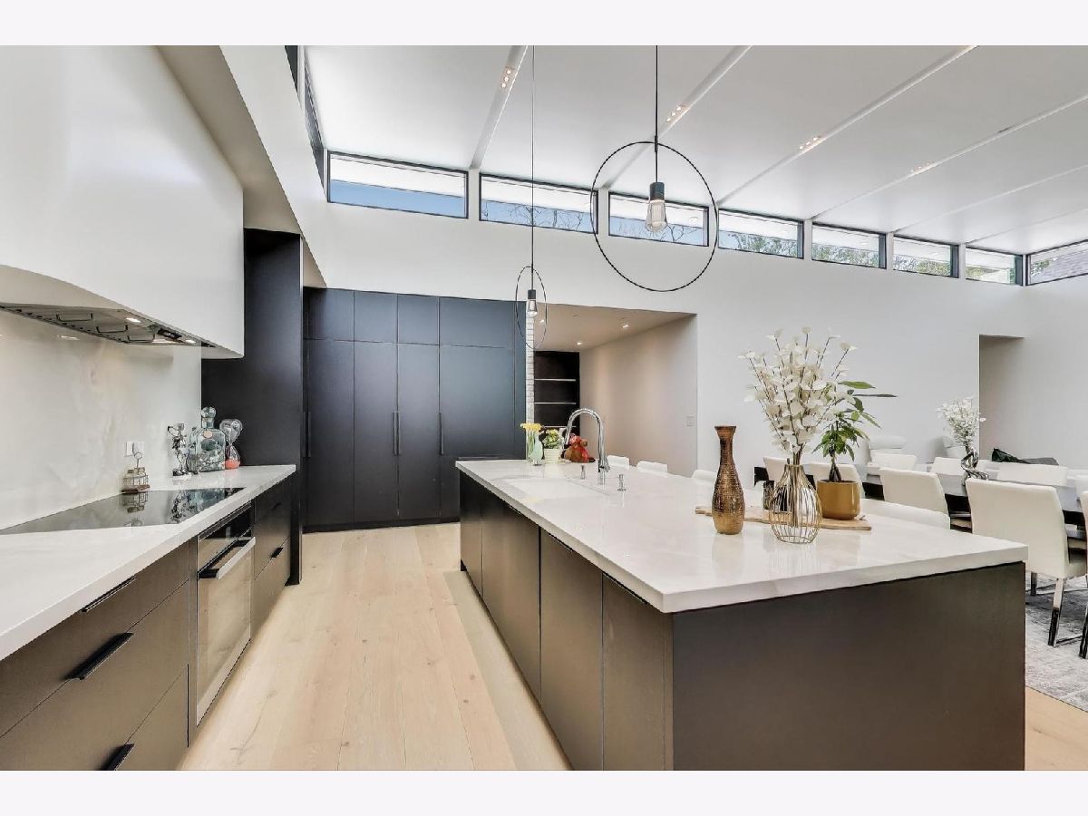 Modern Luxury Meets Everyday Comfort in a Prime Location! This custom-built new modern ranch, completed in 2022, offers a rare opportunity to enjoy thoughtfully designed single-level living on the North Shore, where newly built ranch homes of this quality are hard to come by. Striking architectural details and smart design converge in perfect harmony throughout. Soaring 14-foot ceilings and expansive windows flood the open floor plan with natural light, creating a bright, welcoming atmosphere complemented by wide-plank oak floors and integrated surround sound throughout the home. At the heart of the home lies a chef's dream kitchen, featuring top-of-the-line Miele appliances, custom cabinetry, and an oversized island with a prep sink, perfect for both entertaining and daily living. The primary suite is a true retreat, complete with heated bathroom floors and a spa-inspired bath boasting a freestanding soaking tub, spacious glass-enclosed shower, dual vanities, and an impressive walk-in closet. Each secondary bedroom includes its own en-suite bath and walk-in closet, offering comfort and privacy for family and guests alike. The fourth bedroom provides flexible space for a guest suite, home office, or creative studio. Entertain or unwind in your outdoor living room, where all but one wall is enclosed. Outfitted with a built-in grill, dual burners, Sonos sound system, and outdoor TV hookup, it's ideal for year-round enjoyment. Two built-in mudrooms, conveniently located at each garage entry, keep daily life organized, while the four-car garage with electric car hookup and epoxy floors adds exceptional functionality. The professionally landscaped yard is bordered by mature evergreens, offering both beauty and privacy. Smart security cameras accessible from any device provide added peace of mind. Ideally located in award-winning District 39 (Romona Elementary) and District 203 (New Trier High School), this home sits just across from the North Branch Trail and Harms Woods Forest Preserve. Enjoy nature, biking, and scenic walks just steps away, with easy access to top restaurants, Old Orchard Mall, parks, and the I-94 Expressway.