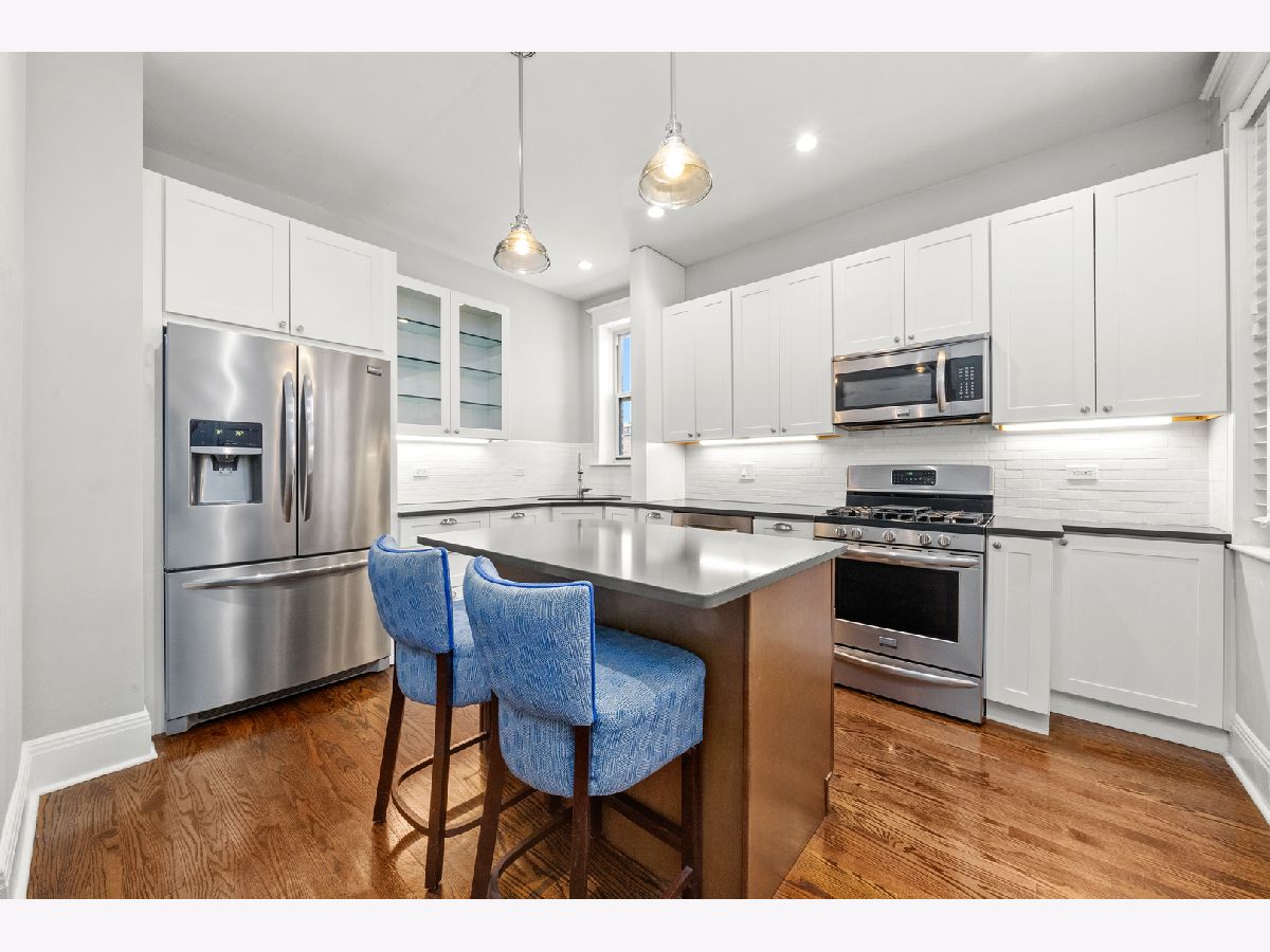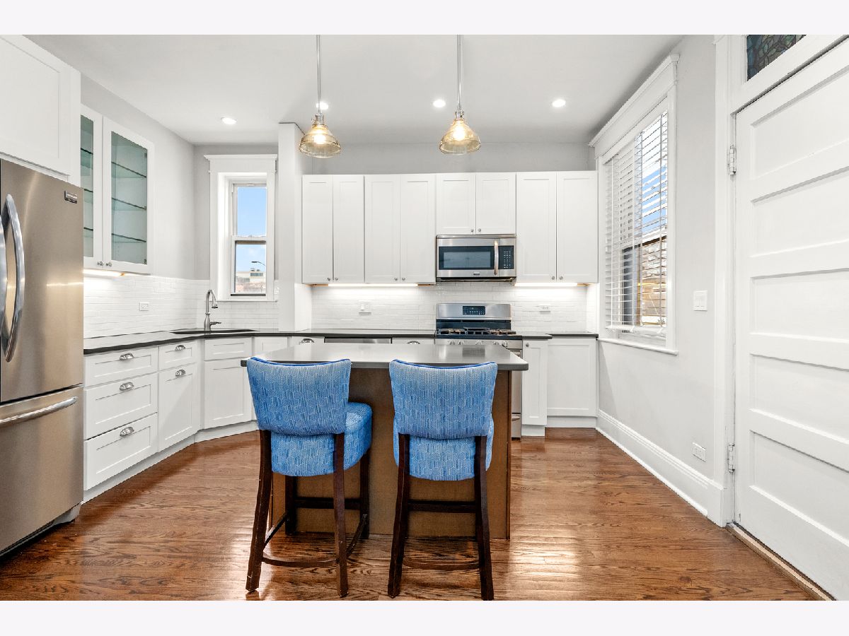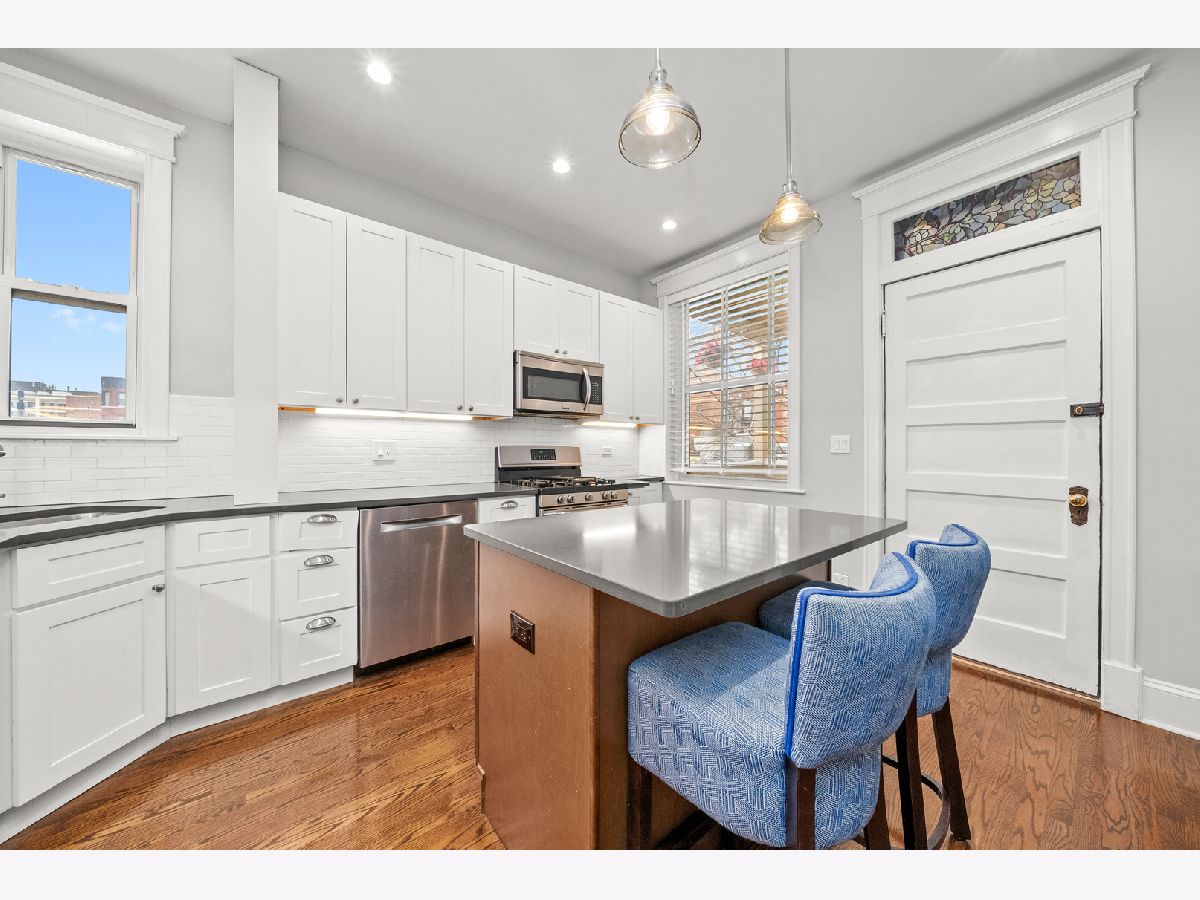 Located in the heart of it all! This fabulous vintage 3-bedroom, 2-bathroom second-floor condo offers the perfect blend of classic character and modern updates, complete with a private patio! The updated kitchen features quartz countertops, white cabinetry with under-cabinet lighting, and newer appliances. A built-in banquette with storage enhances the dining area, and a stylish dry-bar nook adds a sophisticated touch. The timeless living room includes a decorative fireplace and large windows that fill the space with natural light. Enjoy the spacious back deck-ideal for grilling or entertaining. The primary and guest bedrooms are both generously sized, while the third bedroom makes a perfect home office. A second bathroom was added in 2017, and the original bath was beautifully renovated with a restored clawfoot tub. All closets are outfitted with custom organizational systems. Additional highlights include hardwood floors throughout, 10-foot coved ceilings, wide white wood blinds, coat and linen closets in the hallway, in-unit laundry, and an assigned, private, lockable storage room in the basement. Easy street parking and nearby leased parking options. Unbeatable location! Right next door to Fresh Market and Cafe Deco at Diversey & Halsted. Just 0.1 miles to the Brown & Purple Lines, Home Depot, Walgreens, Fire Station 55, Sapori Trattoria, Matisse Tavern & Grill, and Max Tacos. Close to Trader Joe's at Clark & Diversey, TJ Maxx, Barnes & Noble, Hotel Versey, and the Lakefront. A perfect mix of timeless charm and modern convenience. Explore the property in 3D-click the 3D button for a full virtual walkthrough!