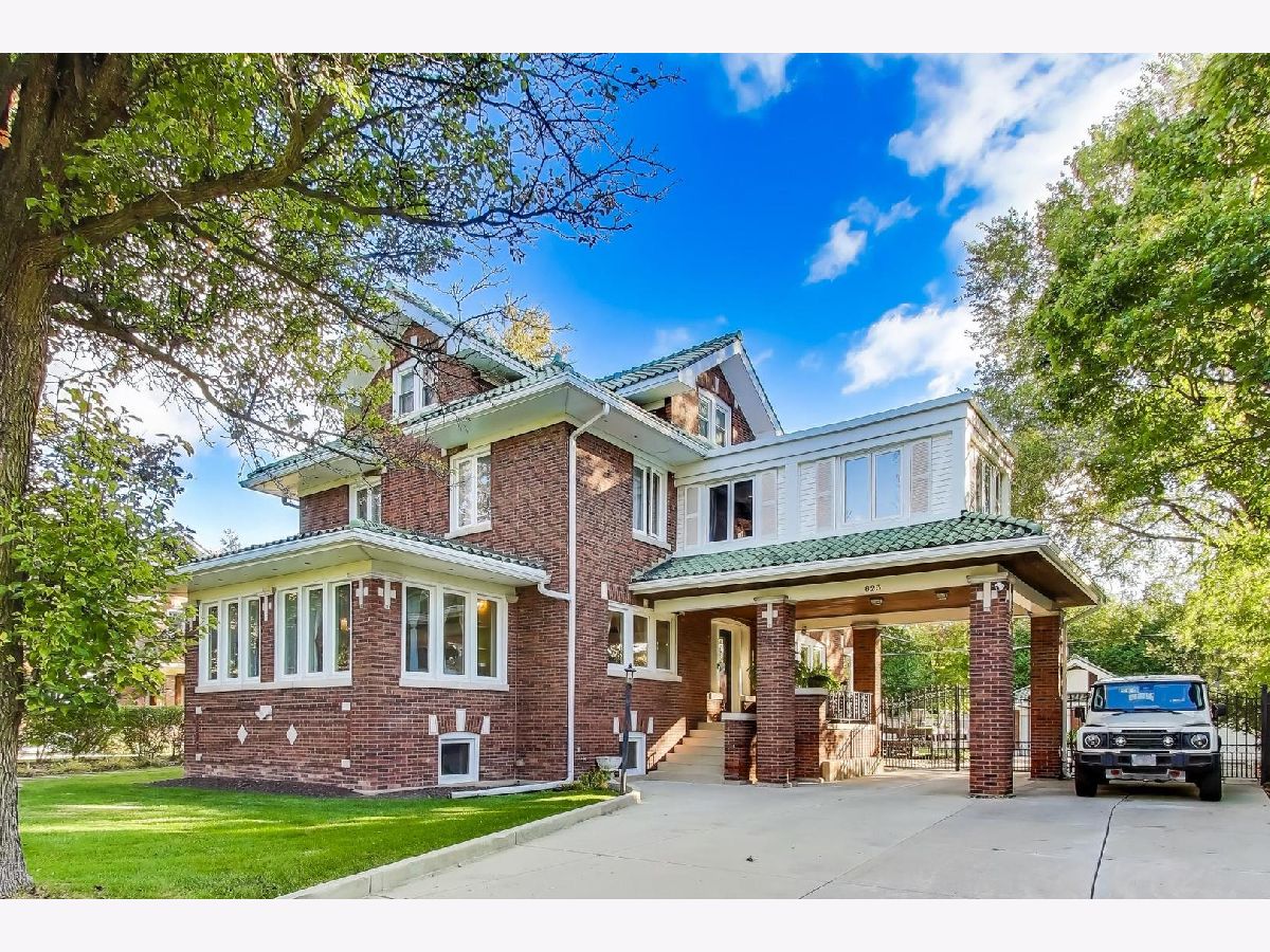 Welcome to 823 Jackson Ave- one of River Forest's most distinguished estates. Located in the heart of the coveted Estate District, this 1919 Buurma Bros-designed masterpiece blends Spanish, Prairie, and Arts & Crafts influences into a truly grand residence. Set on nearly a half-acre -it's the fourth largest private lot in River Forest. This 6-bedroom, 5.5-bath estate is a rare offering combining architectural pedigree, privacy, and modern luxury. A stately porte-cochere and new automatic gates set the tone for the property's grandeur, leading to a wide extended driveway and a 3-car garage tucked discreetly at the rear of the home for both convenience and privacy. Inside, a grand foyer evokes the ambiance of a five-star European hotel with a custom front door featuring original leaded glass and knuckle hinges, checkerboard marble flooring, grasscloth wall covering, coffered ceilings, and a refurbished sweeping staircase. Completely reimagined through a full renovation, every inch of this home has been thoughtfully restored and elevated with high-end, timeless finishes. The chef's kitchen showcases custom cabinetry, Viking appliances - double ovens, a French door refrigerator, built-in convection microwave, Thermador induction cooktop with downdraft ventilation, and double-laminated Blue Roma quartzite counters from a single Brazilian quarry, paired with a 3" end-cut maple butcher block island. The bathrooms are adorned with sleek marble tile, retro pedestal sinks, and spa-inspired fixtures. The 2nd floor showcases 3 bedrooms + den with 3 full baths. The primary suite offers an oversized en-suite bathroom as well as new California Closets walk-in with cedar walls and ceiling. The junior primary suite with ensuite bathroom has an attached den/office overlooking the backyard. The 3rd level has 2 bedrooms and full bathroom. The expansive lower level includes a large recreation room, office/fitness space, guest bedroom, full bath, laundry room, storage. Newer home systems throughout include; plumbing, electrical, windows, rebuilt clay tile roof and flood control with back-flow prevention. The outdoor space is a private sanctuary - perfect for entertaining or unwinding - with a large grassy yard and a completely renovated saltwater pool (2024: new coping, resurfacing, winterized lines, and new mechanicals). Located on one of River Forest's most picturesque, tree-lined streets, this home offers an ideal balance of privacy and convenience - close to top-rated schools, parks, shopping, dining, and the Metra for an easy 20-minute commute to downtown Chicago. 823 Jackson is more than a home - it's a legacy estate, a luxurious retreat, and a timeless work of art.