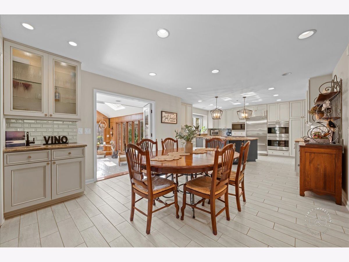 Set on nearly 3/4 of an acre backing to Delnor Woods, this all-brick home blends scale, style, and warmth in one exceptional offering. With over 6,400 sq. ft., 5 bedrooms, and 3.1 baths, it showcases rich hardwood floors, extensive millwork, and thoughtfully designed spaces throughout. A welcoming foyer sets the tone, leading to a formal dining room that flows seamlessly into the butler's pantry, walk-in pantry, and gourmet kitchen ideal for effortless entertaining. The kitchen is a true centerpiece, featuring Sub-Zero, Wolf, Thermador, and Miele appliances, new lighting, tile flooring, and a striking Ann Sacks tile backsplash. Just off the kitchen, a light-filled four-season sunroom with skylights offers a space you'll never want to leave, opening naturally to the family room for comfortable everyday living. The main level also includes a living room and private office, both with custom built-ins, along with an updated laundry room. Upstairs, four spacious bedrooms include a serene primary suite designed for rest and retreat. The finished lower level adds a fifth bedroom, full kitchen, and bath...perfect for guests, in-laws, or multigenerational living. Outdoors, mature trees and open space create a private, picturesque setting with endless possibilities for a pool, garden, or future vision. A rare opportunity in one of St. Charles' most sought-after locations-where space, privacy, and timeless style come together.