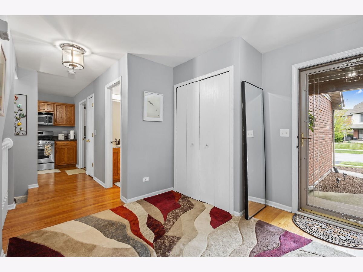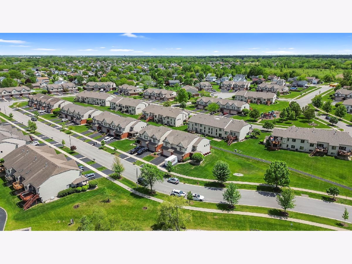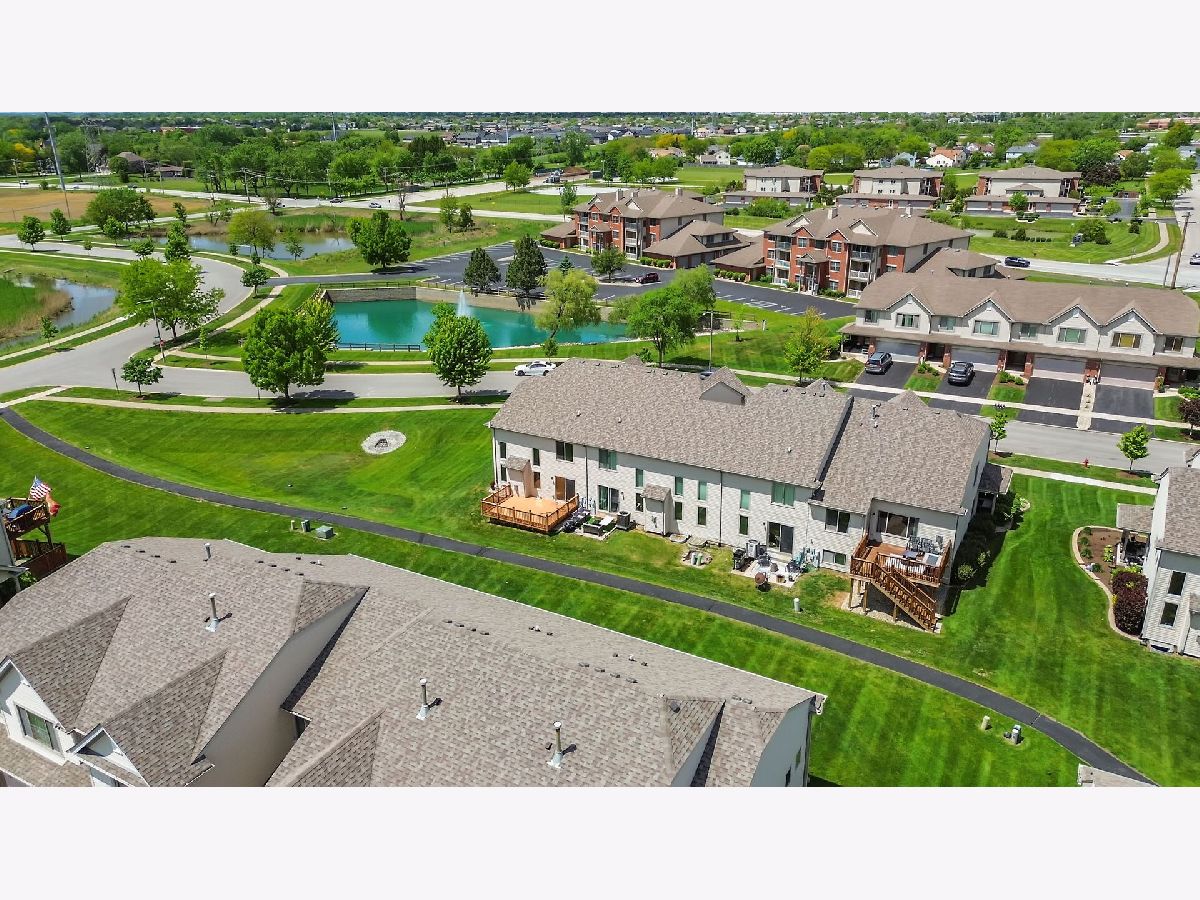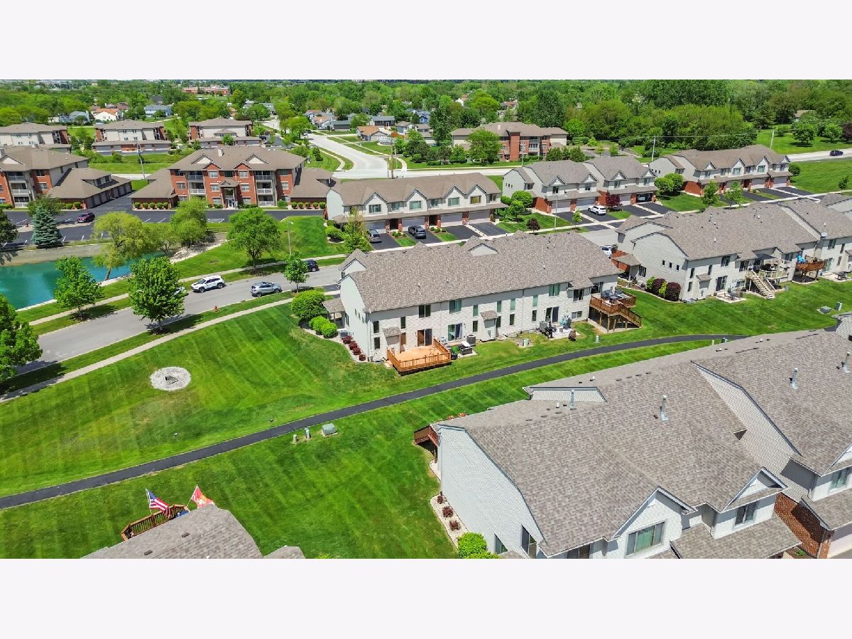 Welcome to this pet-friendly, spacious 3-bedroom, 2.5-bath townhome located in a highly desirable community featuring a subdivision park, multiple walking trails, three scenic ponds (including one with a fountain and nighttime lighting visible from the primary suite), and two serene gazebos. A large foyer opens to an impressive two-story living room with soaring 17' ceilings, double-stacked casement windows, a Heatilator-style gas fireplace, and updated recessed lighting and fixtures-filling the space with natural light and warmth. The main level offers hardwood floors throughout and an open-concept kitchen with ample cabinetry, breakfast-bar peninsula, pantry, and newer stainless steel appliances (range, refrigerator, microwave, dishwasher). A sliding door leads directly to the patio. Convenient main-floor laundry includes a washer, dryer, utility sink, and storage cabinetry. Additional features on the main level include a coat closet, garage access with added shelving, and an updated powder room with new paint, lighting, vanity top, and plumbing fixtures. Upstairs, you'll find three generously sized bedrooms, all updated with fresh paint, lighting, and carpeting. Both the shared bath and primary bath feature new paint, floor tile, countertops, faucets, plumbing fixtures, and lighting. The wide-open basement offers modern exposed rafters and abundant recessed lighting-ideal for a recreation room, home gym, or entertainment space. Other areas include a storage room, utility room, and a drywalled room with electric and roughed-in plumbing, ready for a future bathroom. Located less than 10 minutes from downtown Frankfort, restaurants, shopping, gyms, churches, and the Tinley Park-80th Ave Metra station. Major updates include: A/C (2024), Water Heater (2024), Roof (2023), Washer/Dryer (2022). All major items are NEW! Note: Bedroom window coverings and sliding-door curtains not included. Don't miss this incredible opportunity-schedule your showing today! Home is in great condition but is being sold as is