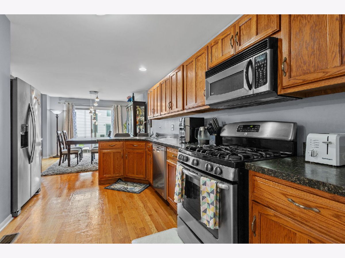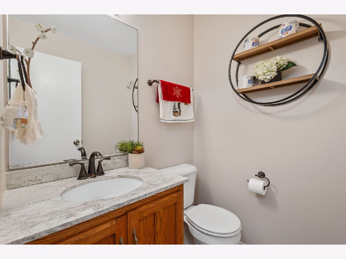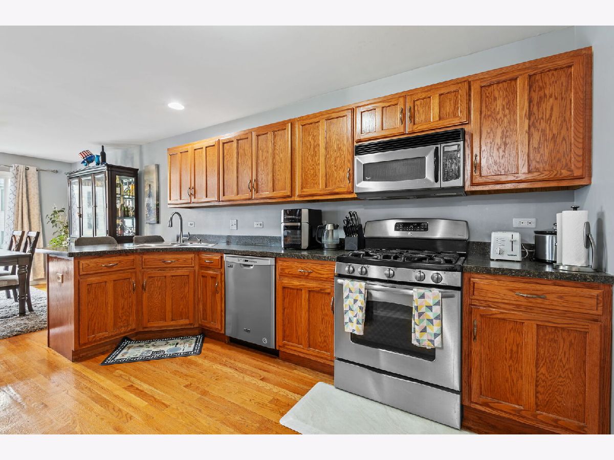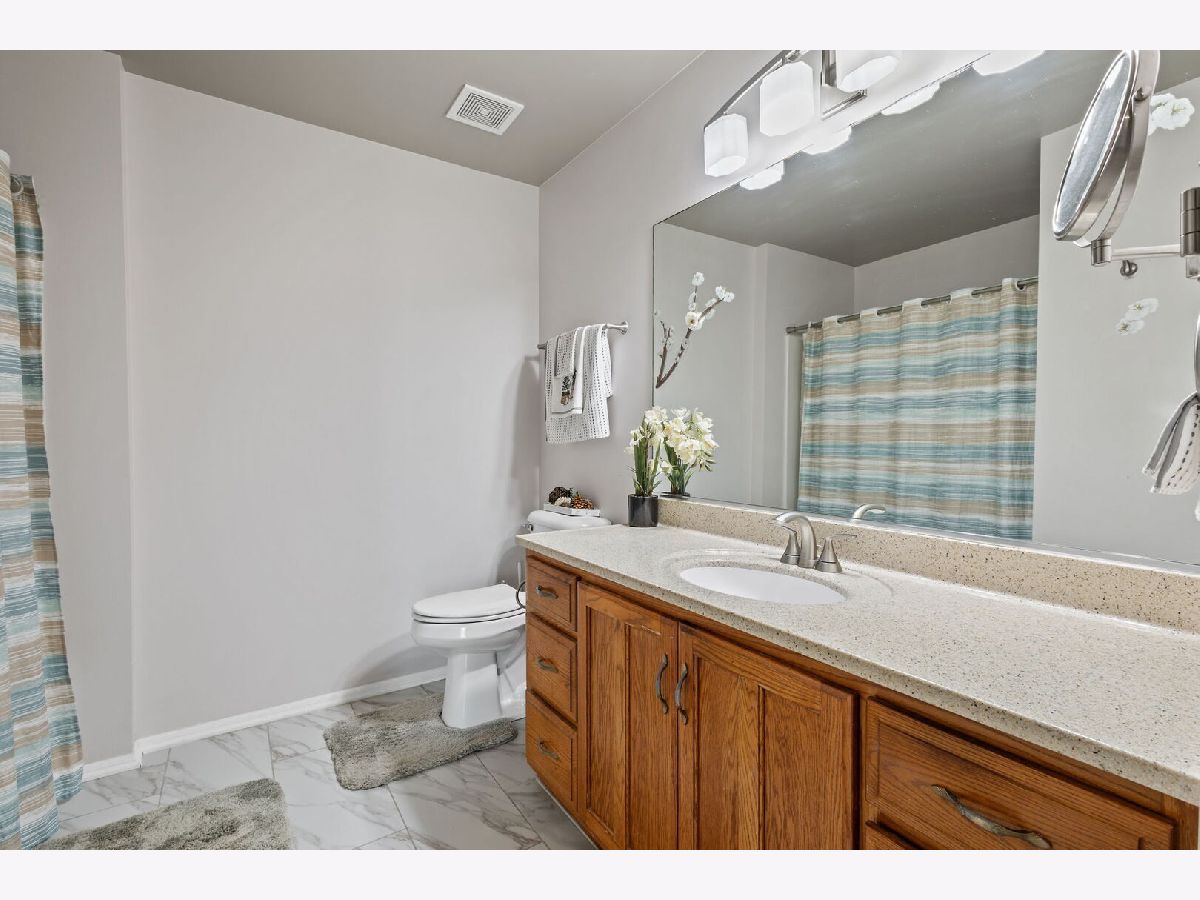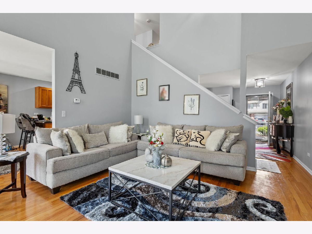 Welcome to this pet-friendly, spacious 3-bedroom, 2.5-bath townhome located in a highly desirable community featuring a subdivision park, multiple walking trails, three scenic ponds (including one with a fountain and nighttime lighting visible from the primary suite), and two serene gazebos. A large foyer opens to an impressive two-story living room with soaring 17' ceilings, double-stacked casement windows, a Heatilator-style gas fireplace, and updated recessed lighting and fixtures-filling the space with natural light and warmth. The main level offers hardwood floors throughout and an open-concept kitchen with ample cabinetry, breakfast-bar peninsula, pantry, and newer stainless steel appliances (range, refrigerator, microwave, dishwasher). A sliding door leads directly to the patio. Convenient main-floor laundry includes a washer, dryer, utility sink, and storage cabinetry. Additional features on the main level include a coat closet, garage access with added shelving, and an updated powder room with new paint, lighting, vanity top, and plumbing fixtures. Upstairs, you'll find three generously sized bedrooms, all updated with fresh paint, lighting, and carpeting. Both the shared bath and primary bath feature new paint, floor tile, countertops, faucets, plumbing fixtures, and lighting. The wide-open basement offers modern exposed rafters and abundant recessed lighting-ideal for a recreation room, home gym, or entertainment space. Other areas include a storage room, utility room, and a drywalled room with electric and roughed-in plumbing, ready for a future bathroom. Located less than 10 minutes from downtown Frankfort, restaurants, shopping, gyms, churches, and the Tinley Park-80th Ave Metra station. Major updates include: A/C (2024), Water Heater (2024), Roof (2023), Washer/Dryer (2022). All major items are NEW! Note: Bedroom window coverings and sliding-door curtains not included. Don't miss this incredible opportunity-schedule your showing today! Home is in great condition but is being sold as is