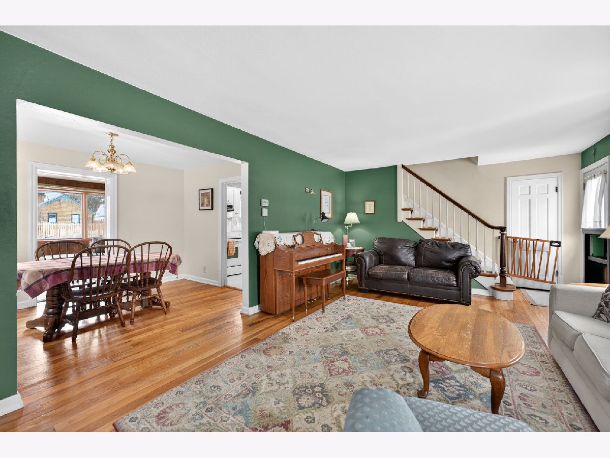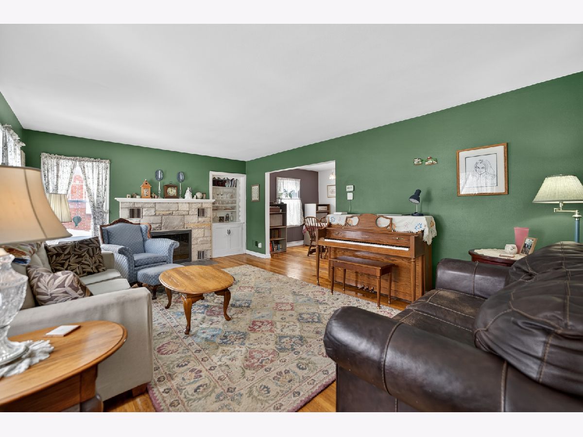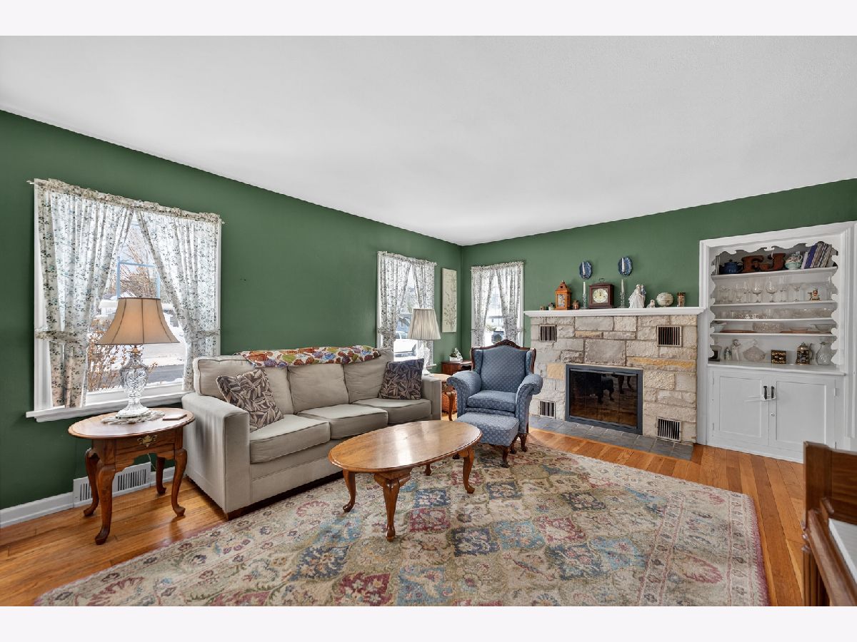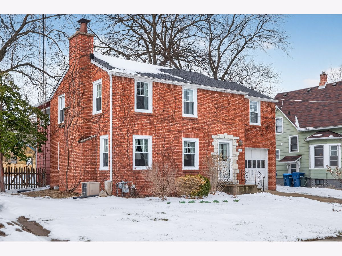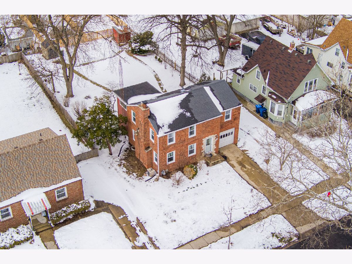 Charming 2-story colonial brick home on a quiet street is a must see. Welcome to this inviting 4 bedroom, 1.5 bath home full of character and natural light. Step inside to find beautiful hardwood floors and spacious living room centered around a cozy wood-burning fireplace with a stunning stone surround accented by original built-in shelves. The many windows throughout the home create a warm and airy atmosphere. The bright kitchen features a range with a flat glass cooktop, a built-in microwave and a dishwasher for convenience and easy clean-up. The dining area offers easy flow for everyday living and entertaining. Upstairs, the primary bedroom features two closets for ample storage, plus a bonus room perfect for a playroom, office or hobby space. Enjoy outdoor living in the large fenced backyard, featuring a paver patio, two sheds and plenty of room to relax or garden. The attached 1 car garage adds convenience, and the quiet street provides a peaceful setting with no thru-traffic. Located close to schools and parks, this home combines comfort, function and location, ready for you to make it your own.