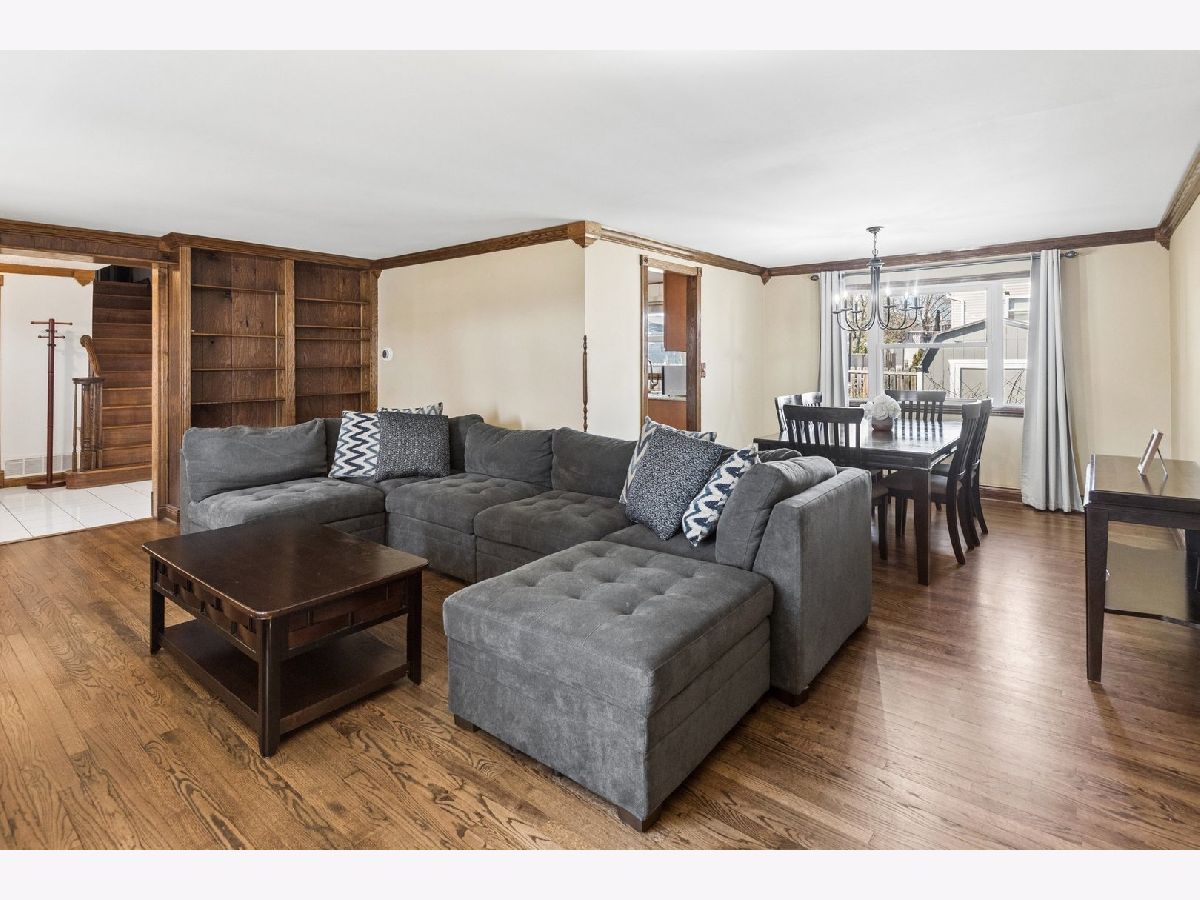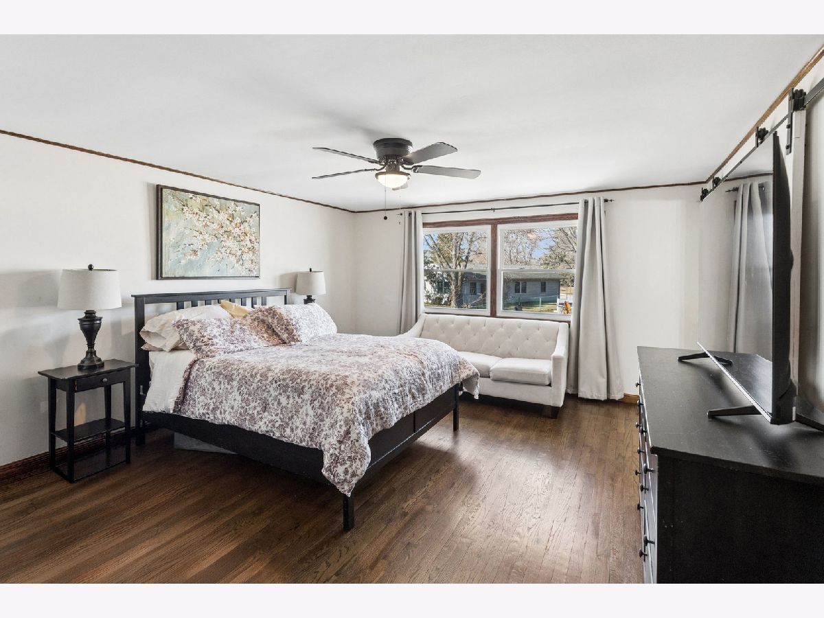 Rare opportunity to own a beautifully maintained home on a spacious corner lot with an expansive yard-properties like this don't come along often! This quality-built residence offers approximately 2,500 square feet of above-ground living space, plus an additional 700 square feet in a finished lower level with ample storage.From the moment you step inside, you're welcomed by a grand foyer that sets the tone for the home's warmth and thoughtful updates. Pride of ownership is evident throughout, with numerous upgrades including fresh interior and exterior paint (2021) and stylish traditional and contemporary lighting.The primary suite has been beautifully renovated (2021) with a new lighted ceiling fan, barn-style doors, a custom walk-in closet, and refinished hardwood floors. All bedrooms are generously sized, offering comfort and flexibility. Throughout the home, you'll find rich dark oak hardwood floors, 4-6" wood baseboards, custom crown molding, detailed trim work, and built-in shelving that add character and craftsmanship. The main level offers both living and family rooms, ideal for everyday living and entertaining. The walk-out living room features a striking mid-century modern wood-burning fireplace, beamed ceilings, and sliding doors leading to a large concrete patio. Step outside to enjoy the newly fenced backyard,