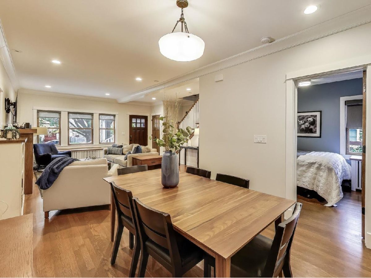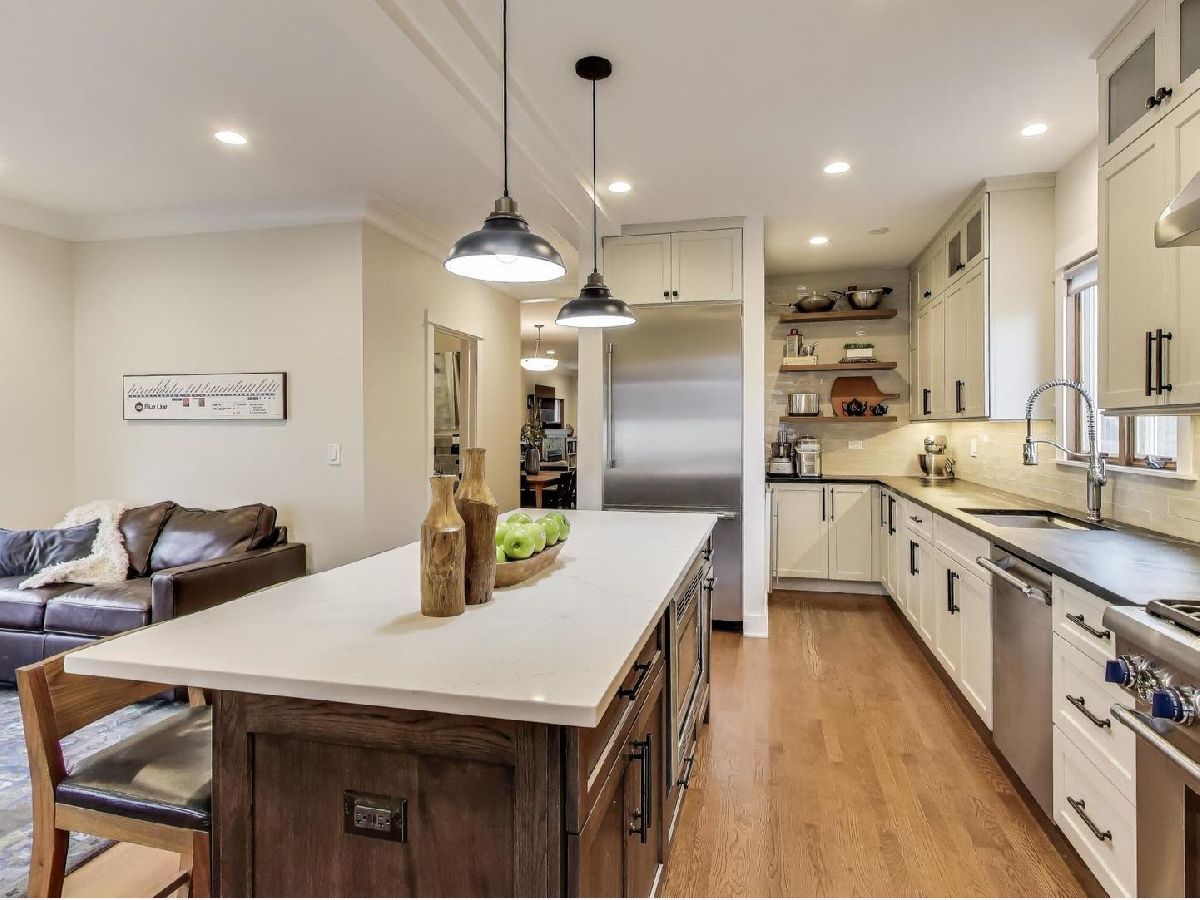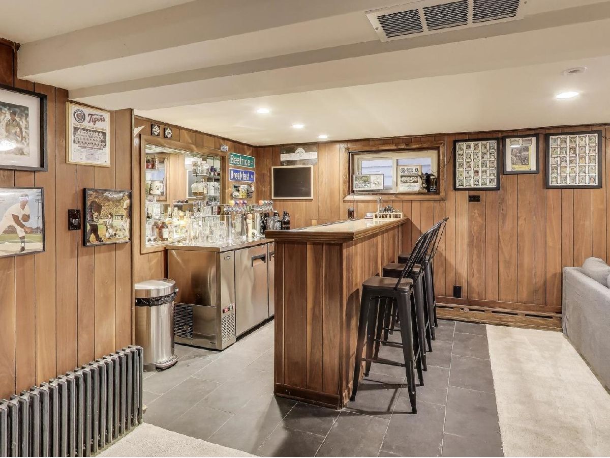 Completely renovated in 2019 with the finest finishes, this spacious home offers the ideal layout on a desirable street in the Ascension neighborhood. The maintenance-free exterior begins with a front porch constructed with TimberTech offering the look of real wood with greater sustainability. The inviting living room includes a custom tile surround fireplace fueled by natural gas, enclosed with built-in bookcases leading to the attached dining room. The kitchen is a showstopper! All will gather around the large island with quartz countertop. Oversized, gray cabinets outline the space and are a striking contrast to the black, soapstone countertop. Thermador appliances, floating shelves, and a coffee nook are a few more touches that complement this incredible space. Directly off the kitchen is an attached family room and mud room with cabinets and seating area with hooks. There is also a first-floor bedroom and full bath with custom tile and bathtub. The second floor features a large primary suite with a spa-like bath and dual, walk-in closets. An adjacent laundry room with front loaders has custom, maple shelves for folding and an enclosed ironing board. There are two additional bedrooms and a large, hall bath with beautiful tile, heated floors, and large bathtub. A built-in, floor to ceiling bookcase is featured in the hallway next to the cozy sunroom drenched with light. White trim and baseboards along with hardwood floors and oak windows (w/exterior vinyl cladding) bring a clean, modern finish to first two levels of this home. A fully finished mid-century basement is an entertainer's dream. Rec room features a bar with a sink, and shelving for beverages. The bar currently has an 8-tap kegerator (negotiable). The back of the basement currently serves as an in-law kitchen and brewery. The fourth bathroom is in the basement and is just as wonderful as the rest with a traditional Chicago style design with "daisy" pattern tile and a full, walk-in shower. Low-maintenance living continues in the backyard with a paver patio and oversized garage clad in Hardie Board siding. Need more outdoor space? This incredibly walkable location is close to Fox & Longfellow Parks, Rehm Pool & Park, and the Oak Park Conservatory. Steps from Oak Park Avenue shops and restaurants (including the incredible Sen Sushi), Carnival Grocery, the Blue Line, and access to the Eisenhower Expressway. This is an incredible Oak Park block where neighbors socialize in their front yards and is known for weekly "Highballs and Highchairs" gatherings once the temperature allows. A commuter's dream. All boxes checked.