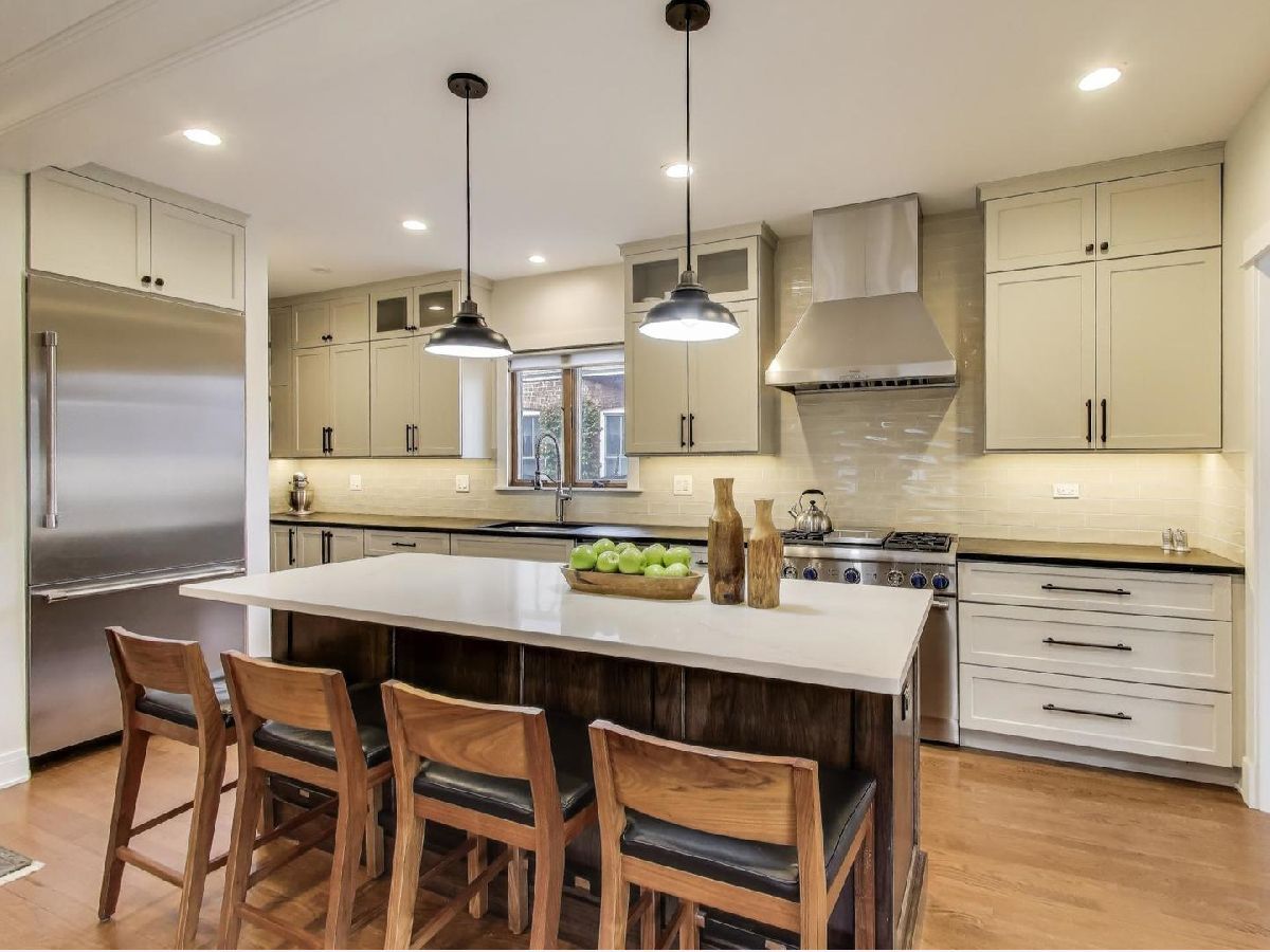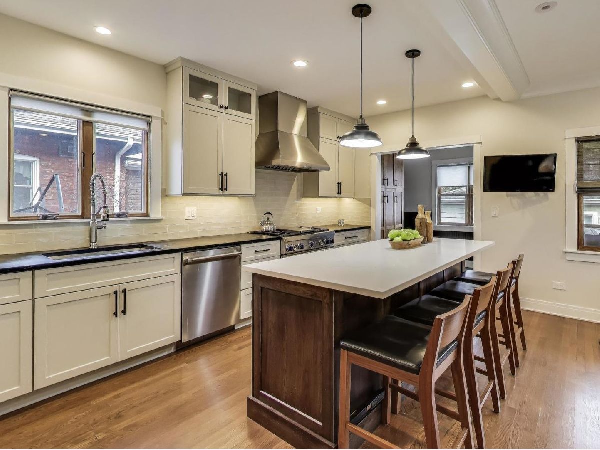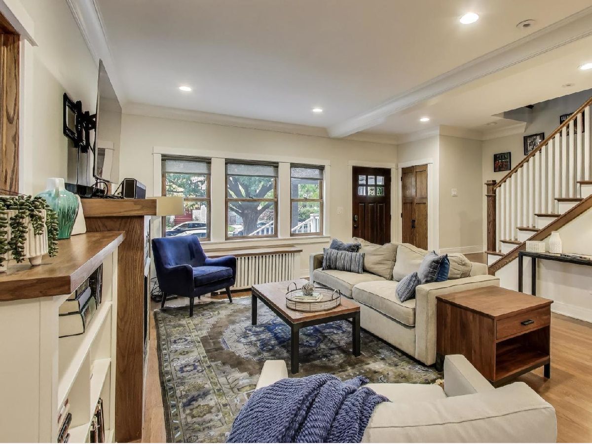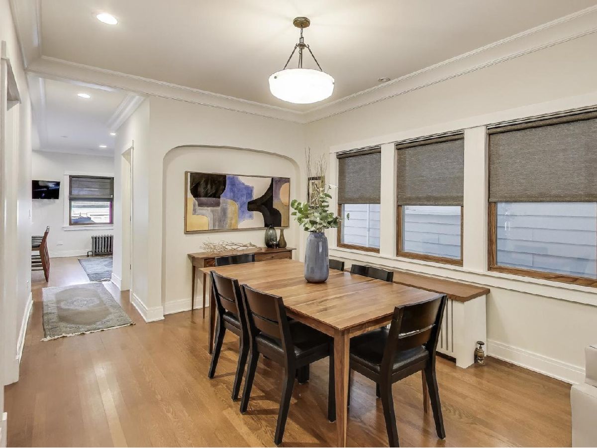 Completely renovated in 2019 with the finest finishes, this spacious home offers the ideal layout on a desirable street in the Ascension neighborhood. The maintenance-free exterior begins with a front porch constructed with TimberTech offering the look of real wood with greater sustainability. The inviting living room includes a custom tile surround fireplace fueled by natural gas, enclosed with built-in bookcases leading to the attached dining room. The kitchen is a showstopper! All will gather around the large island with quartz countertop. Oversized, gray cabinets outline the space and are a striking contrast to the black, soapstone countertop. Thermador appliances, floating shelves, and a coffee nook are a few more touches that complement this incredible space. Directly off the kitchen is an attached family room and mud room with cabinets and seating area with hooks. There is also a first-floor bedroom and full bath with custom tile and bathtub. The second floor features a large primary suite with a spa-like bath and dual, walk-in closets. An adjacent laundry room with front loaders has custom, maple shelves for folding and an enclosed ironing board. There are two additional bedrooms and a large, hall bath with beautiful tile, heated floors, and large bathtub. A built-in, floor to ceiling bookcase is featured in the hallway next to the cozy sunroom drenched with light. White trim and baseboards along with hardwood floors and oak windows (w/exterior vinyl cladding) bring a clean, modern finish to first two levels of this home. A fully finished mid-century basement is an entertainer's dream. Rec room features a bar with a sink, and shelving for beverages. The bar currently has an 8-tap kegerator (negotiable). The back of the basement currently serves as an in-law kitchen and brewery. The fourth bathroom is in the basement and is just as wonderful as the rest with a traditional Chicago style design with "daisy" pattern tile and a full, walk-in shower. Low-maintenance living continues in the backyard with a paver patio and oversized garage clad in Hardie Board siding. Need more outdoor space? This incredibly walkable location is close to Fox & Longfellow Parks, Rehm Pool & Park, and the Oak Park Conservatory. Steps from Oak Park Avenue shops and restaurants (including the incredible Sen Sushi), Carnival Grocery, the Blue Line, and access to the Eisenhower Expressway. This is an incredible Oak Park block where neighbors socialize in their front yards and is known for weekly "Highballs and Highchairs" gatherings once the temperature allows. A commuter's dream. All boxes checked.