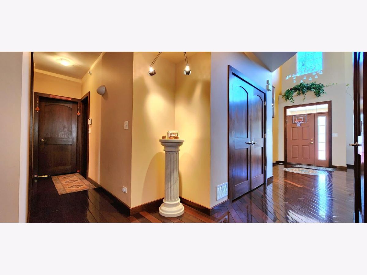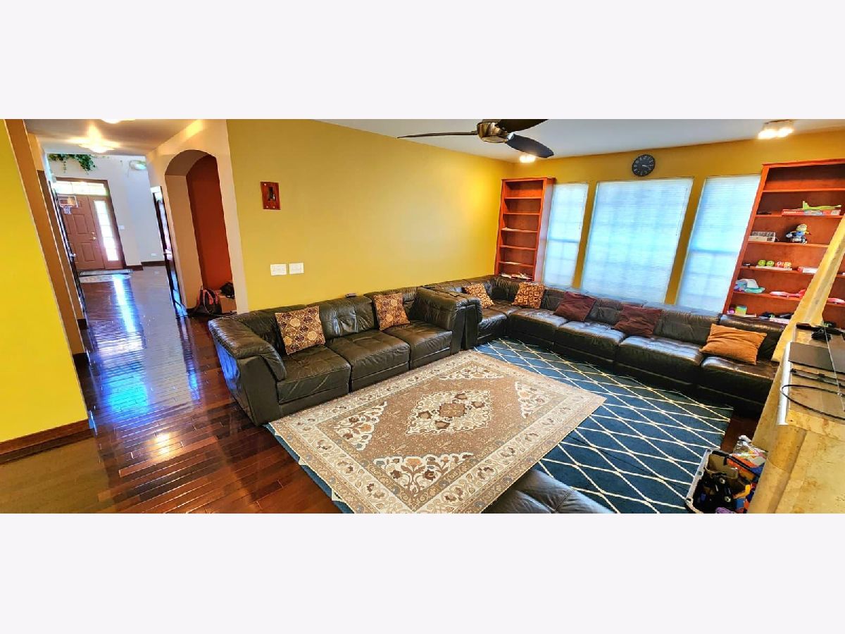Welcome to the largest home in the subdivision-a bright, spacious 6BR/3.5BA residence designed for modern living. Step into a dramatic 2-story living room filled with natural light and accented by rich Brazilian walnut hardwood floors. The gourmet kitchen is a true standout, featuring beautiful quartz countertops, a large quartz island, 42" maple cabinets, a generous eating area, deep pantry, and direct access to a new cedar deck with soft low-voltage lighting cooking, entertaining, and everyday family life. A flexible first-floor bedroom/office, convenient main-floor laundry, and stylish half bath add comfort and versatility. Upstairs, the primary suite with a separate dressing room (optional 5th BR), large walk-in closet, and private spa bath with soaking tub and dual sinks. Two additional bedrooms and another full bath complete the level. The full finished English basement expands your lifestyle with bamboo steps, an open layout media, gaming, hobbies, or workouts, plus a 3rd full bath. A built-in 7-channel surround-sound setup makes movie nights unforgettable. Major upgrades include a whole-house generator, fast EV charger, 300-amp electrical service, CATV wiring, whole-house battery backup, zoned HVAC, and a 2014 roof. Located near Metra for easy commuting. This home is space, comfort, luxury finishes, and modern amenities-all in one exceptional package.
