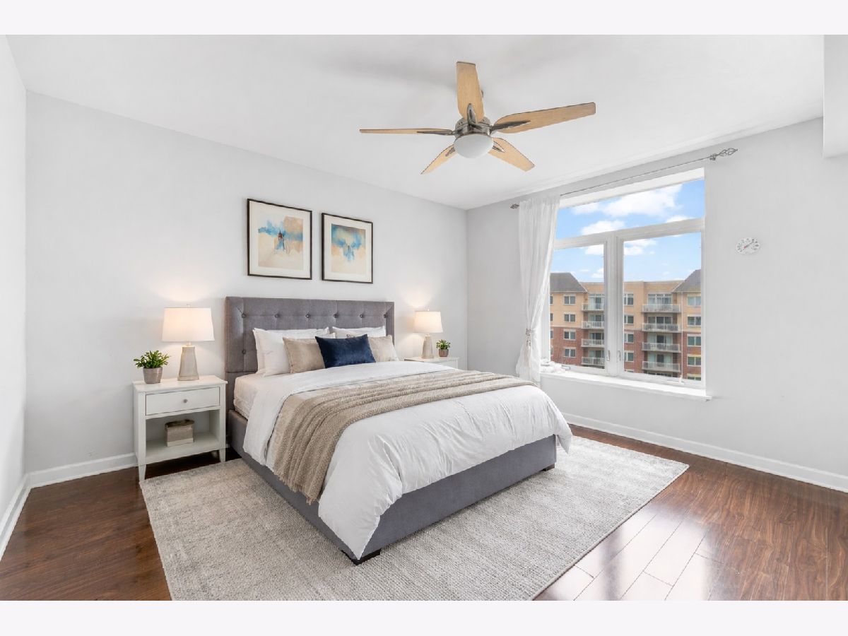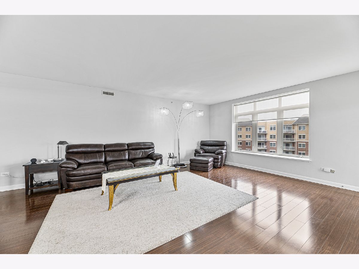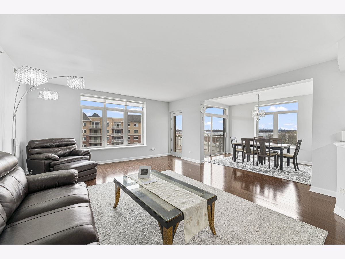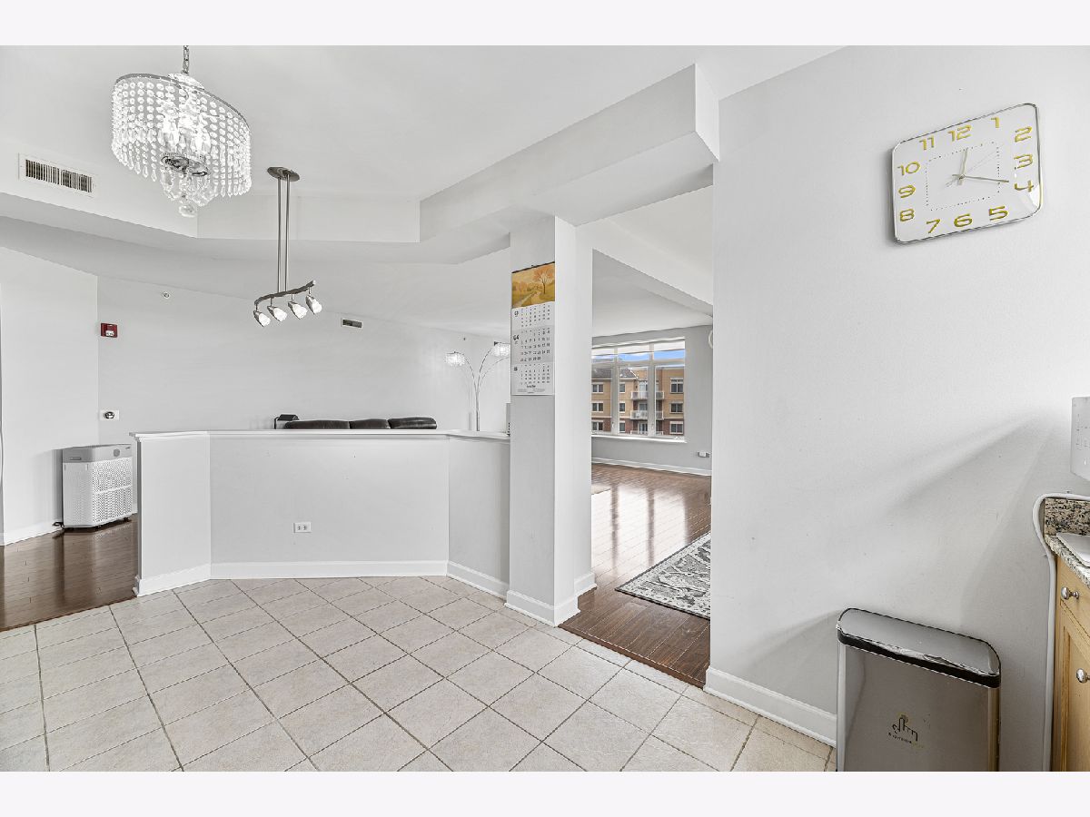 Welcome to this bright and spacious 2-bedroom, 2-bathroom condo in the highly sought-after Woodlands of Morton Grove. This rarely available end-unit features laminate wood floors throughout and an abundance of natural light. The open-concept layout seamlessly connects the living, dining, and kitchen areas-perfect for both everyday living and entertaining. The kitchen includes granite countertops, ample cabinet space, and stainless steel appliances. Heated flooring throughout as well as separate HVAC system. Step out onto your private oversized balcony and enjoy peaceful courtyard views with glimpses of the Chicago skyline. The expansive primary suite offers a large walk-in closet and a private bath with a double vanity, soaking tub, and separate shower. A generously sized second bedroom and full bath provide flexibility for guests, or office space. Additional highlights include a full-size in-unit laundry room, plenty of storage, and a well-designed layout. This well-maintained elevator building features heated indoor garage parking, a car wash area, fitness room, and extra storage. Ideally located just steps from the Metra, forest preserves, bike trails, library, and shopping, with easy access to major expressways. A perfect combination of space, location, and convenience-don't miss this one!