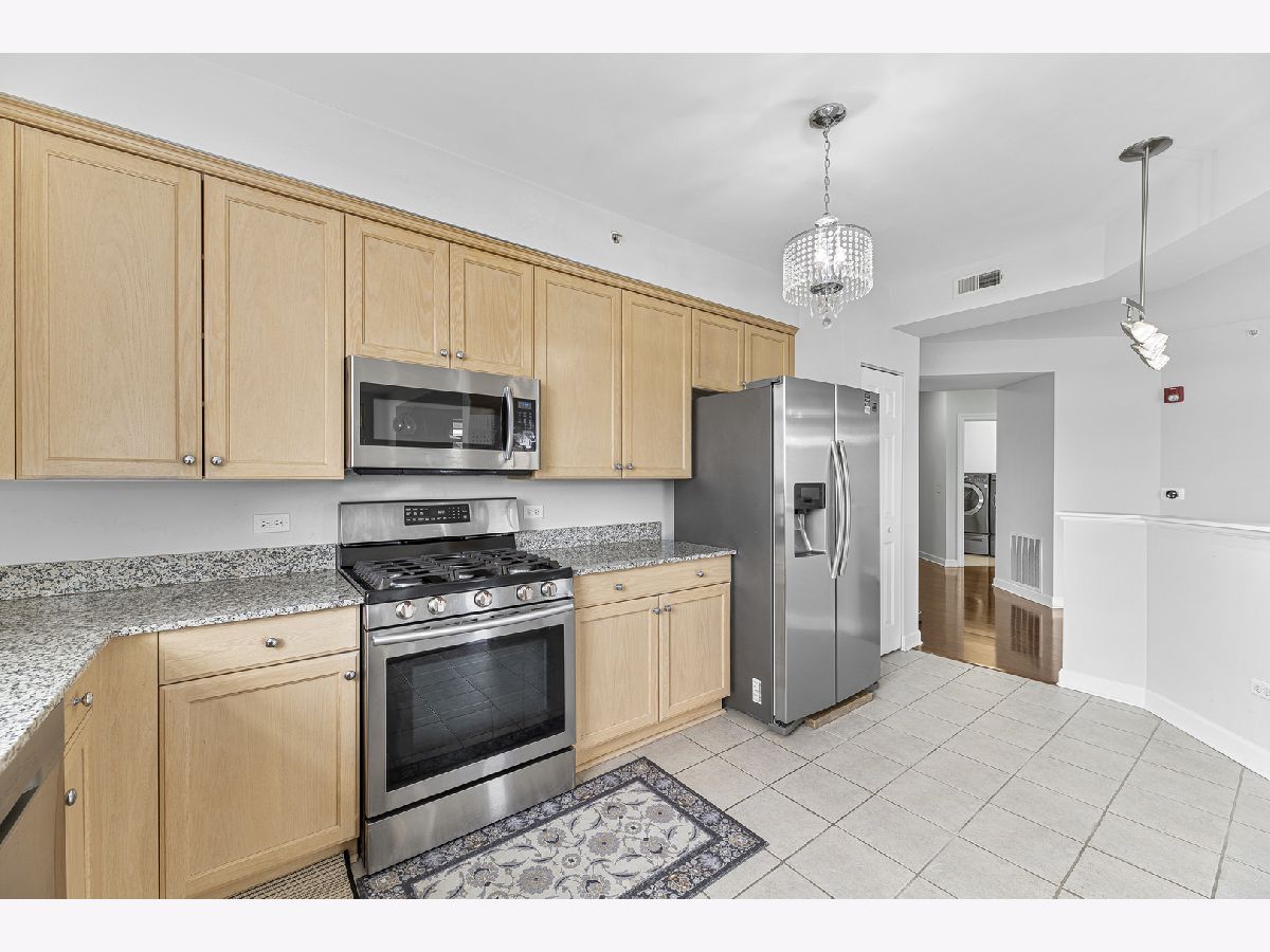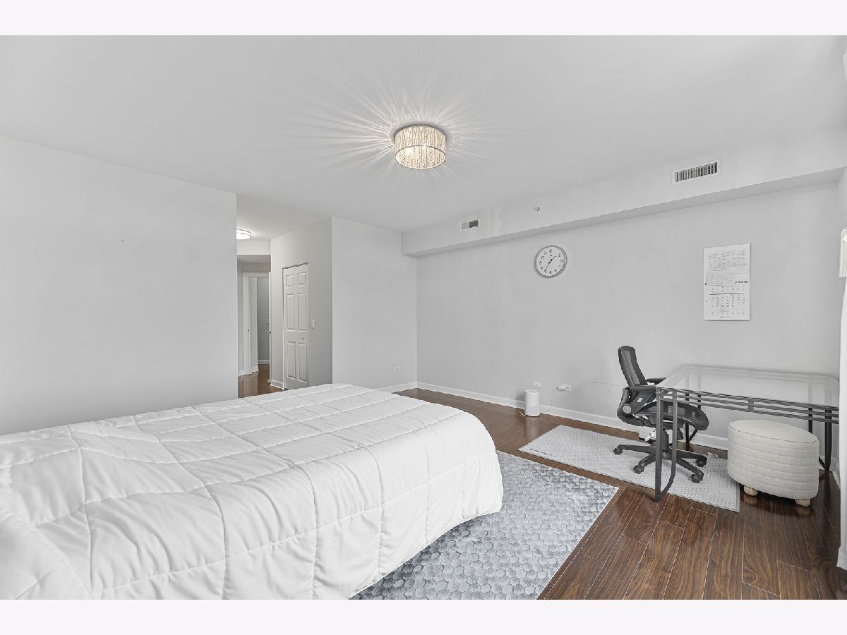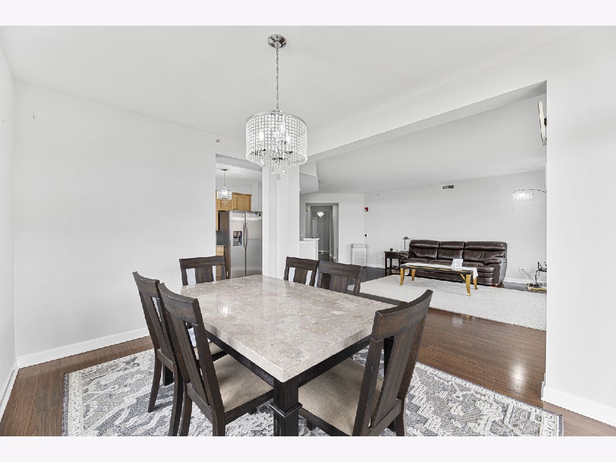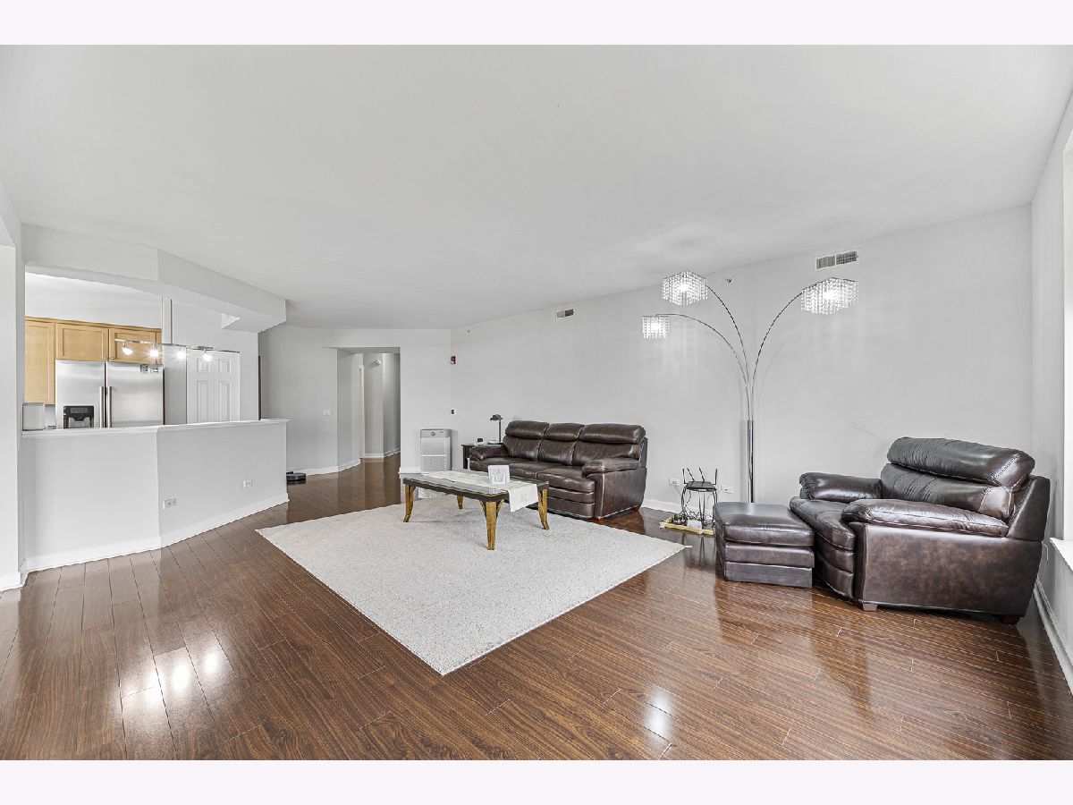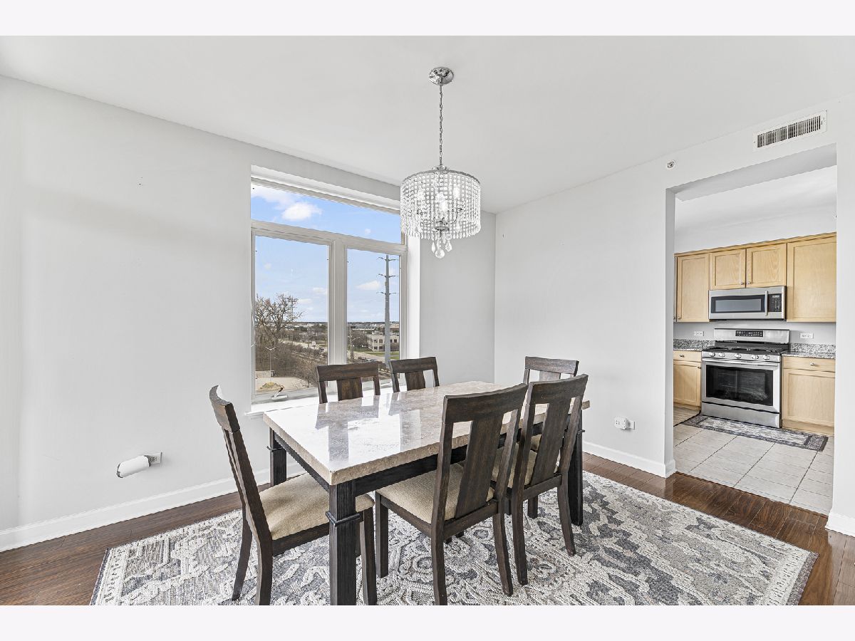 Welcome to this bright and spacious 2-bedroom, 2-bathroom condo in the highly sought-after Woodlands of Morton Grove. This rarely available end-unit features laminate wood floors throughout and an abundance of natural light. The open-concept layout seamlessly connects the living, dining, and kitchen areas-perfect for both everyday living and entertaining. The kitchen includes granite countertops, ample cabinet space, and stainless steel appliances. Heated flooring throughout as well as separate HVAC system. Step out onto your private oversized balcony and enjoy peaceful courtyard views with glimpses of the Chicago skyline. The expansive primary suite offers a large walk-in closet and a private bath with a double vanity, soaking tub, and separate shower. A generously sized second bedroom and full bath provide flexibility for guests, or office space. Additional highlights include a full-size in-unit laundry room, plenty of storage, and a well-designed layout. This well-maintained elevator building features heated indoor garage parking, a car wash area, fitness room, and extra storage. Ideally located just steps from the Metra, forest preserves, bike trails, library, and shopping, with easy access to major expressways. A perfect combination of space, location, and convenience-don't miss this one!