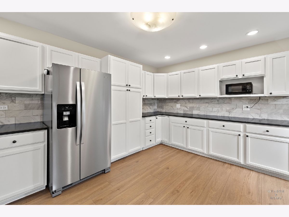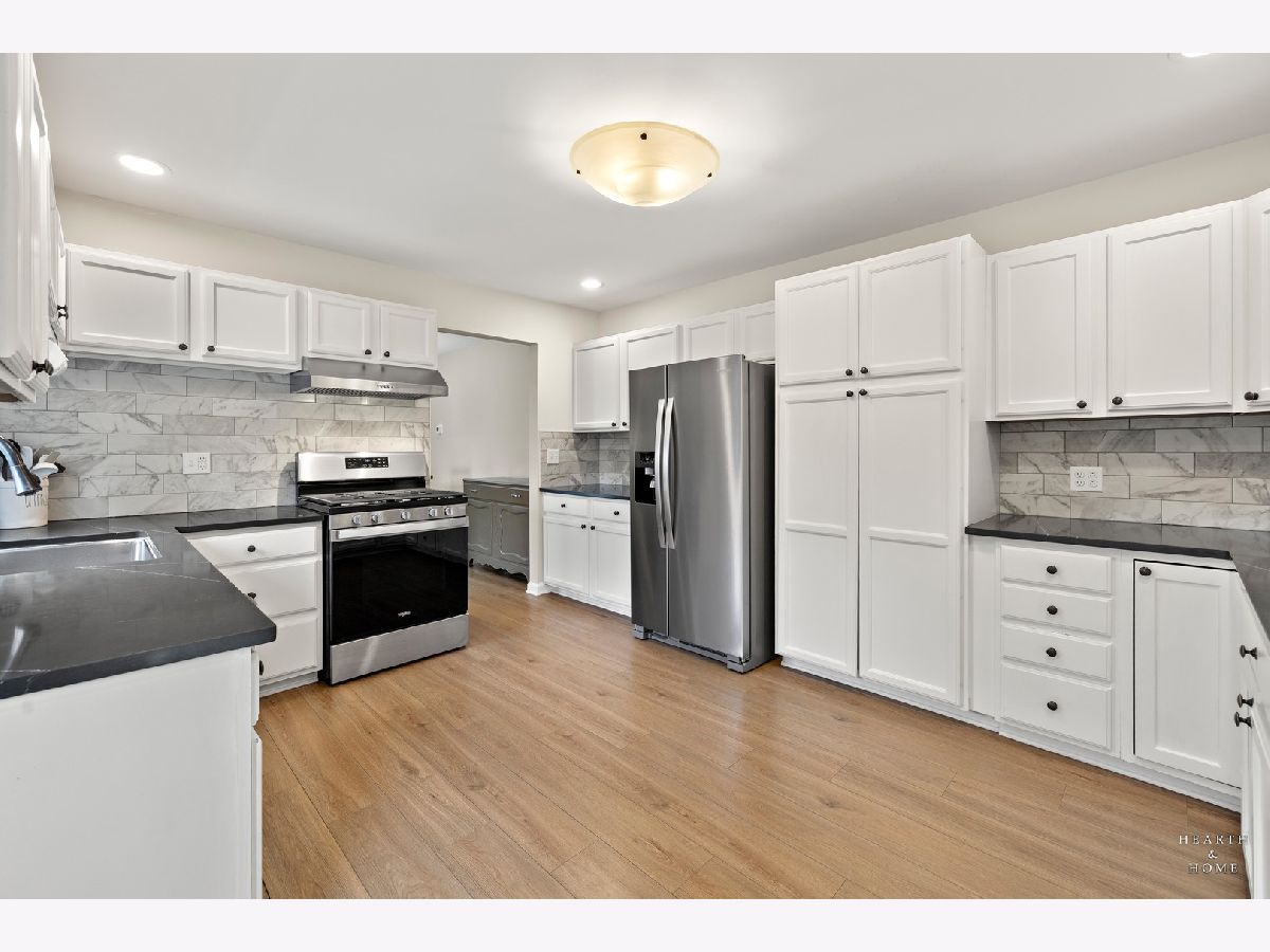 Tucked away on a quiet cul-de-sac, this updated split-level home offers space, functionality, and comfort across three finished levels. The home features four bedrooms, three full bathrooms, and multiple living areas including a bright living room, formal dining space, kitchen, and a lower-level family room, along with a dedicated laundry area and attached two-car garage. The main level showcases wood laminate flooring, while the bedrooms are finished with soft carpeting for added comfort. The kitchen was recently updated with quartz countertops, a tiled backsplash, stainless steel appliances, and ample cabinet space. The primary suite includes generous closet space and a private bathroom with a jacuzzi tub with shower. Step outside to a fully fenced, south-facing backyard situated on over a quarter acre, offering plenty of room to enjoy and customize your outdoor space.