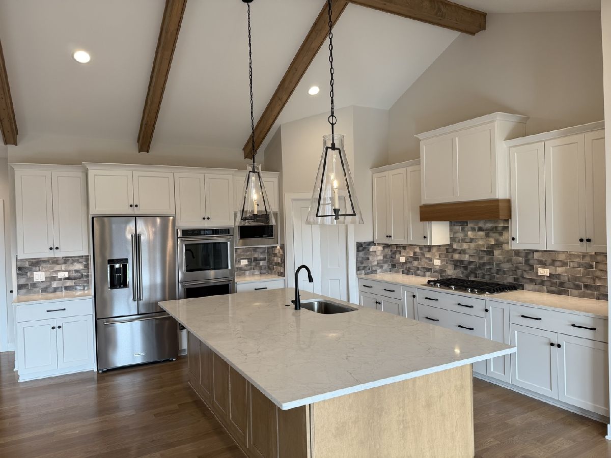 Don't miss this new construction opportunity, Keim Corp's MOST POPULAR floor plan, the AUBREY RANCH! This EXCEPTIONAL home features a SOARING CATHEDRAL CEILING in the Kitchen and Great room with BEAUTIFUL stained WOOD BEAMS! Kitchen includes WHITE PERIMETER CABINETRY and CUSTOM CABINET HOOD, HUGE STAINED ISLAND, and walk-in pantry. Great room has a stone FIREPLACE face with SHIPLAP DETAIL above the mantel ceiling! Separate eating area with extra windows and sliding glass door that opens to a COVERED OUTDOOR LIVING AREA! Owner's suite has HUGE custom shower and walk-in closet with direct access to separate Laundry room! Mudroom features a large BUILT-IN COAT BENCH and walk-in closet! Many LUXURY features including REAL HARDWOOD FLOORING in main living area, custom cabinetry, professional Kitchen appliances, quartz countertops, lush carpet, decorator light fixtures, HIGH-END FINISHES and MORE! MODERN exterior with a mix of brick, siding, a covered front porch, 3rd CAR GARAGE, deep pour lookout basement with rough in for future bath and a fully sodded yard!