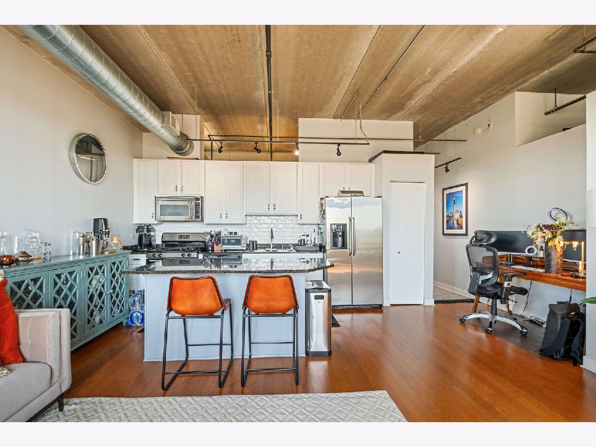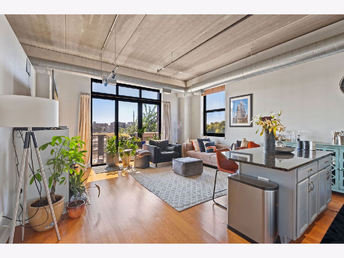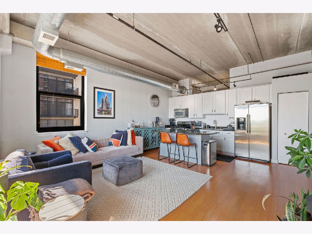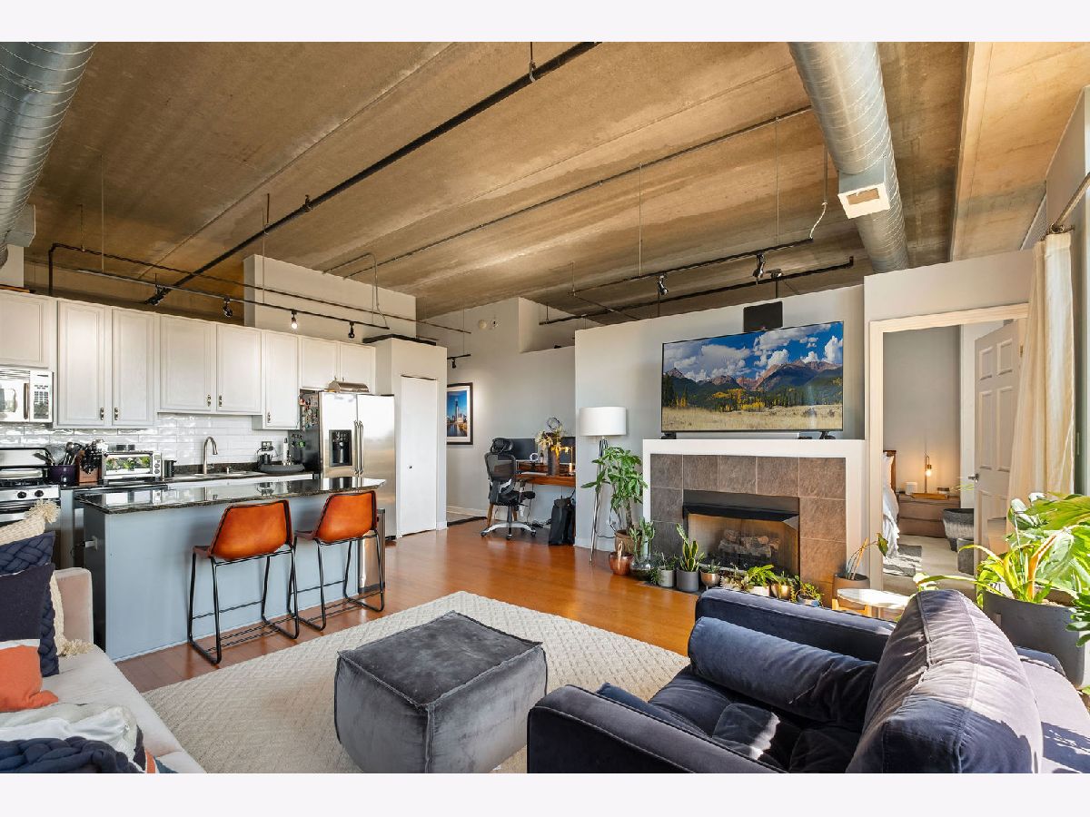 Bright and inviting 2-bedroom corner condo in desirable University Village! This sun-drenched home boasts floor-to-ceiling windows, hardwood floors, a gas fireplace, and an open kitchen featuring granite countertops and stainless steel appliances. The spacious living area flows seamlessly into a private balcony, perfect for entertaining. The split-bedroom layout includes a primary suite with a walk-in closet. Garage parking & storage included in price. Full-amenity building with door staff, fitness center, garden terrace, and on-site management. Ideal location near UIC, shopping, dining, nightlife, the "L," and expressways.