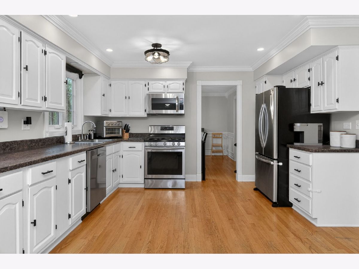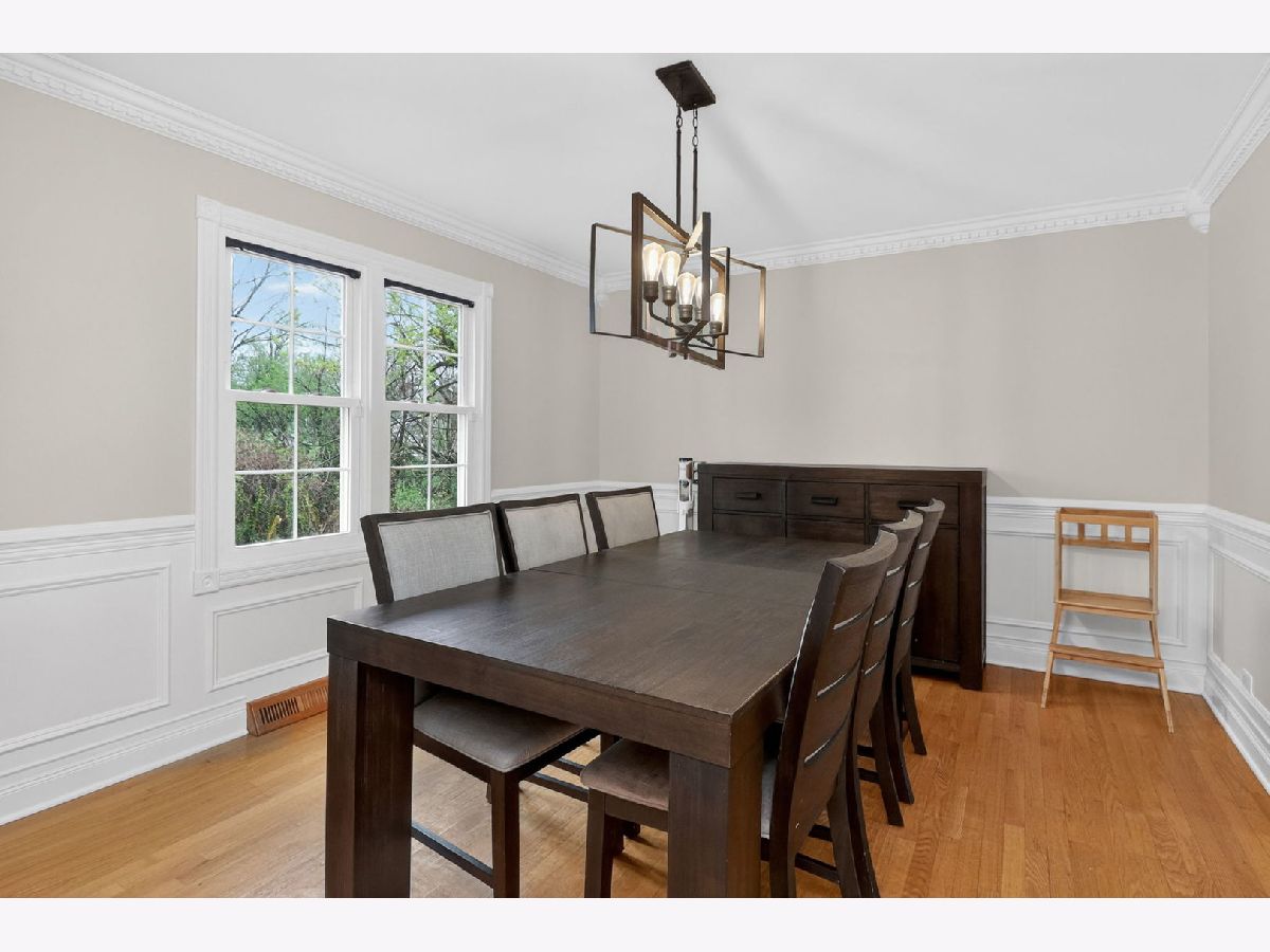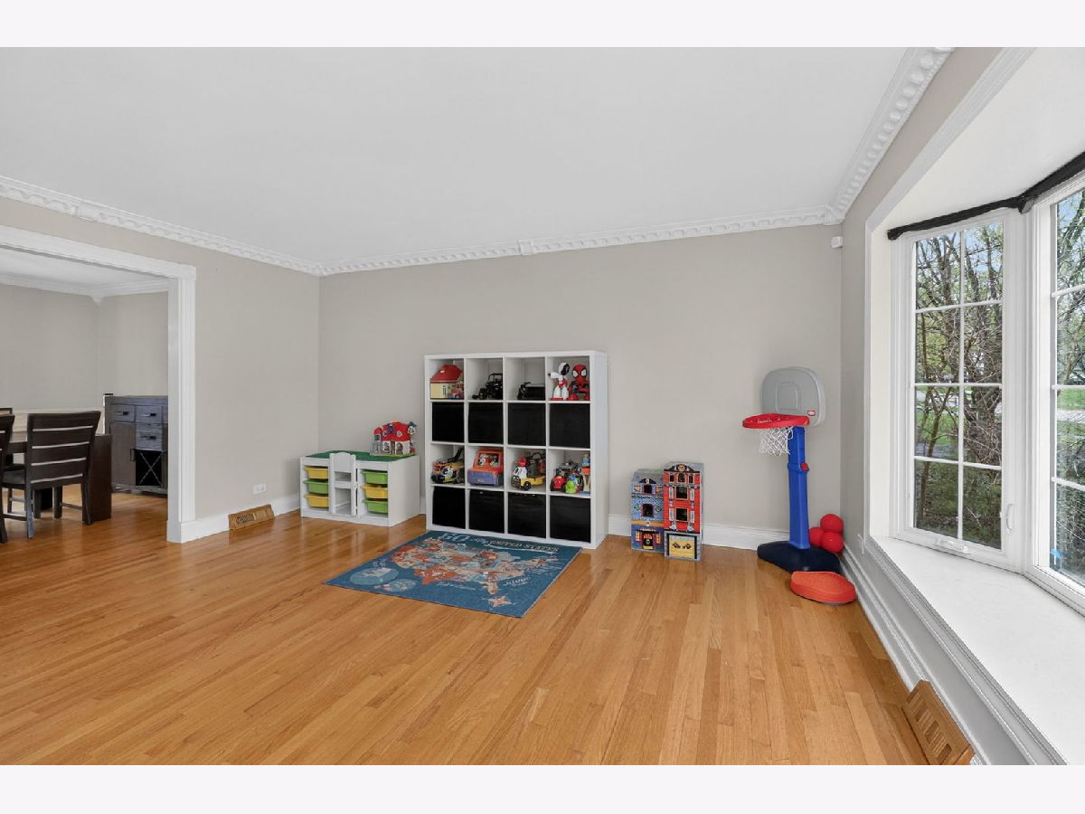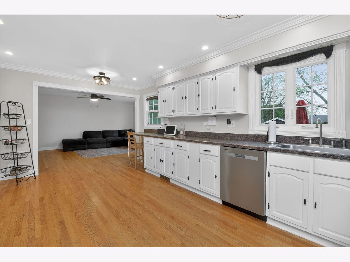 Don't miss this wonderful 3-bedroom, 2-bath home within walking distance to Bartlett Library, park, and shopping. Recently updated throughout with fresh paint, the main level features refinished cabinets, stainless steel appliances, a new dishwasher, and recessed lighting in the kitchen. The dining room showcases crown molding, wainscoting, and chair rail, while the living room has elegant crown molding and hardwood floors. The master bedroom includes a private bath with double pedestal sinks, new mirror and lighting, and subway tile surround in the tub area. The finished basement offers a full bathroom and flexible space for an office or bedroom, plus a new washer and dryer. Outside, enjoy a large backyard with a big deck, storage shed, and play set. Recent upgrades include new garage door and opener, new sliding glass door, five replaced wood windows, new attic insulation, whole-house water filtration, and radon mitigation system. Additional improvements feature new cement patio, buried downspouts, and professional painting in multiple areas.