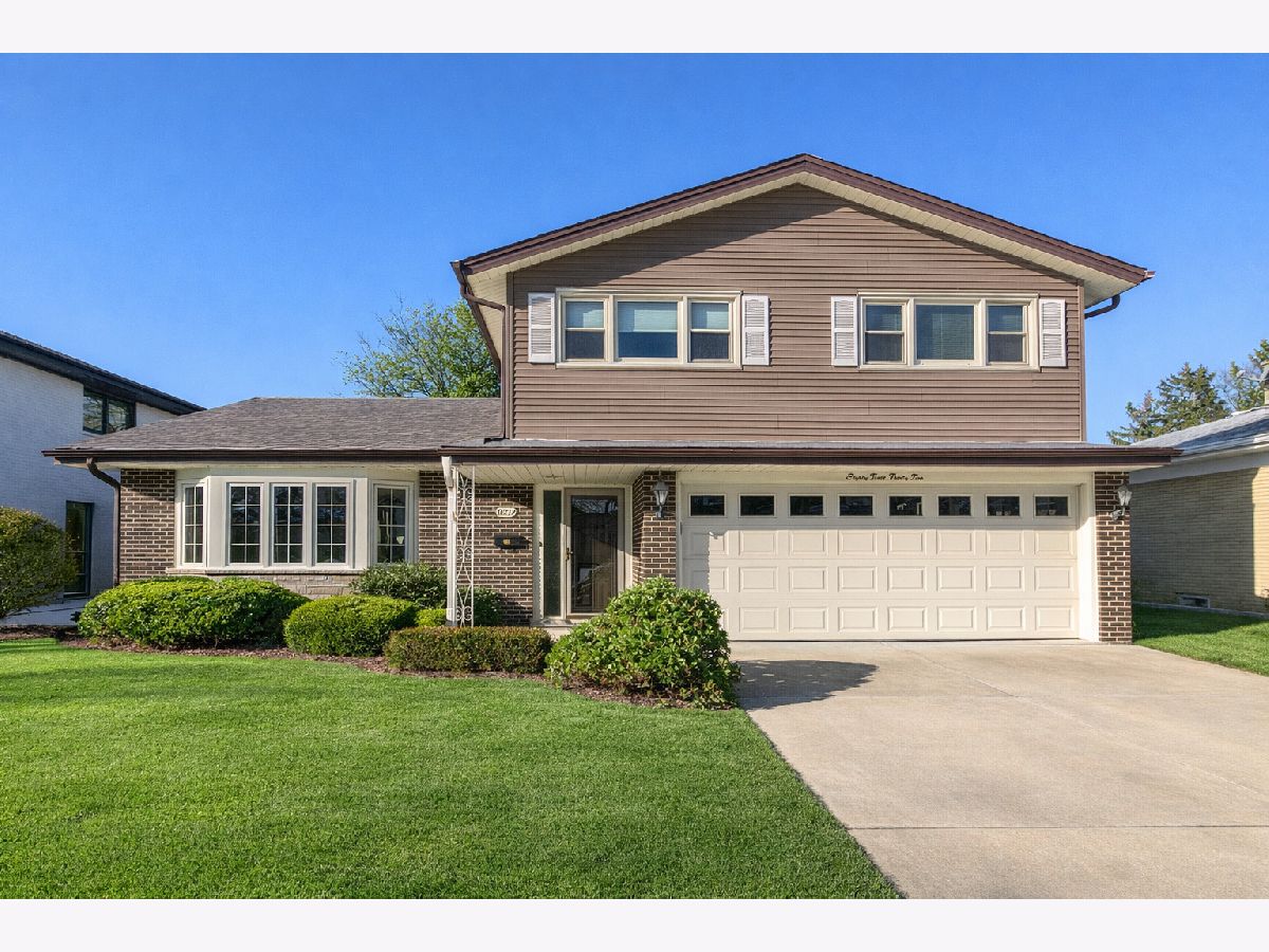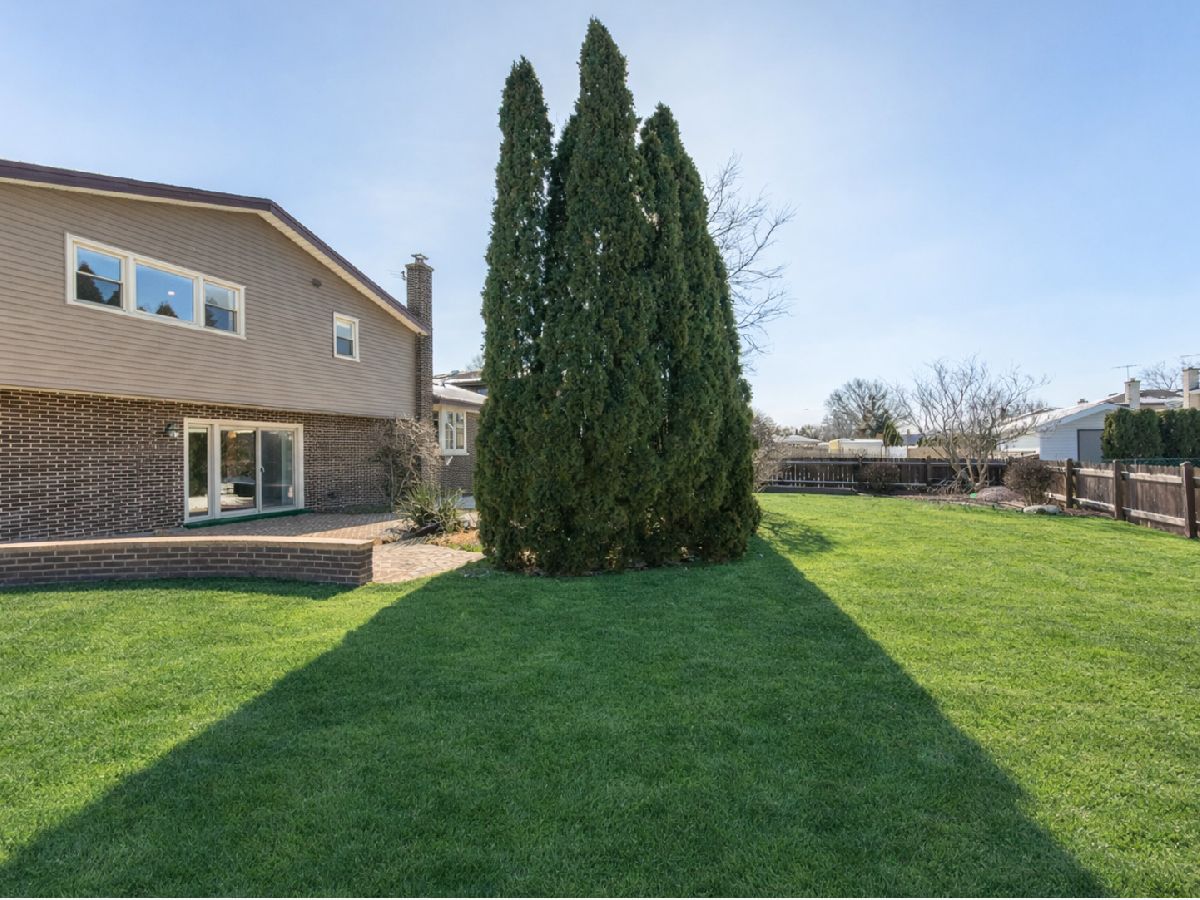 Set on a quiet, curved block of Knight Avenue, this jumbo tri-level with sub-basement is located in one of Niles' most desirable neighborhood enclaves, featuring larger colonial and tri-level homes and the highly sought-after Park Ridge Maine South School District. The home is also just two blocks from the recently renovated Woodland Park, offering easy access to green space, playgrounds, and recreation. This expansive home offers 4 spacious bedrooms, a large living room, and an elevated dining room with vaulted ceilings, creating an open, light-filled atmosphere ideal for entertaining. The main-level family room features a wood-burning fireplace and overlooks a beautifully designed private backyard. The interior has been newly and professionally redecorated throughout, and hardwood floors were expertly sanded and refinished, giving the home a fresh, move-in-ready feel while preserving its warmth and character. Outdoor living is exceptional, with a fully fenced yard that has been professionally designed and meticulously landscaped for both privacy and enjoyment. The space features a brick paver patio with side knee walls, newer concrete driveway, and mature shrubbery thoughtfully placed to provide natural screening from neighboring homes. Additional highlights include newer quality vinyl siding, a highly sought-after 2-car attached garage with 18' overhead door and a first-floor laundry/coat room with convenient side entrance-a layout that offers excellent flow and everyday practicality. A major value-add is the extensive all-new electrical system, including new service from the ComEd pole, a new 200-amp electrical panel, all new outlets and switches, and new recessed (canned) lighting installed throughout the home, offering modern functionality and long-term peace of mind. This is a rare opportunity to own a substantial tri-level home on one of Niles' most favored blocks, combining space, privacy, extensive updates, park proximity, and an exceptional school district location. Updates include: professionally redecorated throughout, hardwood floors expertly sanded and refinished, all-new electrical system with new service from ComEd pole, new 200-amp electrical panel, all new outlets, switches and recessed lighting throughout, all copper water lines throughout, new double oven (2024), brick paver patio redone (2020), chimney repairs (2019), new A/C (2018), new furnace (2017), new sump pump (2017, recently serviced), hot water tank (2014), new gutters (2011), new garage door (2010), new roof (2010), and newer concrete driveway.