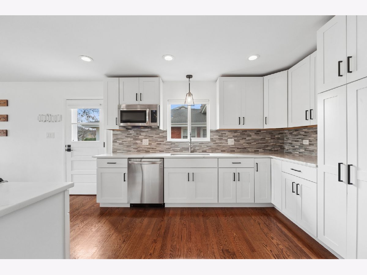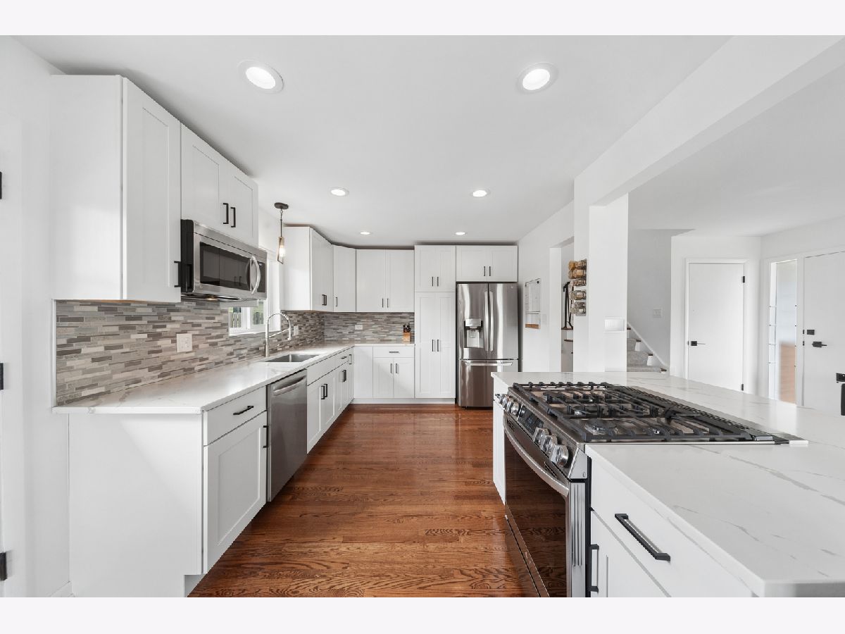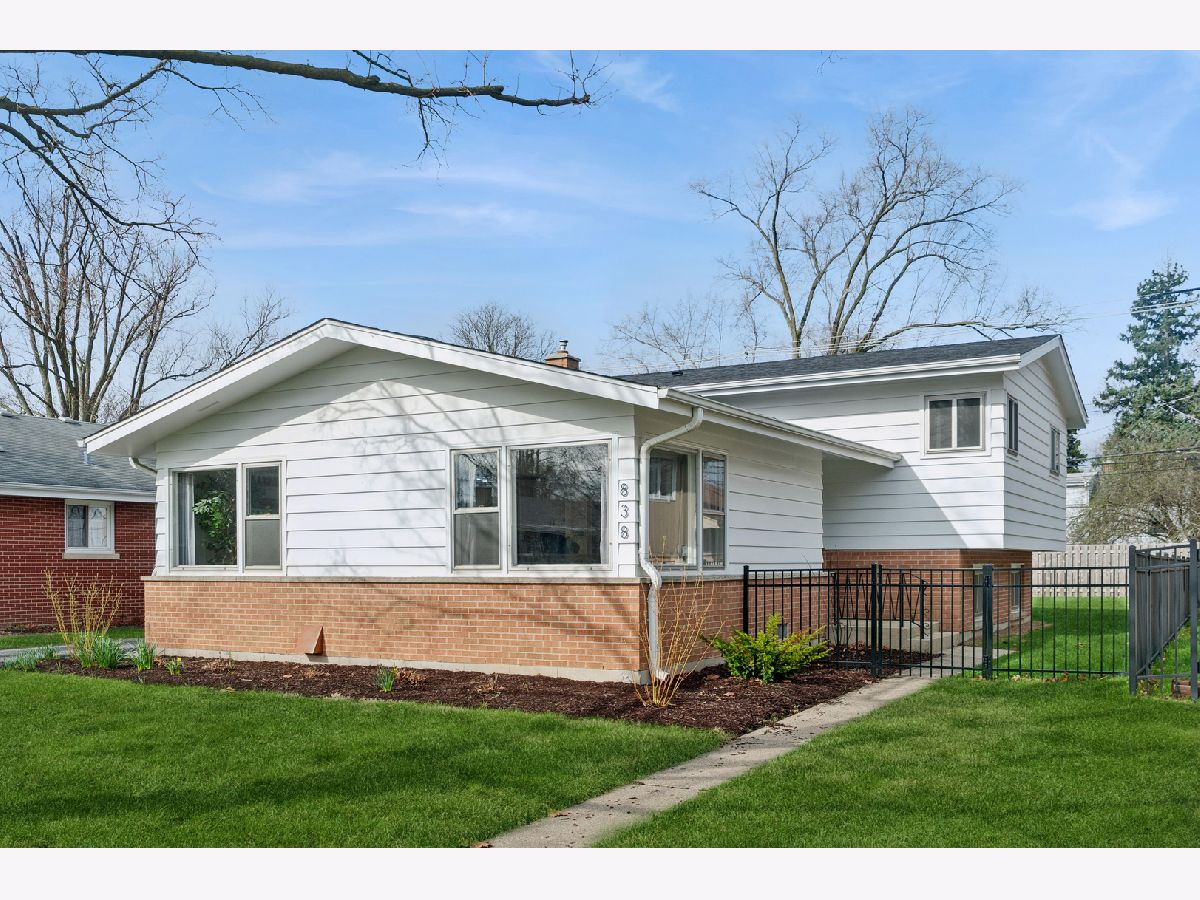 838 S Saylor Ave is an updated, charming, and move-in-ready split level in a great location of Elmhurst! This home features a spacious and inviting modernized open-concept floorplan that is perfect for both everyday living and entertaining. Step inside to discover a bright and airy updated kitchen, living room, and dining room, where large windows fill the space with sunshine and create a warm and welcoming atmosphere. Gleaming hardwood floors add beauty and character throughout much of the home, while the open feel of the main living areas provides plenty of room to gather with family and friends. The sun-filled fully renovated kitchen featuring a large center island offers abundant cabinet space, ample room for meal preparation, and a charming window above the sink that brings in even more natural light. Upstairs, you will find three comfortably sized bedrooms and an updated full bath with modern fixtures. Your primary bedroom has its own private half bath for added convenience. The lower level offers even more living space with a large family room that is perfect for relaxing, movie nights, entertaining, a playroom, or a home office. An additional half bath on the lower level adds functionality and convenience. Outside, the property continues to impress with a detached 2-car garage and a fenced in yard and outdoor space ready to enjoy. Welcome home!