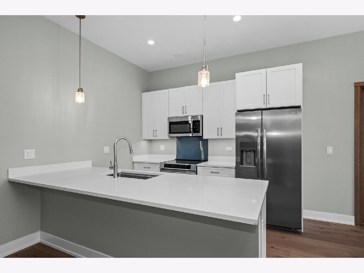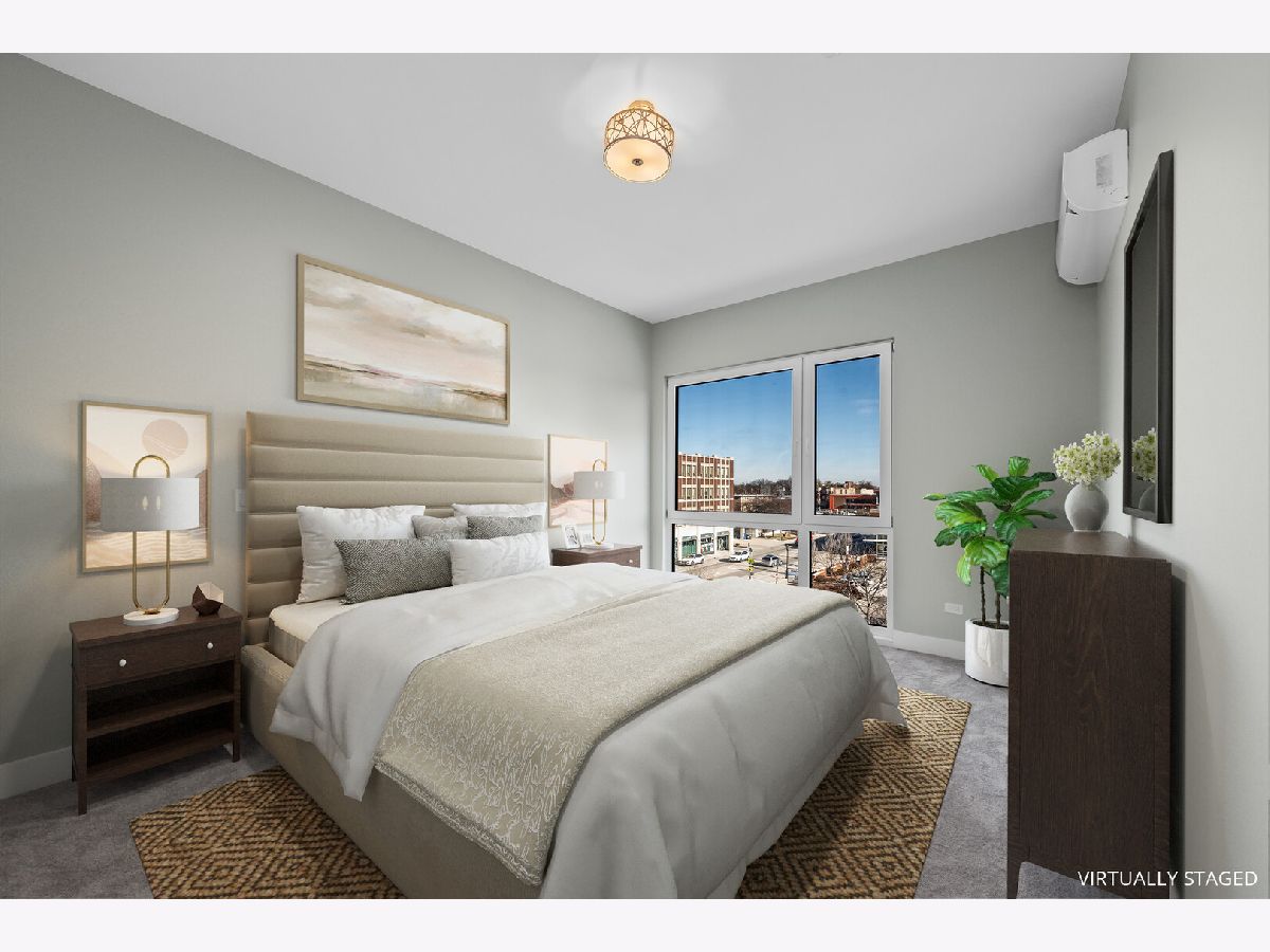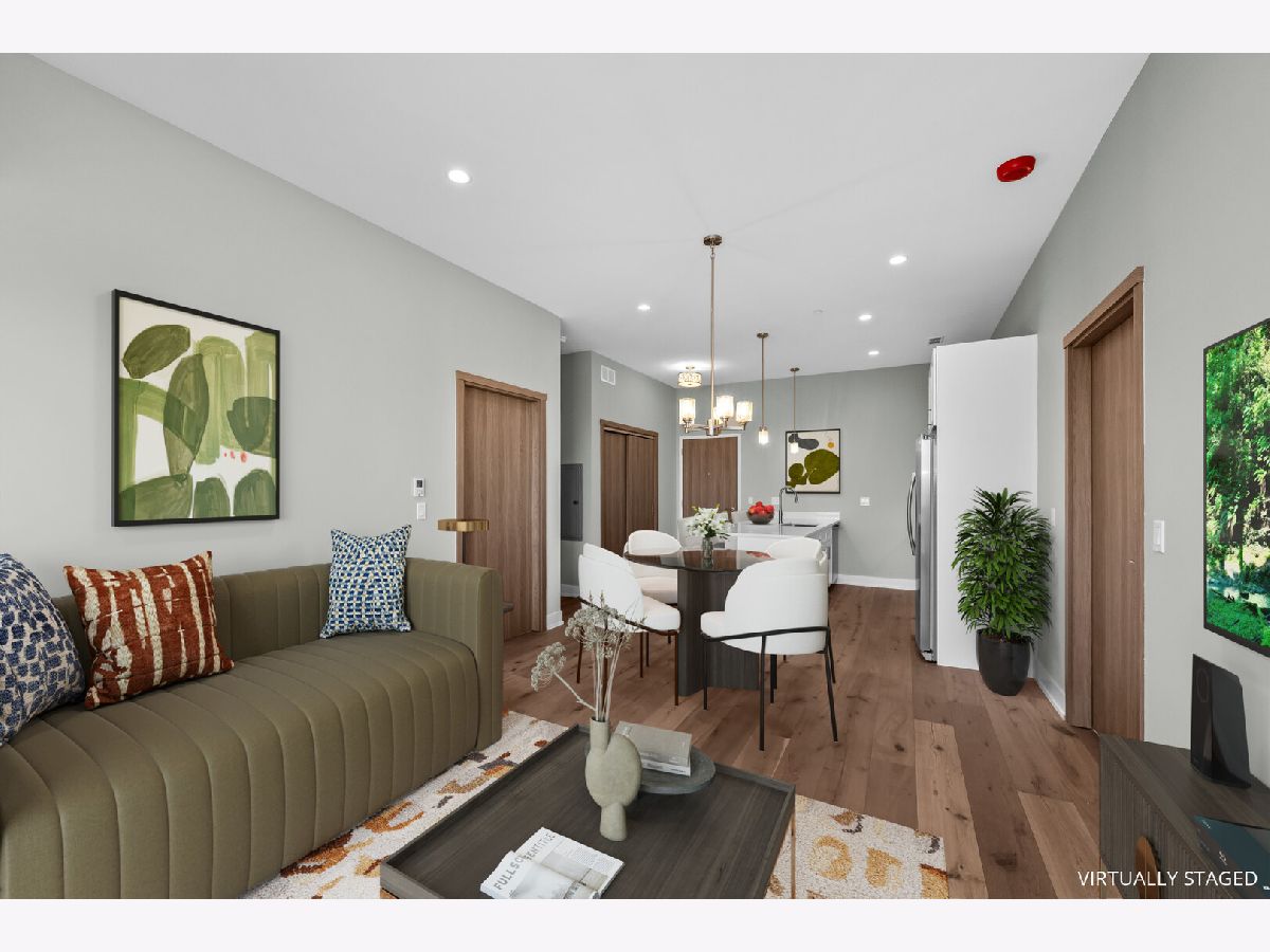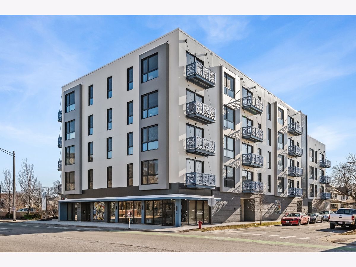 Welcome to Oak Park Commons! Become an owner in the first cohousing community in Illinois. Owners will enjoy the best of both worlds: ownership of individual condo units and shared common spaces that foster social interaction among residents. This light-filled 2 bedroom/2 bath unit has a modern floor plan designed for today's living. The open concept living room and kitchen have gleaming hardwood floors and open to a private balcony. The kitchen boasts 42" cabinets, quartz countertops, island with breakfast bar, designer fixtures and lighting, and stainless steel appliances. The bedrooms are separated by living space for added privacy and they each have a walk-in closet. The en suite bathroom has a custom shower, custom mirrors with designer lighting, and quartz countertops. Enjoy quiet and comfortable living with a truss joist silent floor system, advanced sound attenuation between units and floors, high efficiency low e windows and balcony doors, and high efficiency split system a/c with heat pump. This unit is equipped with a home network connection for home entertainment and CAT 5 Rg interface. All of this plus in-unit laundry. Common rooms on the fifth floor include a large room designed for dining, celebrations, and social events. The common great room includes a kitchen with two stoves, several sinks, a pantry and multi-level counter space for ease of access. There is a fireplace alcove and large windowed doors that open to the terrace and adjoining roof garden. Other common rooms include the quiet room with workspace and common Wi-Fi, meeting rooms that can facilitate small group gatherings, an exercise room, and a guest suite to provide overflow space for visitors. All of this in a sustainable building with National Green Building Standard "Silver" certification with an advanced high-efficiency hot water system and electric car charging stations in the covered garage. State-of-the-art intercom and security systems. In addition, this building is fully accessible. Conveniently located near parks, schools, and Downtown Oak Park. A great location for commuters! Just two stops to downtown's Ogilvie Transportation Center via Metra UP West line. Enjoy easy access to the CTA Blue and Green Lines and Madison Street buses; biking is a breeze with many tree-lined side streets and the Madison Street bike line that runs right past the Commons.