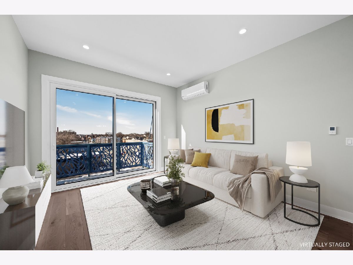 Welcome to Oak Park Commons! Become an owner in the first cohousing community in Illinois. Owners will enjoy the best of both worlds: ownership of individual condo units and shared common spaces that foster social interaction among residents. This light-filled 2 bedroom/1 bath unit has a modern floor plan designed for today's living. The open concept living room and kitchen have gleaming hardwood floors and open to a private balcony. The kitchen boasts 42" cabinets, quartz countertops, island with breakfast bar, designer fixtures and lighting, and stainless steel appliances. The bathroom has a tub/shower, custom mirrors with designer lighting, and an undermount vanity sink with quartz countertops. The bedrooms are separated by living space for added privacy. Enjoy quiet and comfortable living with a truss joist silent floor system, advanced sound attenuation between units and floors, high efficiency low e windows and balcony doors, and high efficiency split system a/c with heat pump. This unit is equipped with a home network connection for home entertainment and CAT 5 Rg interface. All of this plus in-unit laundry. Common rooms on the fifth floor include a large room designed for dining, celebrations, and social events. The common great room includes a kitchen with two stoves, several sinks, a pantry and multi-level counter space for ease of access. There is a fireplace alcove and large windowed doors that open to the terrace and adjoining roof garden. Other common rooms include the quiet room with workspace and common Wi-Fi, meeting rooms that can facilitate small group gatherings, an exercise room, and a guest suite to provide overflow space for visitors. All of this in a sustainable building with National Green Building Standard "Silver" certification with an advanced high-efficiency hot water system and electric car charging stations in the covered garage. State-of-the-art intercom and security systems. In addition, this building is fully accessible. Conveniently located near parks, schools, and Downtown Oak Park. A great location for commuters! Just two stops to downtown's Ogilvie Transportation Center via Metra UP West line. Enjoy easy access to the CTA Blue and Green Lines and Madison Street buses; biking is a breeze with many tree-lined side streets and the Madison Street bike line that runs right past the Commons. NOTE: Unit photos are from similar rooms in other units. See Unit 406 listing to see more photos of what the unit finishes look like.