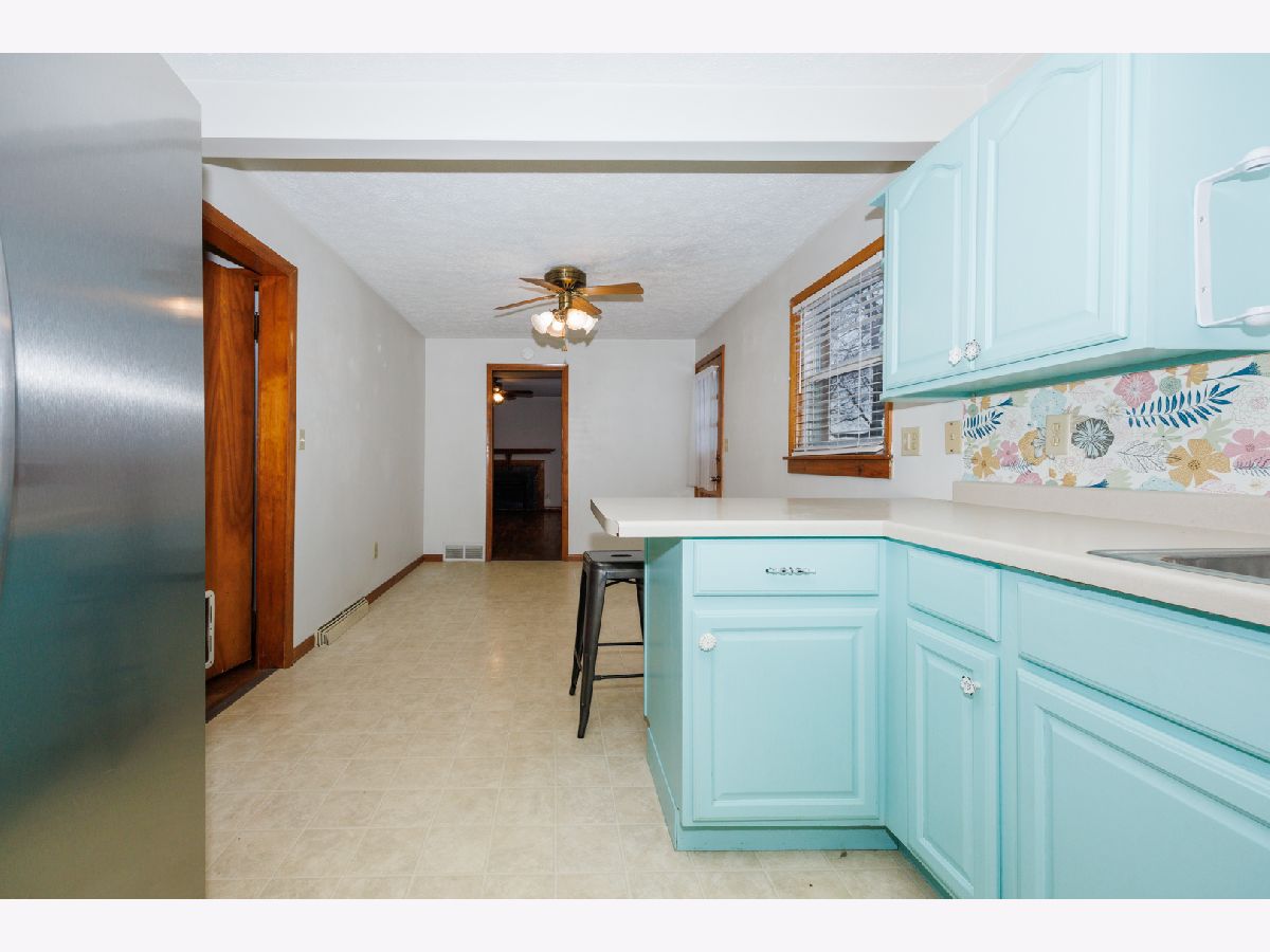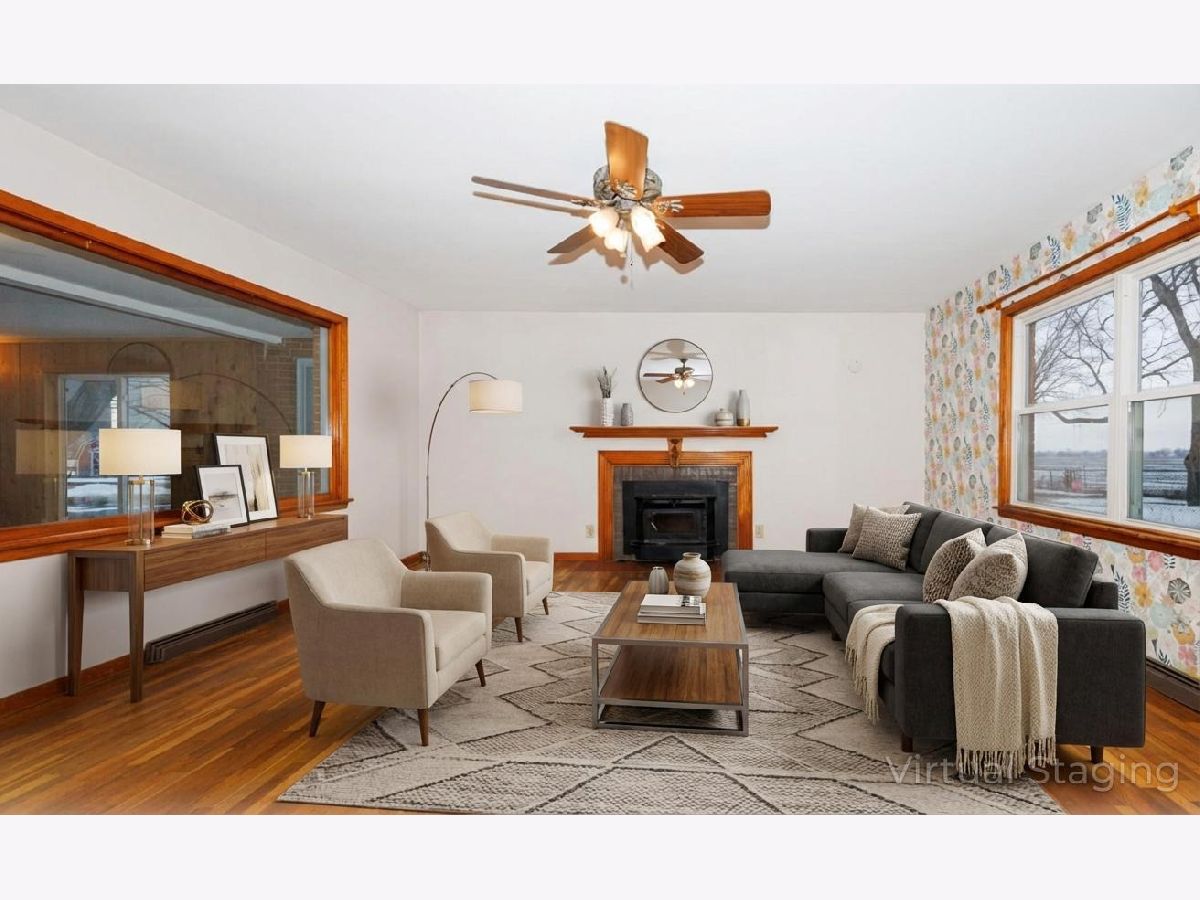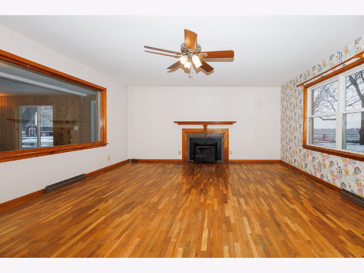 Welcome to this charming brick ranch set on a large lot with a one-car attached garage in Heyworth School District. Bright and spacious throughout, this home offers a warm and inviting layout. You're greeted by an enclosed front room filled with windows and natural light, creating a perfect space to relax or welcome guests. The main living room features beautiful wood flooring and a cozy fireplace, adding character and comfort. The kitchen offers cheerful cabinetry, a newer refrigerator and microwave, a convenient pantry, and counter seating, with additional space for a dining table. Just off the kitchen, step outside to a generous backyard with no neighbors behind, providing privacy and the perfect setting to enjoy outdoor living and STUNNING sunset views. The main level is complete with two bedrooms, a full bath, and ample closet space. The full unfinished basement offers endless potential to expand your living space or create a customized area to suit your needs. Recent updates include a new septic system (2022), newer windows (with warranty), and some newer appliances. All appliances are included. Don't miss the opportunity to see this delightful home-schedule your showing today!
