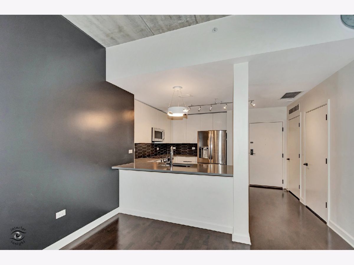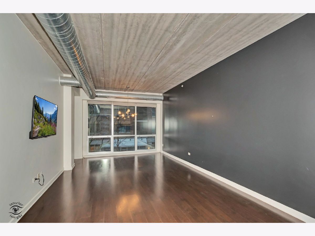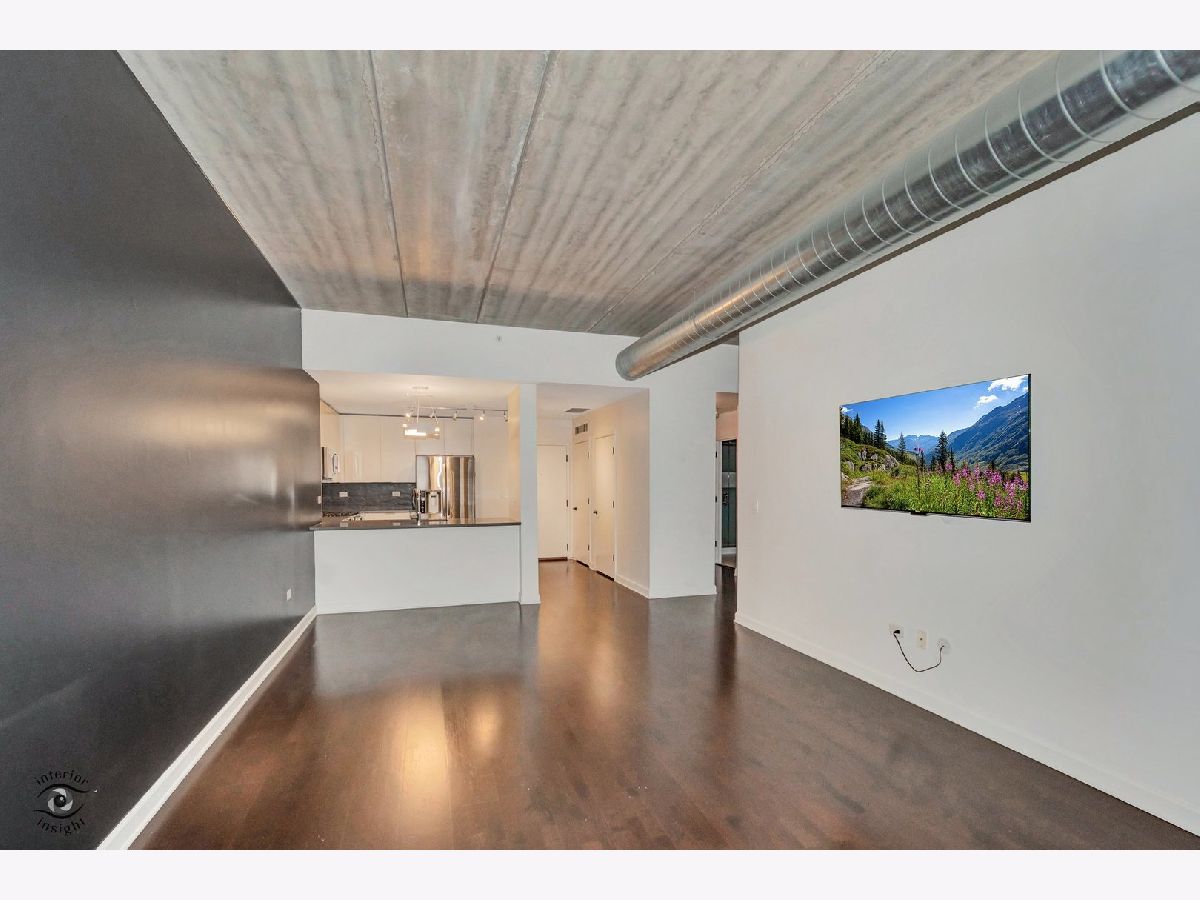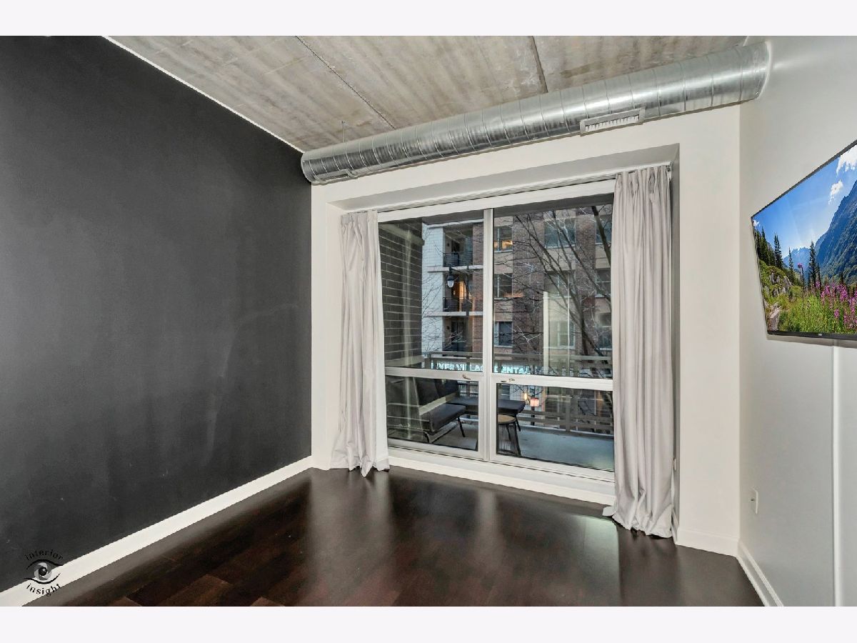 Discover this spacious 1-bedroom plus den concrete loft, perfectly located in the heart of River North. This east-facing unit is surrounded by treetops, creating a serene and private setting. The updated kitchen (2018) features modern white solid wood cabinetry, gray quartz countertops with a matching backsplash, LG stainless steel appliances, 2024 Bosch dishwasher and a newer sink with garbage disposal. A 2021 LG stove with an air fryer function adds convenience, while the peninsula offers extra seating and flows seamlessly into the open living and dining areas. Step out onto the private patio, perfect for grilling and relaxing.A wall of built-in storage and an in-unit washer/dryer separates the living space from the private areas. The den, located off the living room, provides a flexible space for a home office or guest room. The spa-like bathroom, fully renovated in 2018, includes a custom walk-in rain shower, ample vanity storage, and updated lighting. The primary bedroom is a peaceful retreat with floor-to-ceiling windows, custom blinds, and access to the private deck. The unit features 9-foot ceilings throughout.This home includes a deeded garage parking spot and a full-height storage cage. Building amenities include bike storage, 24-hour door staff, on-site maintenance, a package room, a fitness center, and a secure OpenPath Bluetooth entry system. Located just minutes from coffee shops, restaurants, the River Walk, and the Chicago Brown and Blue Line CTA stops, this condo offers the perfect combination of comfort and convenience This is a short sale.