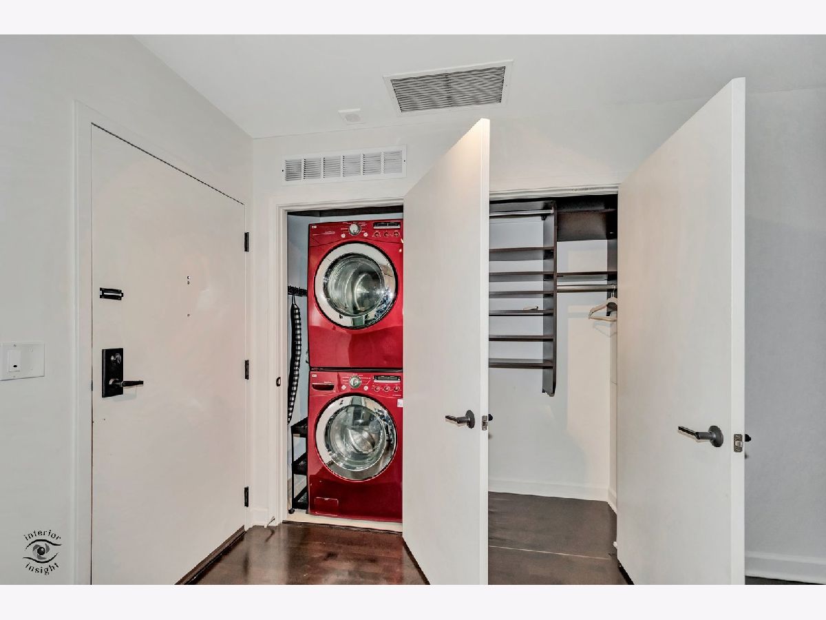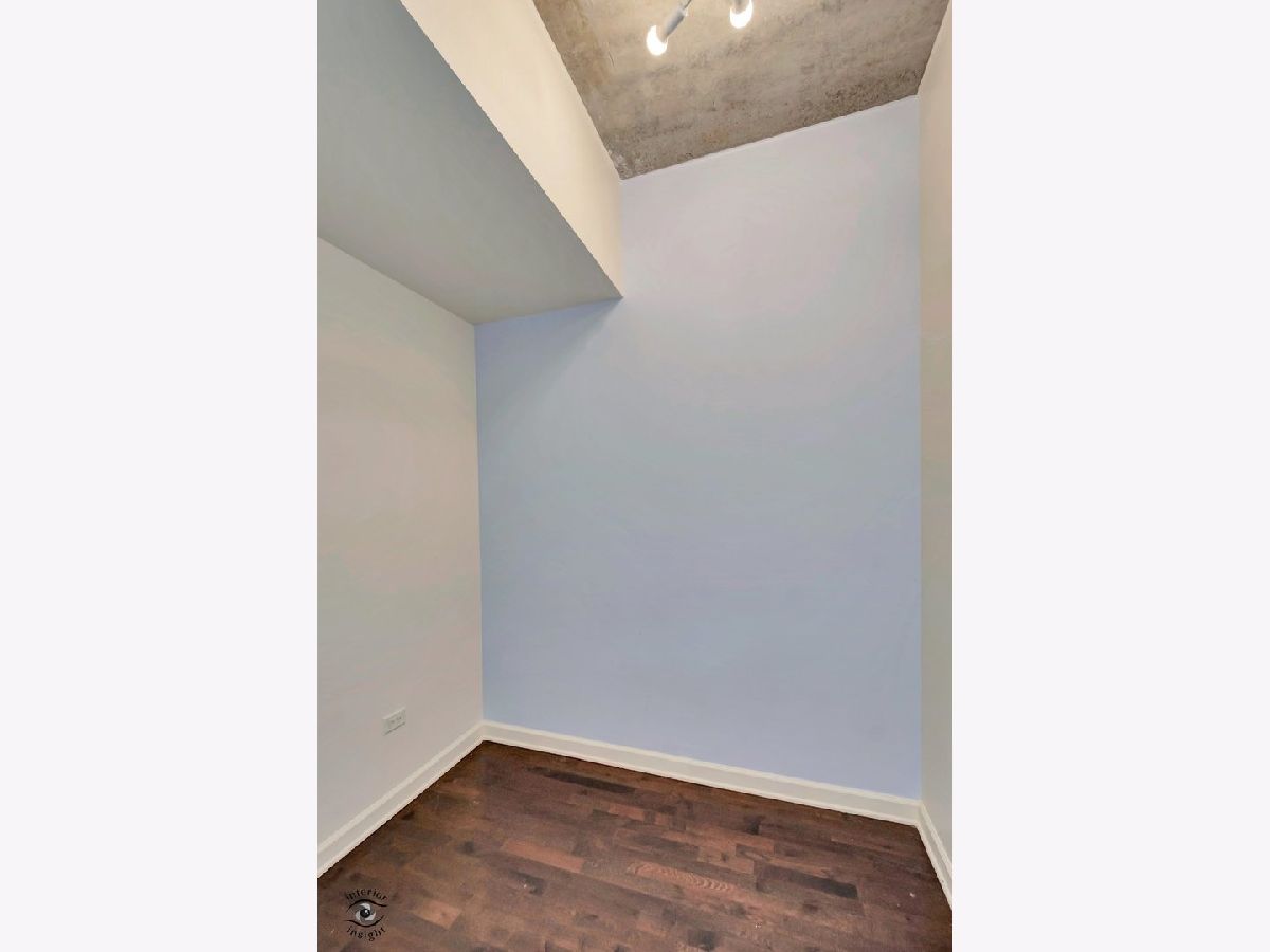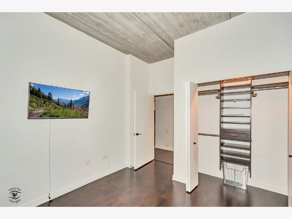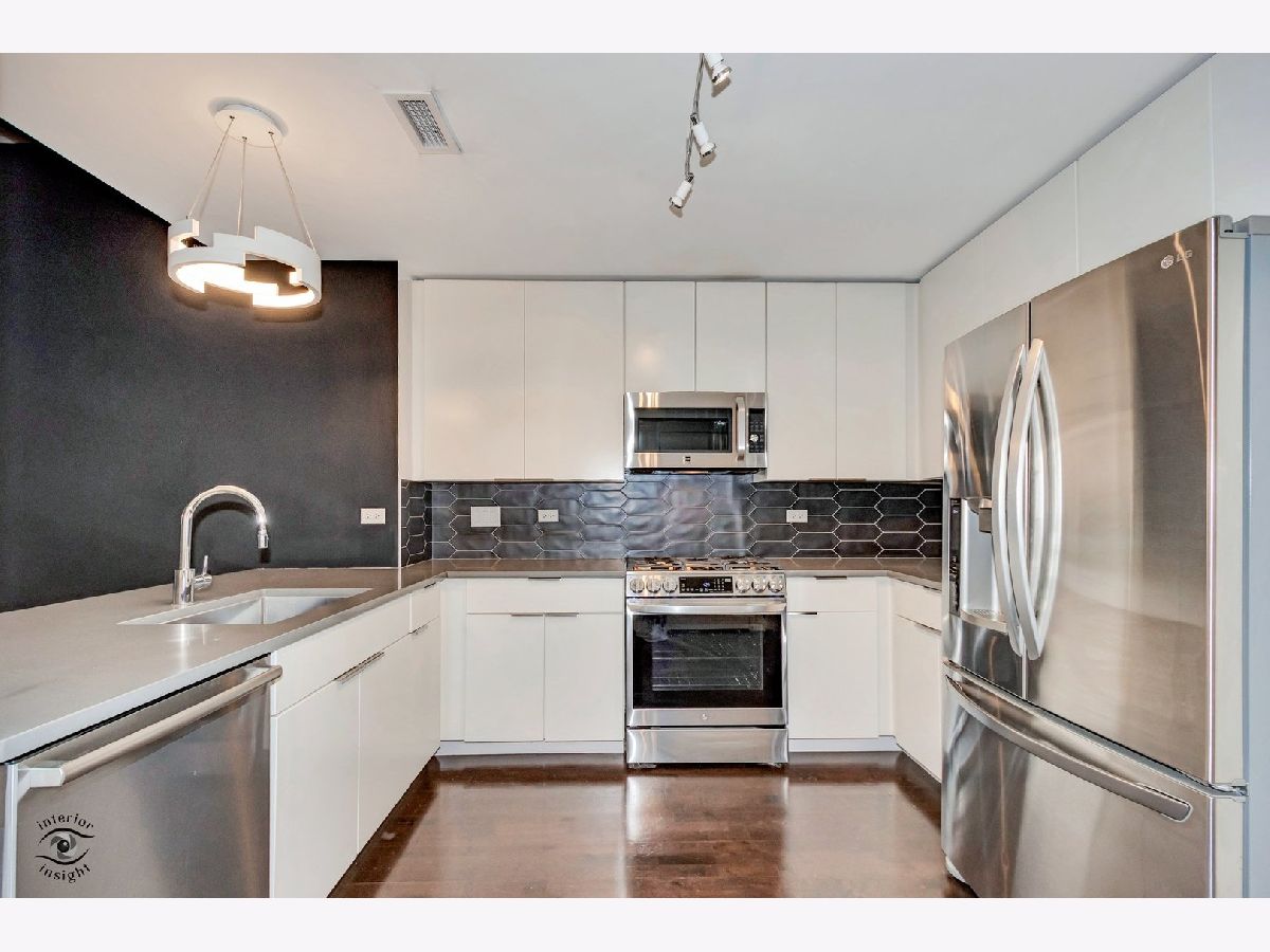 Discover this spacious 1-bedroom plus den concrete loft, perfectly located in the heart of River North. This east-facing unit is surrounded by treetops, creating a serene and private setting. The updated kitchen (2018) features modern white solid wood cabinetry, gray quartz countertops with a matching backsplash, LG stainless steel appliances, 2024 Bosch dishwasher and a newer sink with garbage disposal. A 2021 LG stove with an air fryer function adds convenience, while the peninsula offers extra seating and flows seamlessly into the open living and dining areas. Step out onto the private patio, perfect for grilling and relaxing.A wall of built-in storage and an in-unit washer/dryer separates the living space from the private areas. The den, located off the living room, provides a flexible space for a home office or guest room. The spa-like bathroom, fully renovated in 2018, includes a custom walk-in rain shower, ample vanity storage, and updated lighting. The primary bedroom is a peaceful retreat with floor-to-ceiling windows, custom blinds, and access to the private deck. The unit features 9-foot ceilings throughout.This home includes a deeded garage parking spot and a full-height storage cage. Building amenities include bike storage, 24-hour door staff, on-site maintenance, a package room, a fitness center, and a secure OpenPath Bluetooth entry system. Located just minutes from coffee shops, restaurants, the River Walk, and the Chicago Brown and Blue Line CTA stops, this condo offers the perfect combination of comfort and convenience This is a short sale.