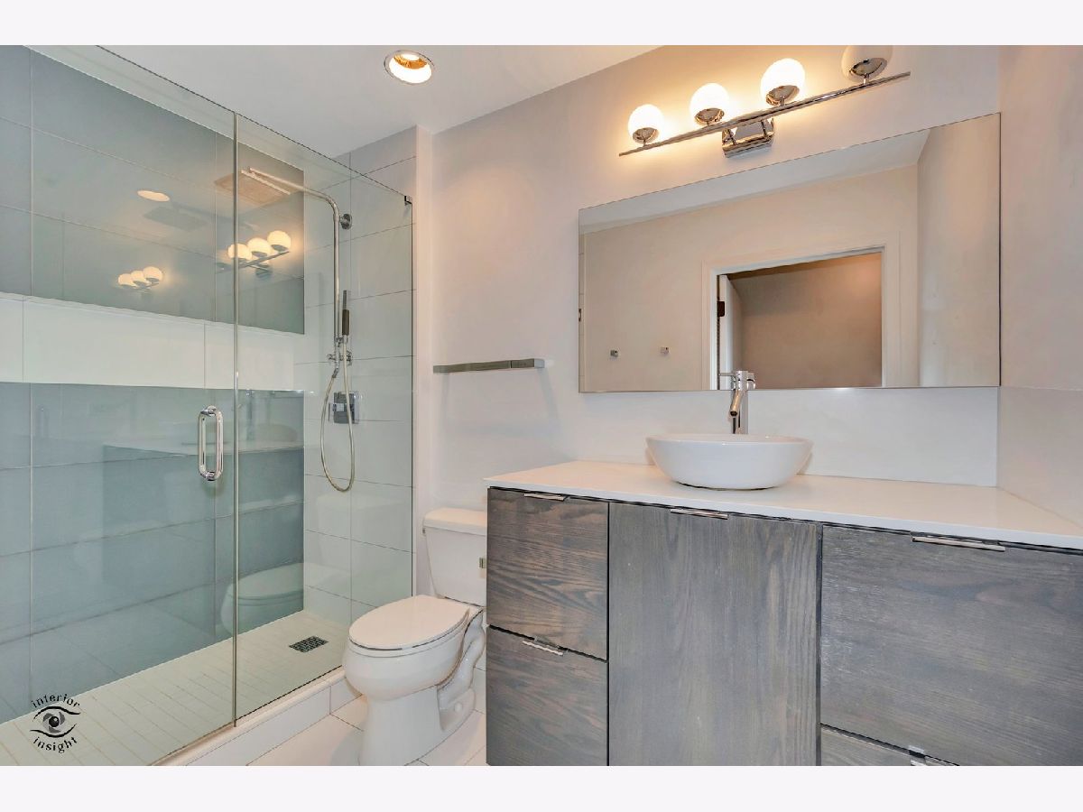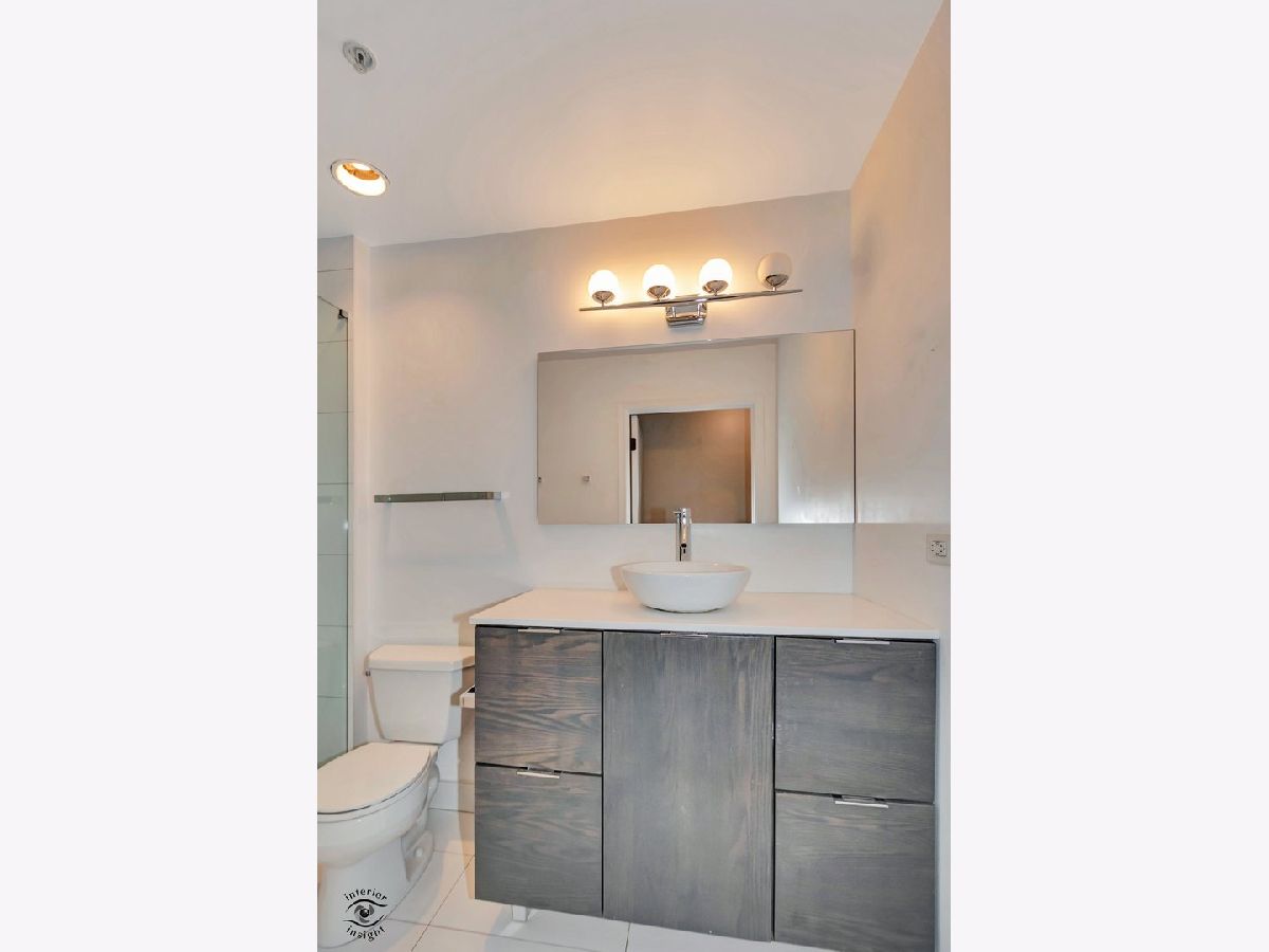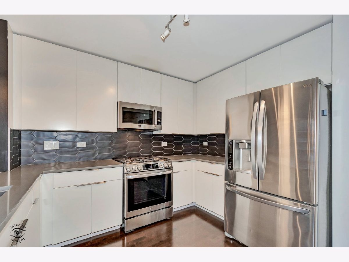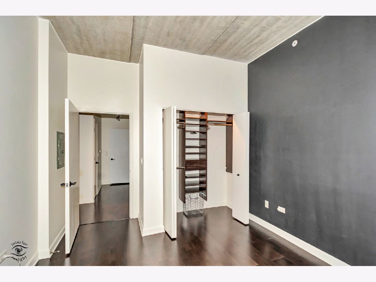 Discover this spacious 1-bedroom plus den concrete loft, perfectly located in the heart of River North. This east-facing unit is surrounded by treetops, creating a serene and private setting. The updated kitchen (2018) features modern white solid wood cabinetry, gray quartz countertops with a matching backsplash, LG stainless steel appliances, 2024 Bosch dishwasher and a newer sink with garbage disposal. A 2021 LG stove with an air fryer function adds convenience, while the peninsula offers extra seating and flows seamlessly into the open living and dining areas. Step out onto the private patio, perfect for grilling and relaxing.A wall of built-in storage and an in-unit washer/dryer separates the living space from the private areas. The den, located off the living room, provides a flexible space for a home office or guest room. The spa-like bathroom, fully renovated in 2018, includes a custom walk-in rain shower, ample vanity storage, and updated lighting. The primary bedroom is a peaceful retreat with floor-to-ceiling windows, custom blinds, and access to the private deck. The unit features 9-foot ceilings throughout.This home includes a deeded garage parking spot and a full-height storage cage. Building amenities include bike storage, 24-hour door staff, on-site maintenance, a package room, a fitness center, and a secure OpenPath Bluetooth entry system. Located just minutes from coffee shops, restaurants, the River Walk, and the Chicago Brown and Blue Line CTA stops, this condo offers the perfect combination of comfort and convenience This is a short sale.