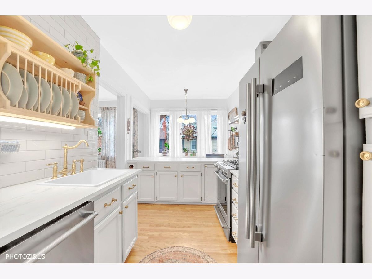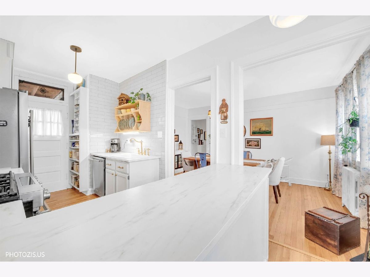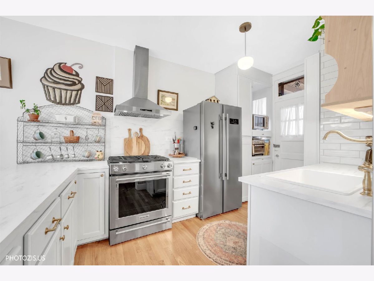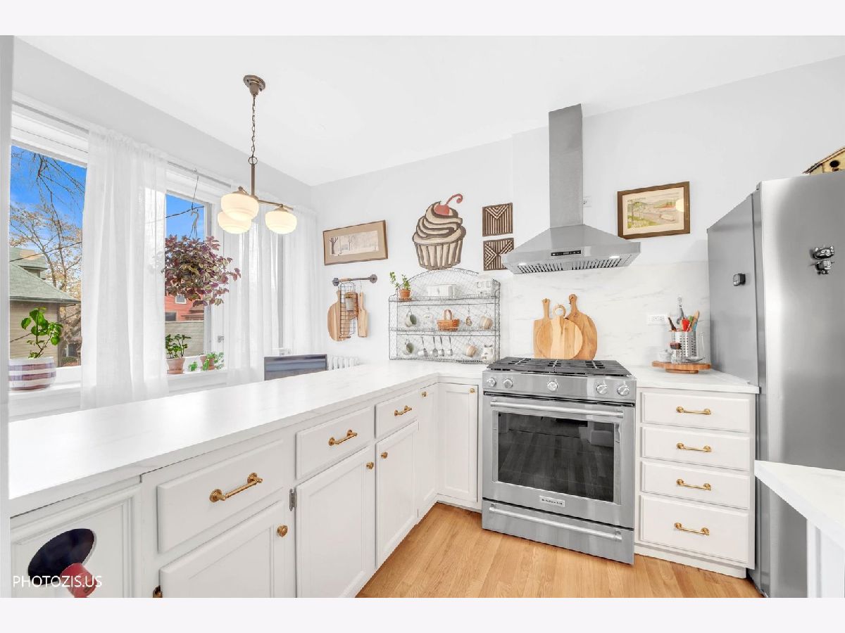 STUNNING DESIGNER CONDO IN HEART OF DOWNTOWN OAK PARK! This large, charming two-bedroom plus flexible living room/den/third bedroom condo is a true gem in the highly sought-after Downtown Oak Park area. The home offers Spacious Suites & Flexible Layout You will immediately fall in love with the gorgeous, open-concept kitchen and dining space, perfect for both daily living and entertaining. Kitchen Features high-end KitchenAid stainless steel appliances, classic hardwood cabinetry, and a sleek glass subway tile backsplash. The large center island offers convenient seating and leads directly to a small, but charming outside deck area and cozy courtyard down the stairs. Architectural Details - Enjoy classic hardwood floors throughout, built-in shelving flanking the fireplace, and a welcoming foyer entry. The home offers two good sized bedrooms, providing great natural light and flexible use. The living room space is a good size tranquil retreat with lovely Romeo and Juliet balcony and and could be utilized as a third bedroom if desired. Bathroom: The full bathroom, conveniently located off the hallway, features classic subway tile and a relaxing soaking tub. The unbeatable location puts you just a block away from the heart of Oak Park, known for its award-winning restaurants, charming boutiques, and neighborhood appeal. Permitted street parking in front of the building, plus an exterior, transferable lease for $100 per month.