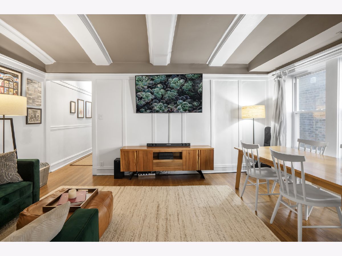 Featured in Chicago Social, Chicago Home + Garden, and Elle Decor, this stunning 2-bedroom home with a family room, sunroom, and laundry/pantry was designed and owned by a celebrated local interior designer, blending timeless craftsmanship with modern luxury. A hand-painted grand foyer leads to sun-filled living spaces with original millwork, hardwood floors, and a remote-controlled gas fireplace. The updated eat-in kitchen combines vintage charm with modern convenience and opens to a spacious family/dining area with elegant wall paneling ideal for entertaining or relaxing. The primary suite offers Elfa closets and a crisp subway-tiled bath. Laundry and pantry areas provide added functionality and overlook a beautifully landscaped shared backyard and patio. Additional features include a new washer/dryer with replaced hook-up valves, private storage, and nearby rental parking. Located near the lake, this exceptional home provides easy access to world-class entertainment, Michelin-recommended restaurants, gyms, libraries, cafes, and local favorites. Convenient to two newly remodeled CTA Red Line stations, multiple bus routes, lakefront paths, dog parks, and some of Chicago's best beaches. A rare opportunity to own a truly one-of-a-kind home with unmatched design, craftsmanship, and location. Don't miss your chance schedule a showing today!