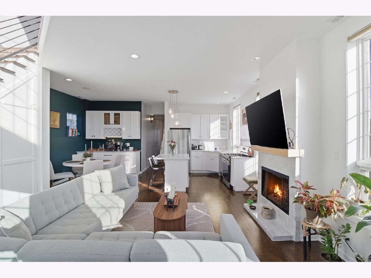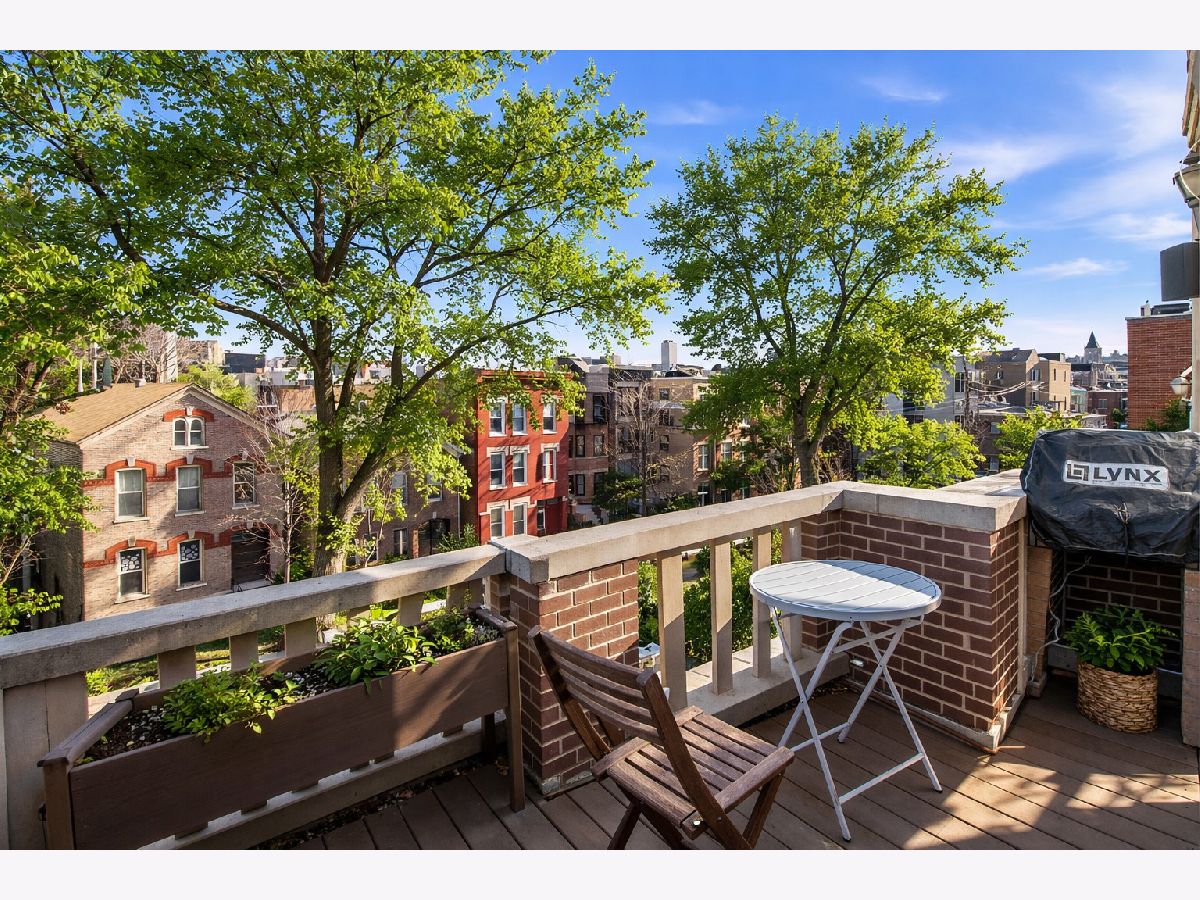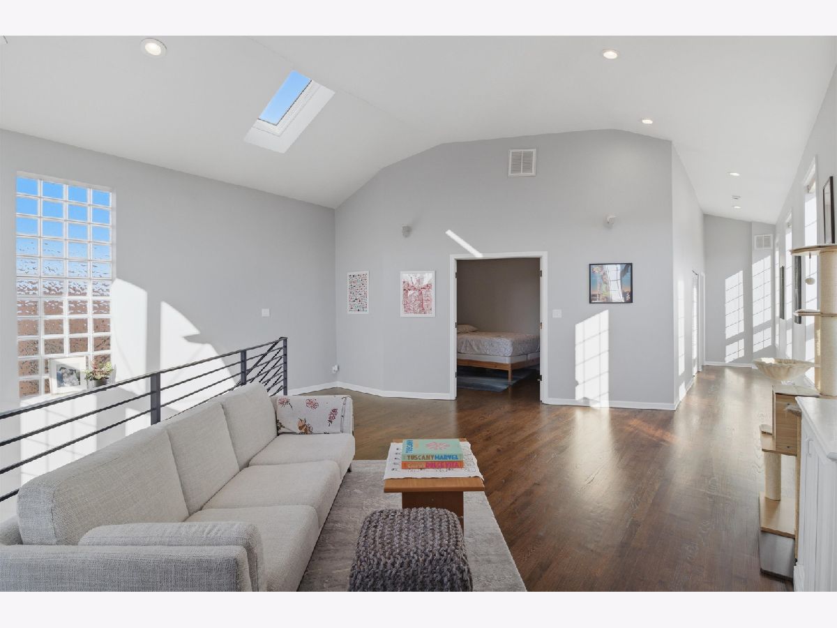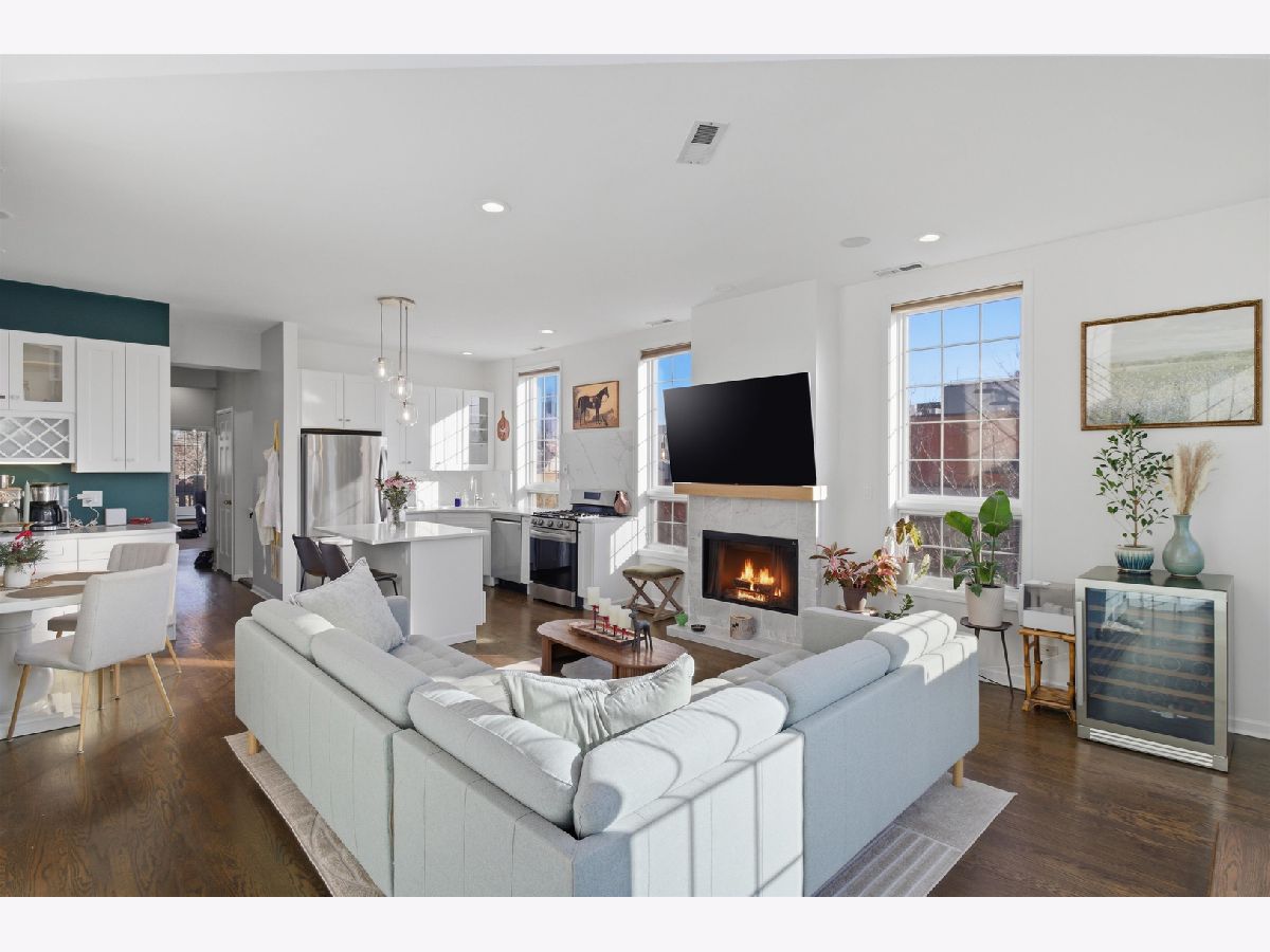 Experience elevated city living in this one-of-a-kind duplex penthouse in the heart of East Village, offering sweeping skyline views and exceptional natural light from three exposures. With dramatic two-story windows, this residence lives like a single-family home in the sky. Designed for both entertaining and everyday comfort, the open-concept main level features a beautifully reimagined kitchen with 42" white cabinetry, quartz countertops, stainless steel appliances, a generous breakfast island, expanded pantry storage, and dedicated wine storage. The living area is anchored by a gas fireplace with a Carrara marble surround and opens to a west-facing balcony-perfect for sunset views. The primary suite is a true retreat, complete with its own private balcony overlooking the skyline, a custom walk-in closet, and a fully redesigned aware winning spa like bath. The expansive second bedroom includes a walk-in closet, wood-burning fireplace, and access to a third outdoor space. Upstairs, a versatile third bedroom or office and a spacious bonus family room provide flexible living options. Both bathrooms were completely renovated in 2023 by Sarah Jacquelyn Interiors, with the lower-level bath earning the 2024 ASID Illinois Design Excellence Award. Extensive recent upgrades include new decks (2024), new double-panel sliding door with retractable screen in the living room (2024), new sliding door in the primary suite (2024), new casement windows (2024), rebuilt and expanded pantry (2024), and a fully redesigned primary suite (2023). Garage parking is included. Ideally located near the dining and shopping along Chicago and Division, convenient public transportation, neighborhood parks, and the upcoming United Center redevelopment-this home places you in the center of it all. Move right in and enjoy. Take the 3D virtual tour to explore every detail.