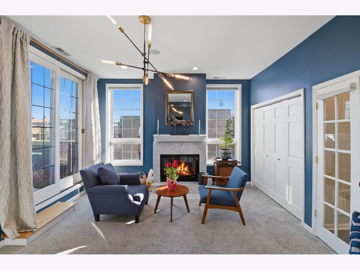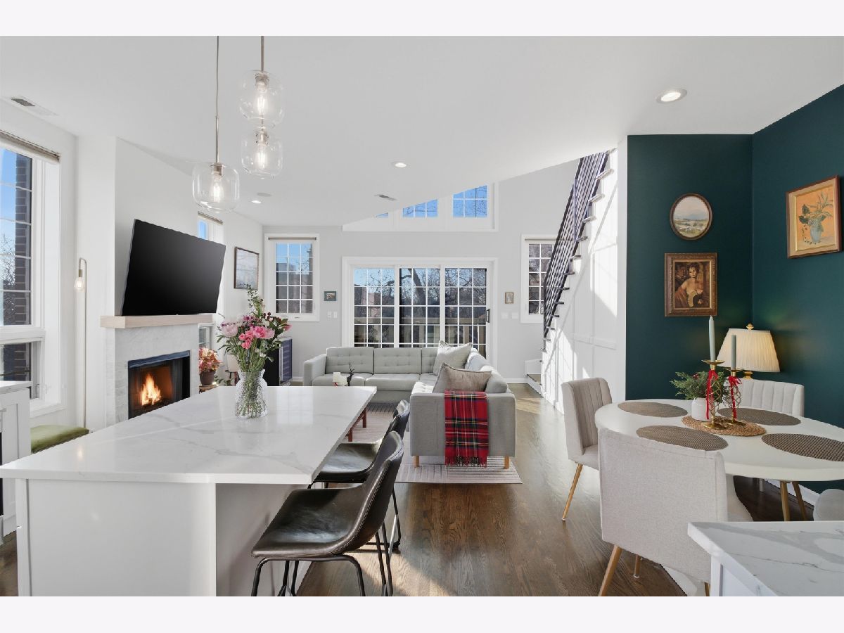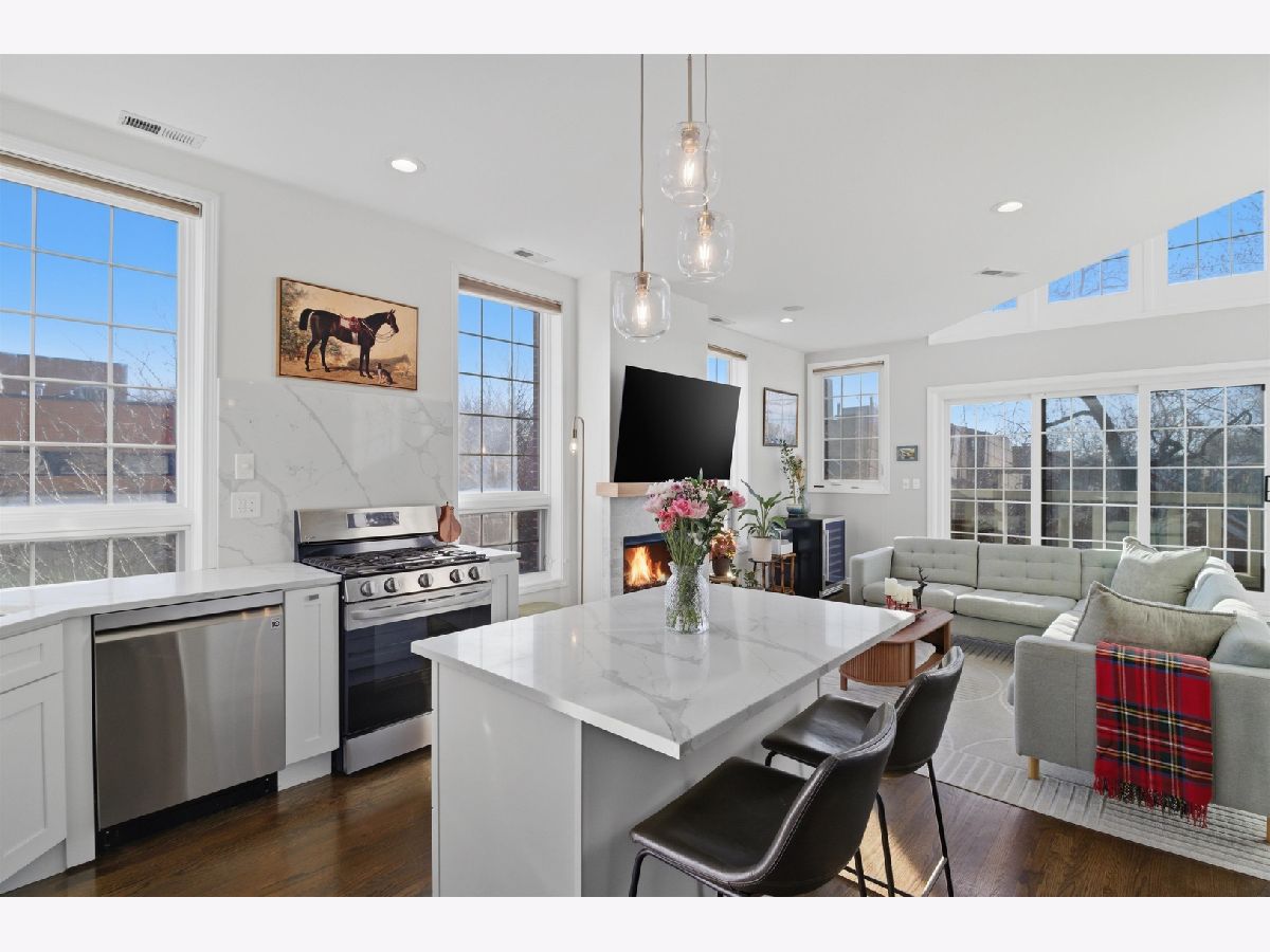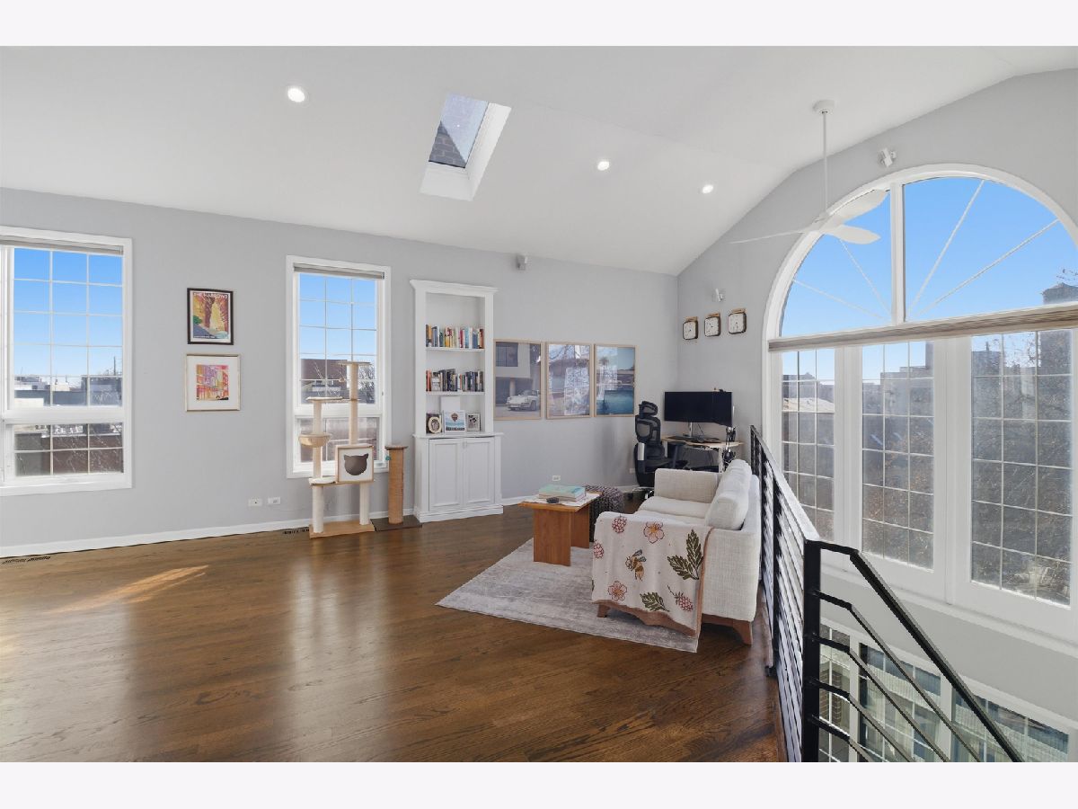 Experience elevated city living in this one-of-a-kind duplex penthouse in the heart of East Village, offering sweeping skyline views and exceptional natural light from three exposures. With dramatic two-story windows, this residence lives like a single-family home in the sky. Designed for both entertaining and everyday comfort, the open-concept main level features a beautifully reimagined kitchen with 42" white cabinetry, quartz countertops, stainless steel appliances, a generous breakfast island, expanded pantry storage, and dedicated wine storage. The living area is anchored by a gas fireplace with a Carrara marble surround and opens to a west-facing balcony-perfect for sunset views. The primary suite is a true retreat, complete with its own private balcony overlooking the skyline, a custom walk-in closet, and a fully redesigned aware winning spa like bath. The expansive second bedroom includes a walk-in closet, wood-burning fireplace, and access to a third outdoor space. Upstairs, a versatile third bedroom or office and a spacious bonus family room provide flexible living options. Both bathrooms were completely renovated in 2023 by Sarah Jacquelyn Interiors, with the lower-level bath earning the 2024 ASID Illinois Design Excellence Award. Extensive recent upgrades include new decks (2024), new double-panel sliding door with retractable screen in the living room (2024), new sliding door in the primary suite (2024), new casement windows (2024), rebuilt and expanded pantry (2024), and a fully redesigned primary suite (2023). Garage parking is included. Ideally located near the dining and shopping along Chicago and Division, convenient public transportation, neighborhood parks, and the upcoming United Center redevelopment-this home places you in the center of it all. Move right in and enjoy. Take the 3D virtual tour to explore every detail.
