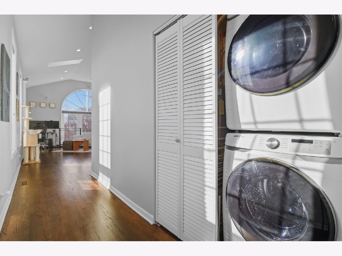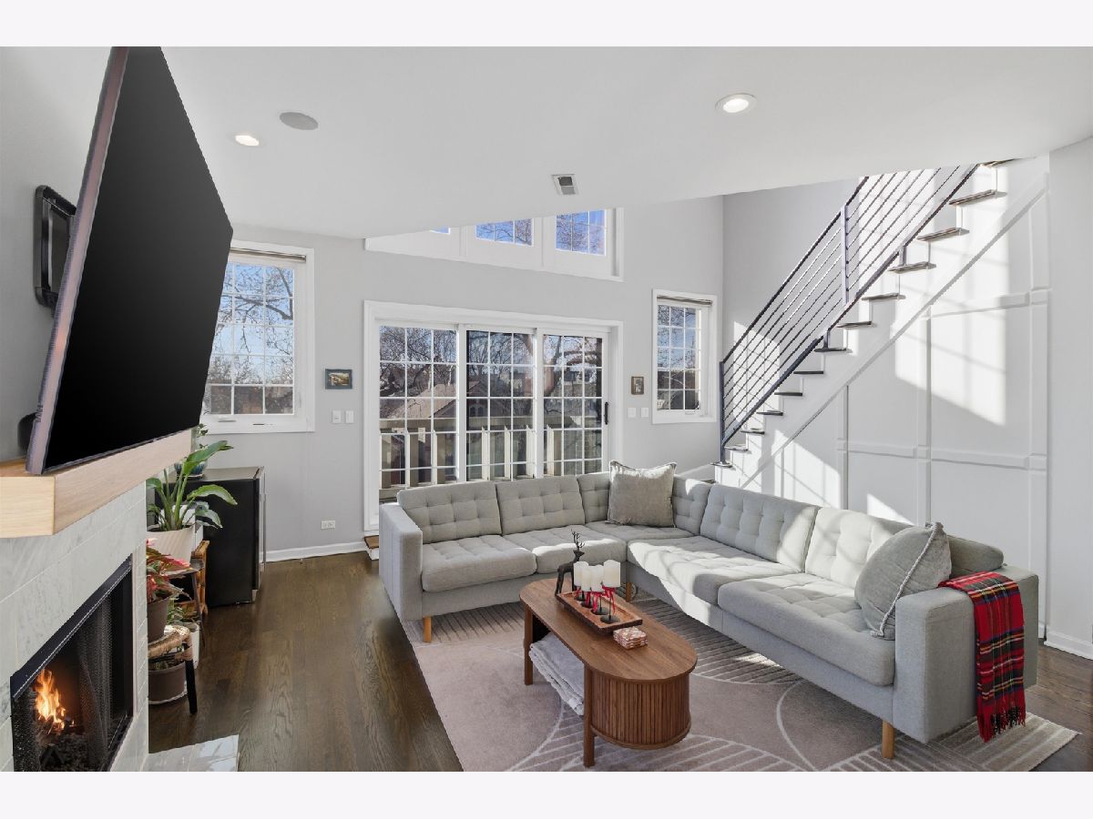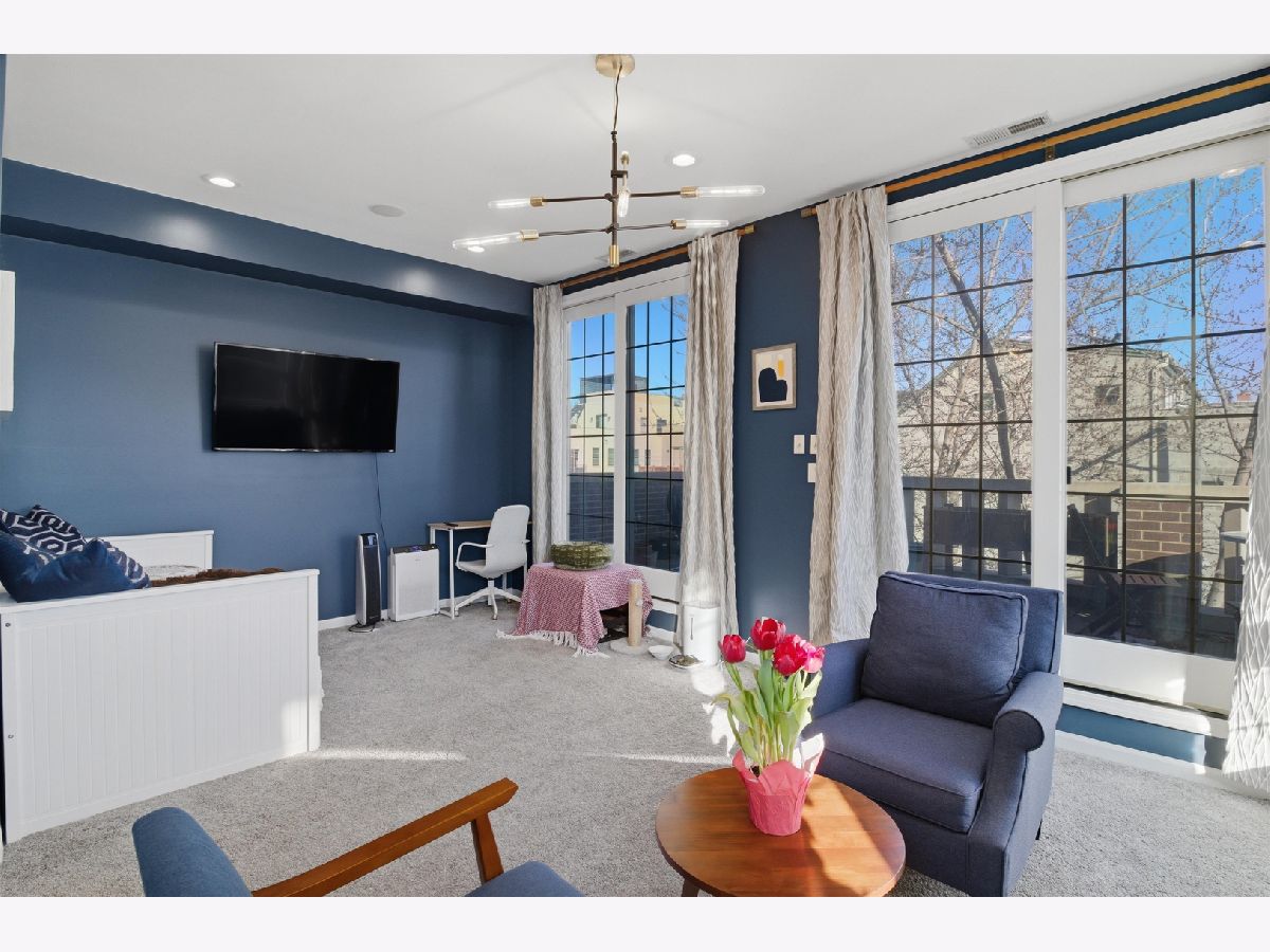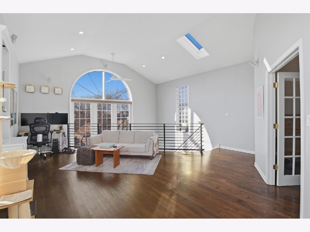 Experience elevated city living in this one-of-a-kind duplex penthouse in the heart of East Village, offering sweeping skyline views and exceptional natural light from three exposures. With dramatic two-story windows, this residence lives like a single-family home in the sky. Designed for both entertaining and everyday comfort, the open-concept main level features a beautifully reimagined kitchen with 42" white cabinetry, quartz countertops, stainless steel appliances, a generous breakfast island, expanded pantry storage, and dedicated wine storage. The living area is anchored by a gas fireplace with a Carrara marble surround and opens to a west-facing balcony-perfect for sunset views. The primary suite is a true retreat, complete with its own private balcony overlooking the skyline, a custom walk-in closet, and a fully redesigned aware winning spa like bath. The expansive second bedroom includes a walk-in closet, wood-burning fireplace, and access to a third outdoor space. Upstairs, a versatile third bedroom or office and a spacious bonus family room provide flexible living options. Both bathrooms were completely renovated in 2023 by Sarah Jacquelyn Interiors, with the lower-level bath earning the 2024 ASID Illinois Design Excellence Award. Extensive recent upgrades include new decks (2024), new double-panel sliding door with retractable screen in the living room (2024), new sliding door in the primary suite (2024), new casement windows (2024), rebuilt and expanded pantry (2024), and a fully redesigned primary suite (2023). Garage parking is included. Ideally located near the dining and shopping along Chicago and Division, convenient public transportation, neighborhood parks, and the upcoming United Center redevelopment-this home places you in the center of it all. Move right in and enjoy. Take the 3D virtual tour to explore every detail.