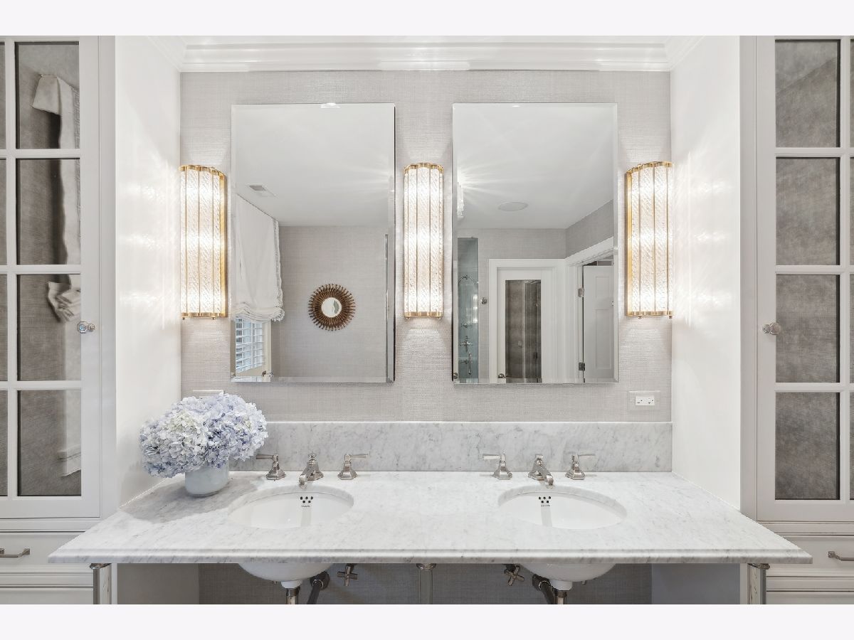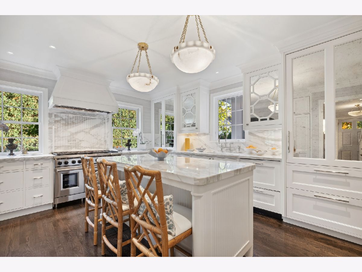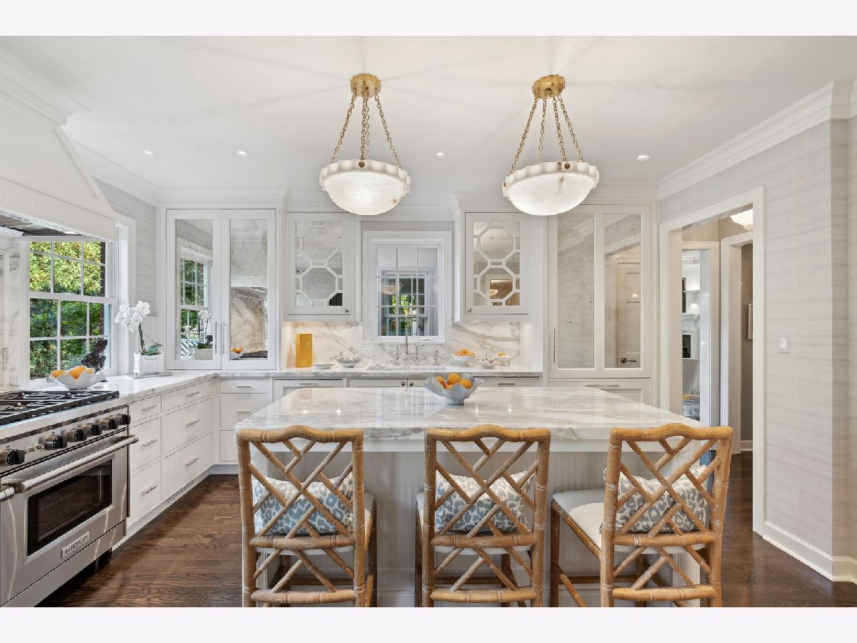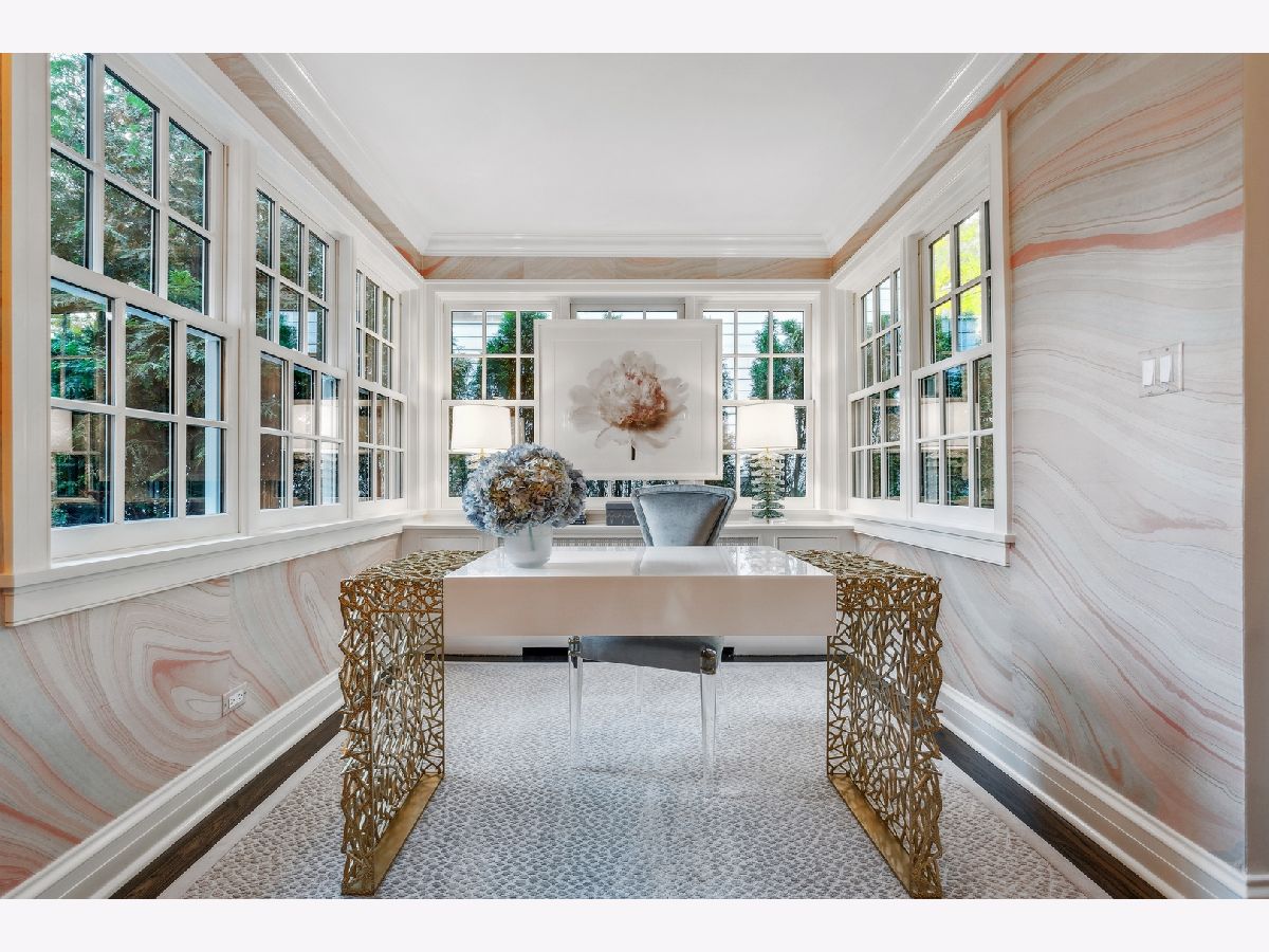 Situated across a lovely park, this designer-owned home is an exquisite and rare find, perfectly serving as a pied-a-terre or a full time home! Meticulously renovated and designed for simplicity and ease of maintenance, this home offers 4000 square feet of finished space without the need for expensive upkeep. A recipient of 2025 Lake Forest Historic Preservation Award, this exquisite home is renovated to perfection and blends timeless elegance with striking designer finishes. It boasts a warm, inviting interior with carefully chosen color schemes, artfully placed light fixtures, gorgeous wall and window treatments, charming fireplaces, and oversized windows. Enter through a gracious foyer with subtle hand-painted walls, arched doorways, and gleaming floors. The spacious living room, ideal for entertaining or relaxing, features a stunning fireplace, lacquered walls, and a custom bar complete with a wine fridge and refrigerated drawers. The kitchen is a true masterpiece, with top-of-the-line appliances, sleek marble countertops, Katonah hardware, and ample storage. Adjacent is a formal dining room with a large bay window, silk wallpaper with hand-painted accents, and a beautiful chandelier and antique wall sconces that add to the inviting ambiance. Natural light floods the spacious family room, with its beautiful fireplace and coffered ceilings-a comfortable place to gather with family and friends. Down the hall, the office is bathed in light from walls of windows. The primary bedroom suite embodies understated elegance and comfort, with a luxurious bath and built-in wardrobes. Three additional bedrooms are filled with light and share two well-appointed bathrooms. On the lower level, attention to detail continues with a spacious recreational area featuring a gorgeous fireplace with marble surround, wool carpeting, and a bank of drawers with two integrated beverage refrigerators. There's also a beautiful bath, a second laundry room, and ample storage. Step outside to enjoy stunning landscaping enhanced by new landscape lighting, a fenced yard offering privacy, and bluestone patios perfect for gatherings or a morning coffee. The addition of a generator ensures uninterrupted comfort and convenience. Other highlight include, heated bathroom floors, invisible built in speakers, heated garage with epoxied floors and new windows. A true gem in the heart of Lake Forest, surrounded by the charm and conveniences of in-town living.