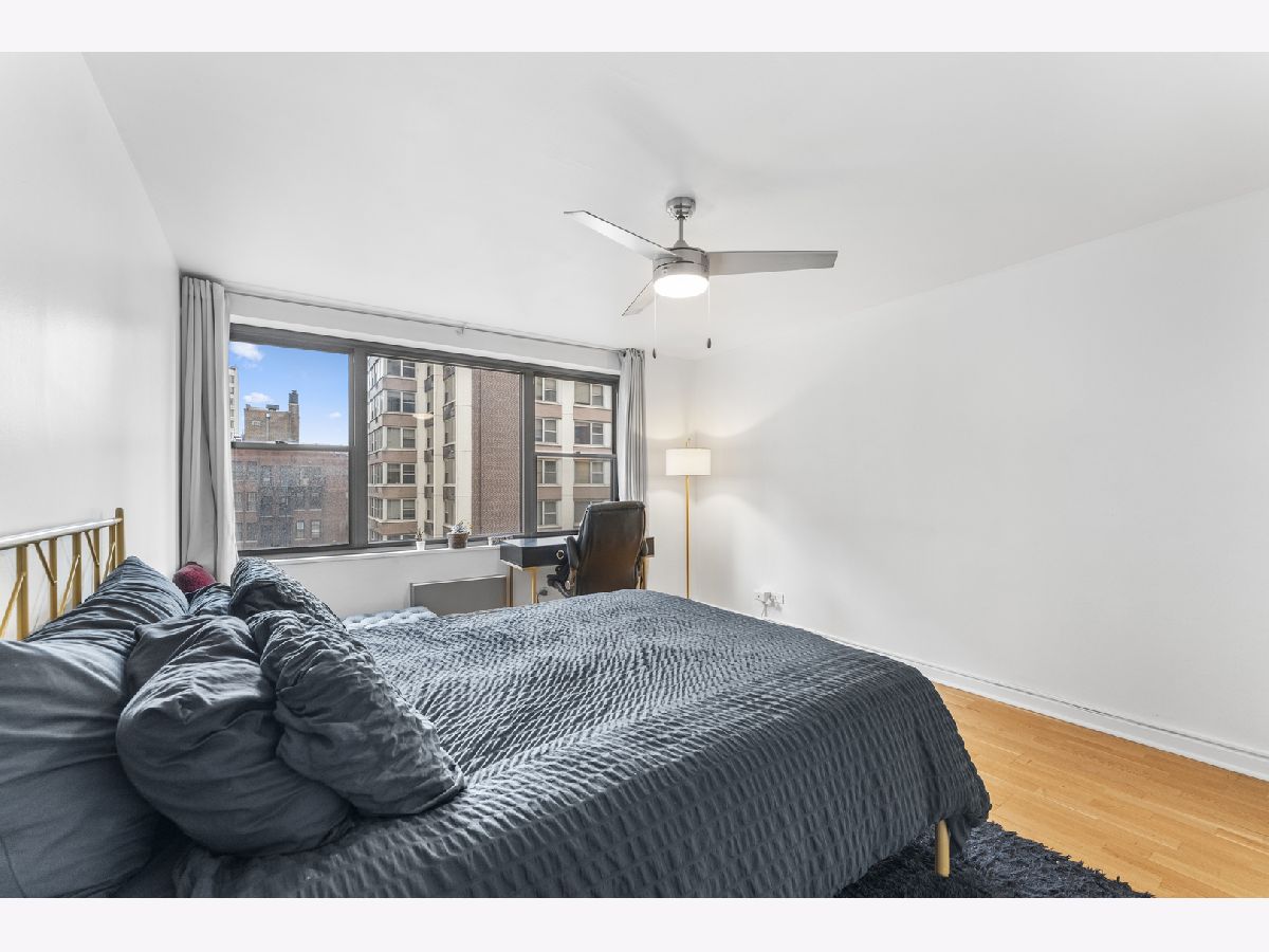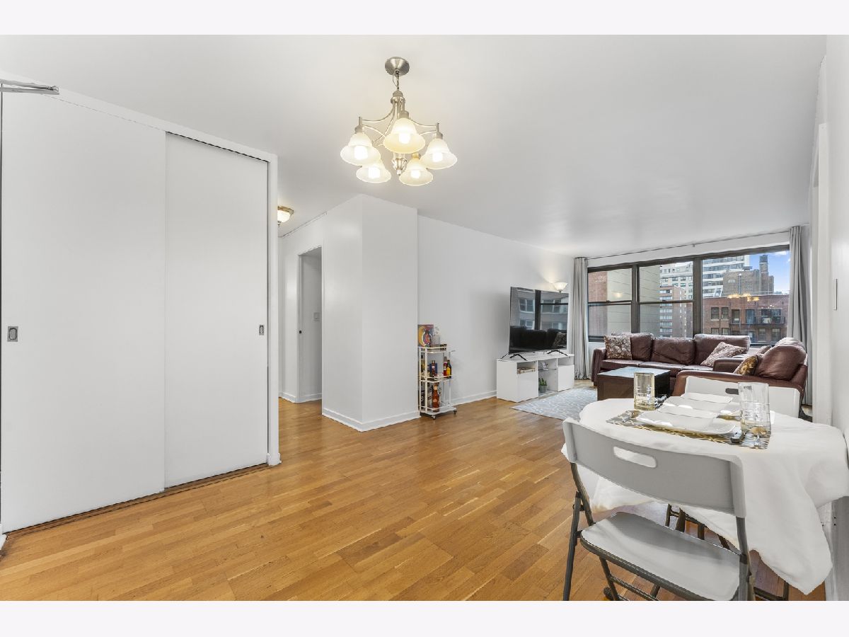 Situated between Lake Michigan and the iconic Magnificent Mile, this Streeterville residence truly embodies what it means to be a Chicagoan-refined city living defined by world-class architecture and city lifestyle. This beautifully renovated 2 bed | 1 bath condo showcases a modern kitchen with quartz countertops, stainless steel appliances, and updated shaker cabinetry, opening seamlessly into the living and dining space with hardwood floors throughout. Large east-facing windows flood the home with natural morning light, enhancing the sense of space and creating an elevated, airy ambiance. Both bedrooms are generously sized with excellent closet storage, while the fully updated bathroom features clean, timeless finishes. Tucked within a quieter residential pocket of Streeterville, the home offers a rare sense of privacy while remaining moments from the vibrancy of Michigan Avenue, world-class shopping and dining, Lakeshore Park, Oak St beach, the Riverwalk, and Lakeshore bike path. Full-amenity building featuring 24hr door staff, a fitness center, laundry room, and a rooftop deck with sweeping panoramic skyline and lake views offering an exceptional vantage point for the weekly fireworks over Navy Pier. Come experience what its like to step out your front door and have everything Chicago has to offer right at your fingertips.