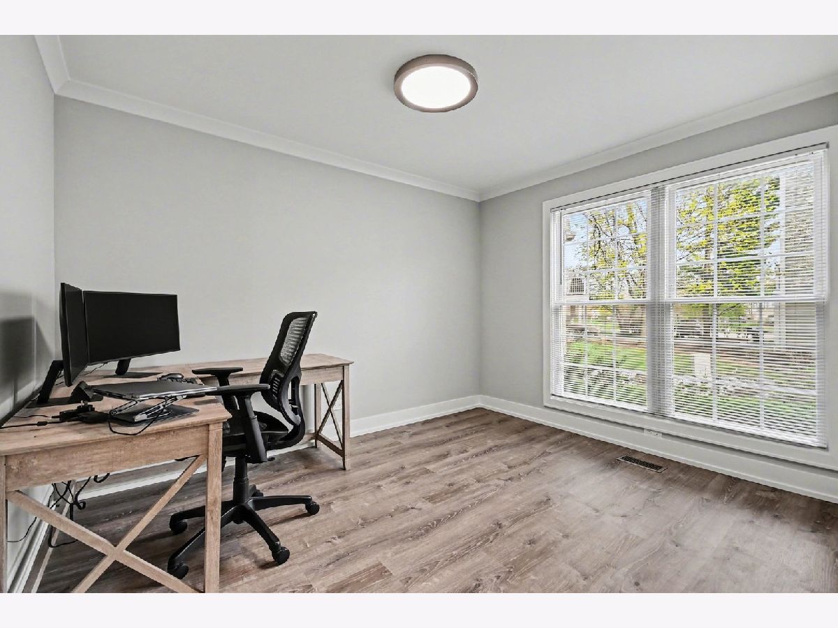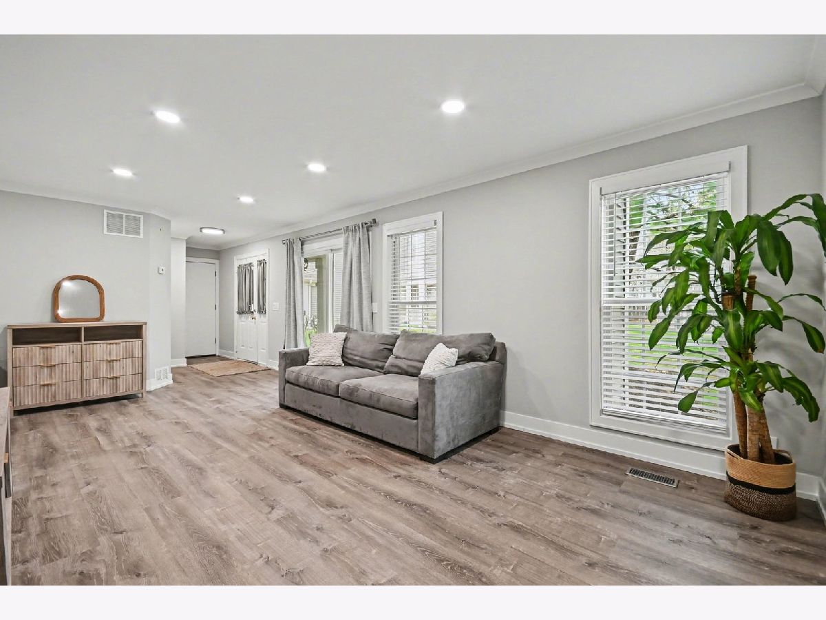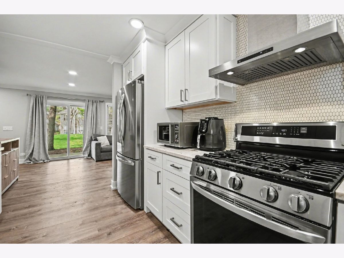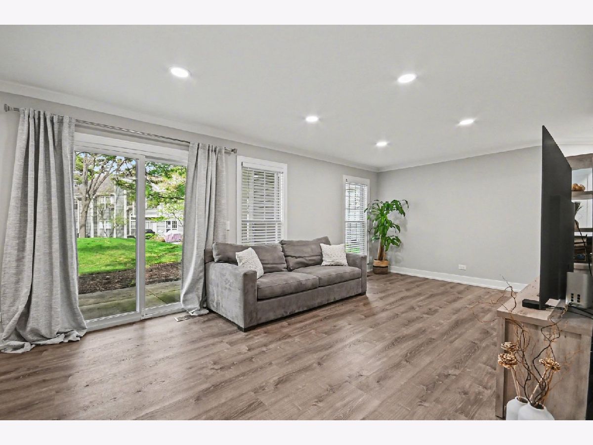 Welcome to easy, single-level living in the desirable Talbot's Mills community! This beautifully updated main-floor condo has been completely renovated within the last six years, offering a move-in-ready space with modern finishes throughout. Step inside your foyer, and gaze into an open-concept layout connecting the kitchen, dining, and living areas-perfect for both everyday living and entertaining. The fully remodeled kitchen features soft-close cabinetry, granite countertops, a stylish tile backsplash, and stainless steel appliances (2021). Luxury vinyl plank flooring flows seamlessly through the main living areas and bedrooms, complemented by new drywall, baseboards, crown molding, and all new interior doors. The primary suite has been thoughtfully redesigned with dual vanities, while the addition of a second full bathroom with a walk-in shower provides ideal space for guests. Enjoy added comfort with all new windows, frames, and blinds, along with recessed lighting featuring dimmers to create the perfect evening ambiance. Relax outdoors on your personal patio, or take advantage of the community's park and sidewalks. The HOA covers exterior maintenance, landscaping, snow removal, plus includes cable and WiFi through Xfinity-making for truly low-maintenance living. Conveniently located near I-355, I-290, I-90, and under 30 minutes to O'Hare. A perfect blend of style, comfort, and convenience-this one is not to be missed!