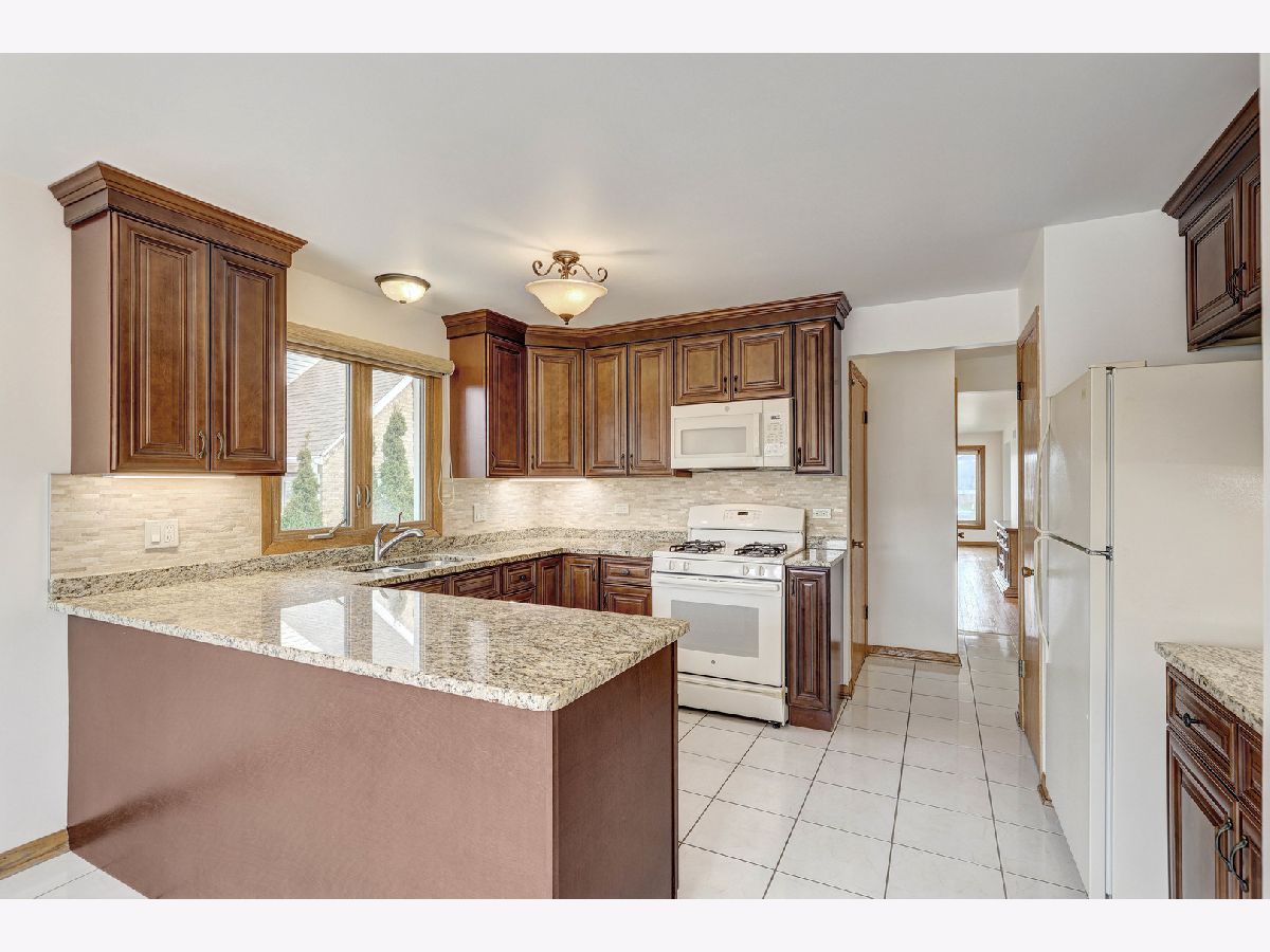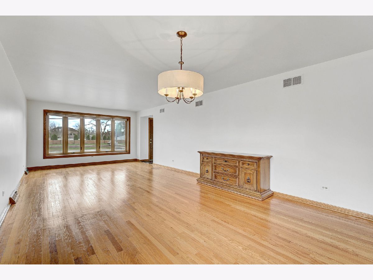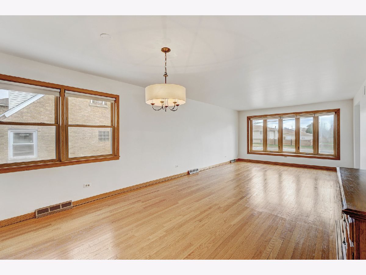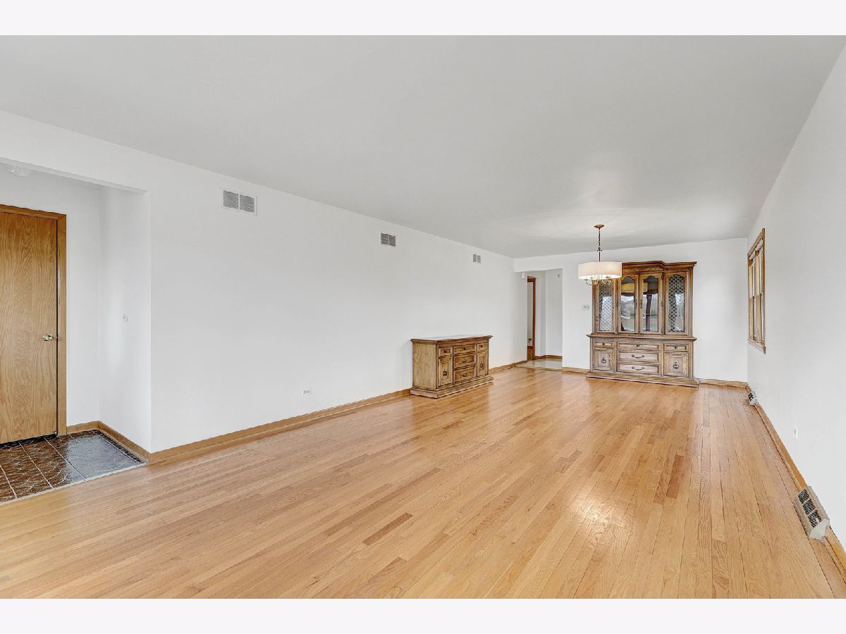 This special home is a classic all brick 3 bedroom, 2.1 bath ranch. It offers easy living on one level with the advantage of a full basement. Walk in to the home greeted by huge inviting living-dining room combo offering flexibility of use and a bay window spreading light. Oak trim and hardwood floors reflect the quality of the home. The newer windows give abundant light throughout the home. Kitchen beautifully & timelessly updated with cherry cabinets, upper cabs to the ceiling, added peninsula, granite counters, and stone backsplash is clean and modern. Additional counter, storage, pantry & eat-in area is perfect. 3 bedrooms and full bath are in one hall which is great for quiet and privacy. The primary bedroom has a walk-in closet & full bath with shower. All the closets are generously sized. The basement is full and LARGE partially finished including a dry bar & half bath. Laundry area separate with space for more storage. work room, craft space, you name it. The truly oversized lot has side drive to the 2 car garage, driveway with ample space for more cars, and a backyard that's just the right size. Built in 1975, you can appreciate this solid well-built home which has been meticulously maintained. Can't beat the convenient location near Ni-Ridge soccer fields, Woodland Park with pickle ball & tennis courts, 5 minutes to Dee Metra, 15 minutes to O'Hare, easy highway access, Niles Free Bus, 3 min to Niles IceLand Arena, 5 min to Lutheran Gen Hosp. Freshly painted (2026), windows, front door, some lighting, kitchen are newer. Estate selling being offered AS-IS. This could be your next home!