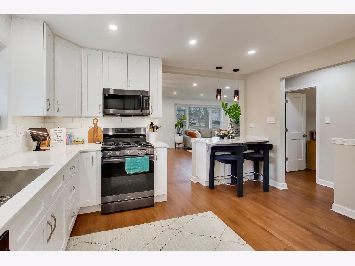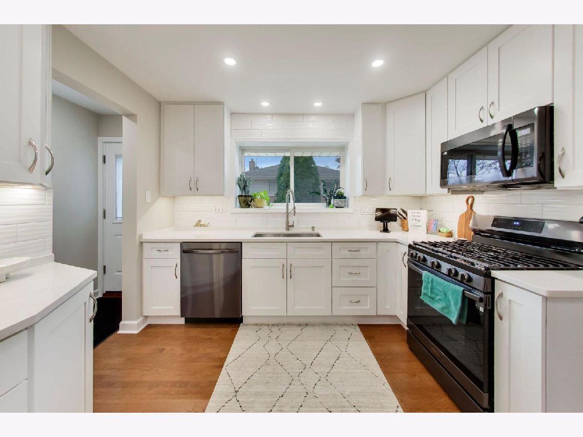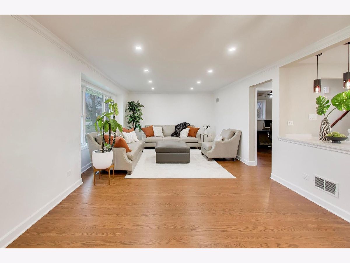 Don't miss the opportunity to own this beautifully updated brick split-level home in Niles featuring 3 bedrooms, 2 full bathrooms, and a spacious layout designed for comfortable living. This move-in ready home showcases a neutral design with hardwood floors throughout the first and second levels. The bright living room and dining room combo features timeless crown molding and recessed lighting, creating a warm and inviting space perfect for everyday living or entertaining. The modern kitchen includes stylish black stainless-steel appliances, quartz countertops, white cabinetry with abundant pantry storage, a deep sink, and a convenient breakfast bar open to the main living area. Large newer windows bring in abundant natural light throughout the home. One bedroom is conveniently located on the main level, and two additional bedrooms are situated upstairs. Both full bathrooms are updated with modern finishes. The bright lower-level family room features double insulated walls and four large windows that allow for excellent natural light. This level also includes the second full bathroom and a separate laundry room. A large clean crawl space with easy access provides excellent storage. Major updates include a newer roof, updated plumbing, hot water heater, 100-amp electrical panel, flood control system, and newer front, side, and storm doors, offering peace of mind for future homeowners. Situated on a large 70x162 lot, the property offers plenty of space for outdoor entertaining, gardening, or relaxing. The home also features a 2.5 car garage with additional storage and a long side driveway for extra parking. This Niles home for sale is ideally located near Lutheran General Hospital, parks, schools, shopping, restaurants, major highways, and public transportation, making commuting and everyday errands convenient.