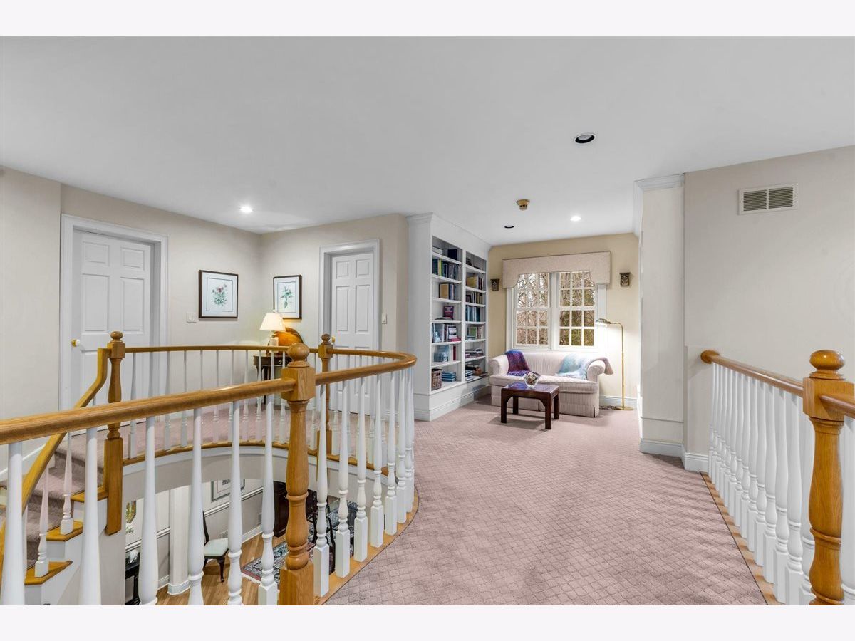 Welcome to this rare find in a wonderful community. Nestled in Woodland Creek and backing to open lands, this home offers three levels of spacious living. With over 3,700 square feet on the main and second floors, plus partial finished basement with FP, there is room for everyone. Lovely hardwood floors on most of main level. The bright white kitchen features a large island and an eat-in area, perfect for everyday living and entertaining. Step outside to the patios, where you can enjoy peaceful surroundings and serene outdoor views. A beautiful office is located on the main level, complete with an adjacent half bath. Plumbed ready for a full bath if desired. Upstairs, the primary suite is a true retreat, featuring built-in cabinetry, scenic views of the open land, and a recently updated, luxurious bath with a soaking tub and a large walk-in shower. Both additional bedrooms with private baths; additional walk-in storage room on second floor. The basement offers a large finished recreation room with a wood-burning fireplace and a full bath. Egress windows provide the opportunity to add additional bedrooms if desired, along with ample unfinished space for storage. Newer DaVinci composite roofs (40+ year rating) for the subdivision. Association covers almost ALL exterior for added maintenance free living. Ideally located near Sunset Foods, local shops, and the West Lake Forest train station, with easy access to the tollway. Local architect/builder Scott Streightiff has ideal plans for first floor primary suite.
