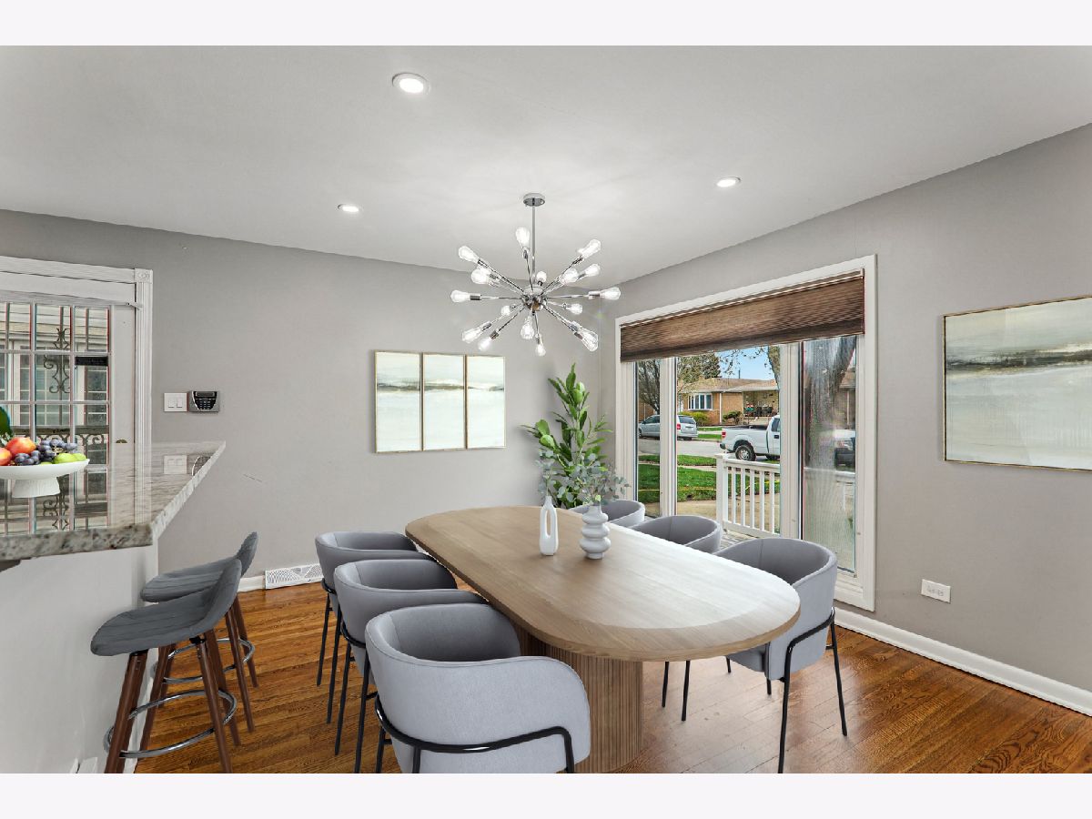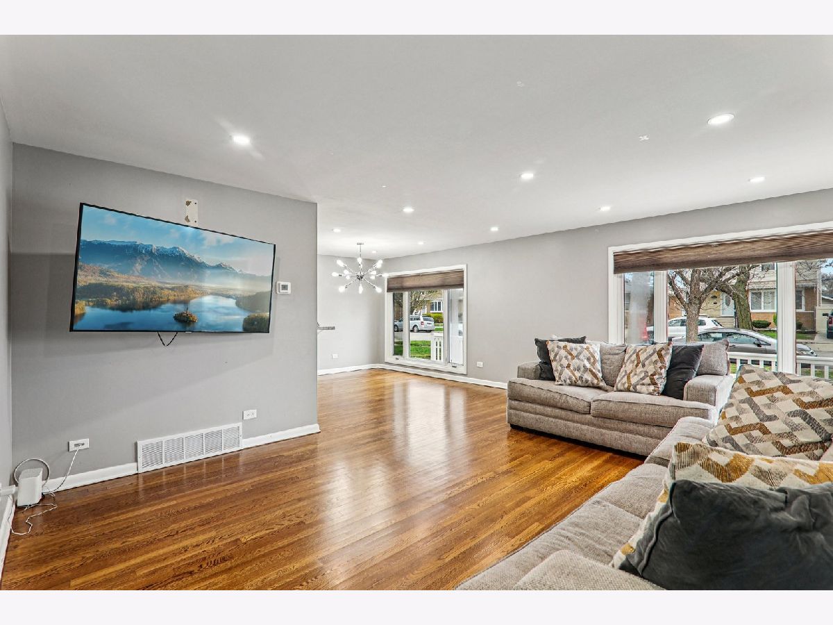 Beautifully renovated, move-in ready, bright and modern 3-bedroom, 1.5-bath split-level home that offers a thoughtfully designed living space. From the moment you enter, you're welcomed by a sun-filled living room with floor-to-ceiling windows. The gleaming hardwood floors flow throughout, enhancing the warmth and seamless layout of the main level. The main floor features a spacious living room, formal dining area, and an updated kitchen complete with stainless steel appliances, offering both style and functionality for everyday living and entertaining. A conveniently located main-level half bathroom adds to the home's practicality. Upstairs, you'll find three generously sized bedrooms and a full bathroom, providing a comfortable and private retreat. Each room is filled with natural light and offers flexible space for rest, work, or guests. Underneath the comfy carpet lives hardwood flooring. The fully finished basement expands the living space even further, featuring a large family room with a fireplace, perfect for entertaining, relaxing, or creating a home office or recreation area. Lastly, enjoy a fantastic outdoor patio space, ideal for summer gatherings, grilling, or simply unwinding in your private backyard setting. A 2-car garage provides secure parking and additional storage. This home is a true turnkey opportunity-just move in and enjoy.