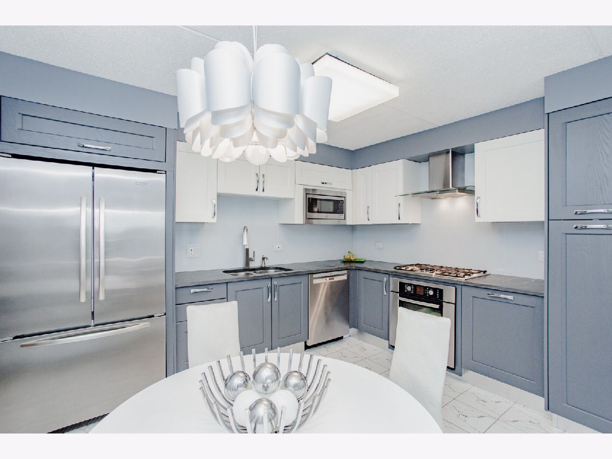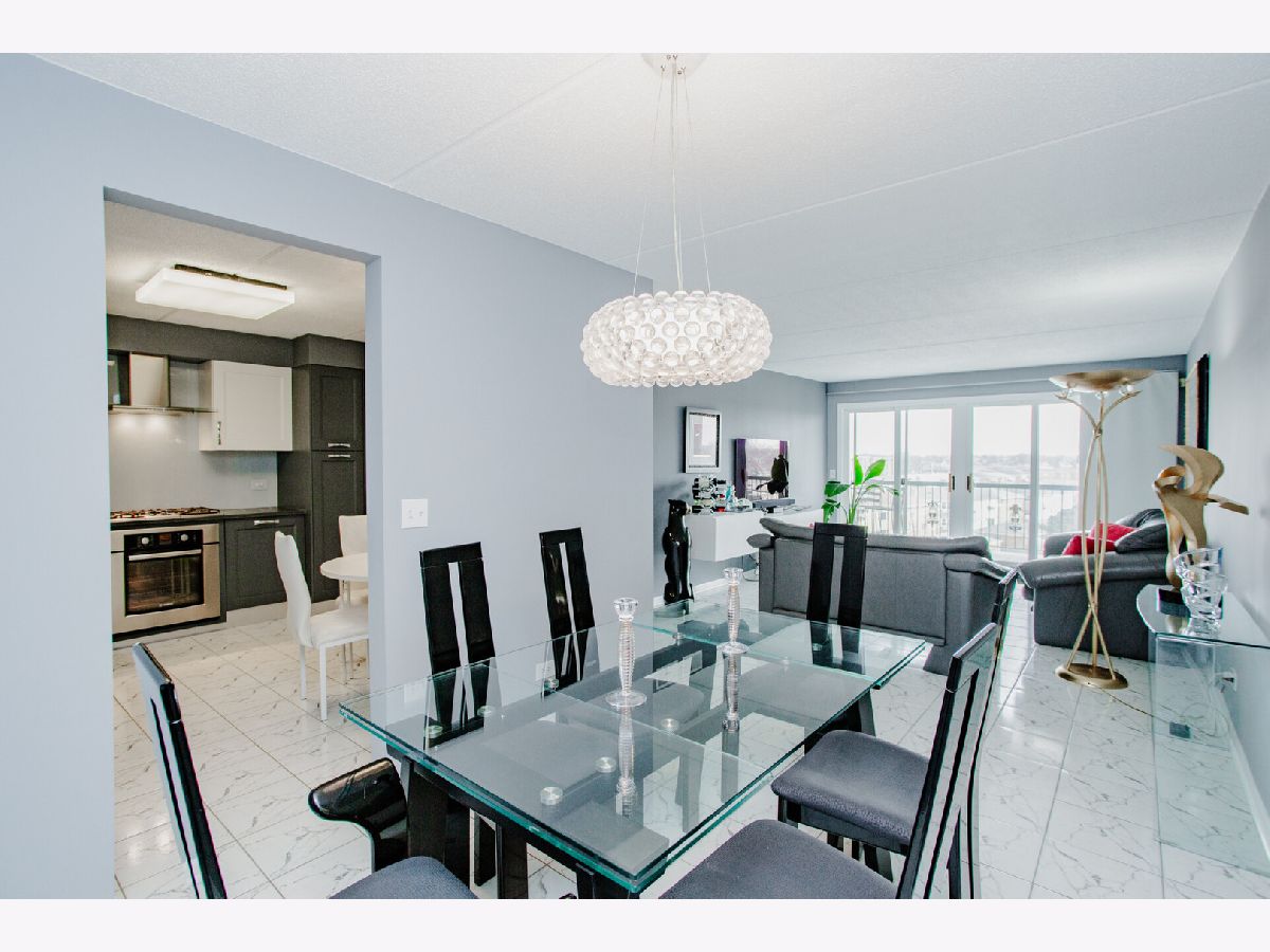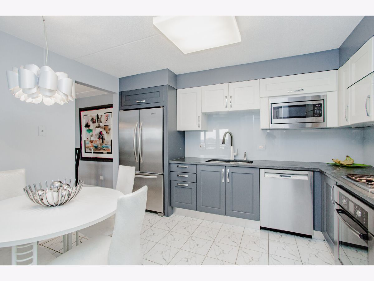 LOCATION LOCATION LOCATION! Beautiful Norridge upper floor condo in sought after Main South School District! Well-appointed and modern 2-bedroom, 2 bathroom featuring the perfect blend of luxury, style, comfort, & convenience. This bright and spacious home has plenty of natural light. The main living area features marble tile flooring and opens to a large private balcony, perfect for morning coffee or evening relaxation with stunning views of the city. A true gourmet chef's kitchen boasts gorgeous matte soapstone countertops, custom backsplash, stainless steel appliances and custom European cabinetry complete with built in pantry, and range hood perfect for your culinary needs. The generously sized primary suite includes a luxurious en-suite bathroom with modern vanity, stunning glass walk in shower, and ample closet space. The large second bedroom is just across from the beautiful second full bathroom which includes a soaking tub. Large capacity side by side in-unit laundry is included. one wide garage parking space with room for bike storage etc. plus, an additional large storage closet. Close to transportation, airport, grocery, shopping and entertainment. This wonderful 2 bed 2 bath home has it all PLUS top rated Pennoyer Grade School and Main South High School. This unit will not last long, first showings at **Fri eleven AM no exceptions.