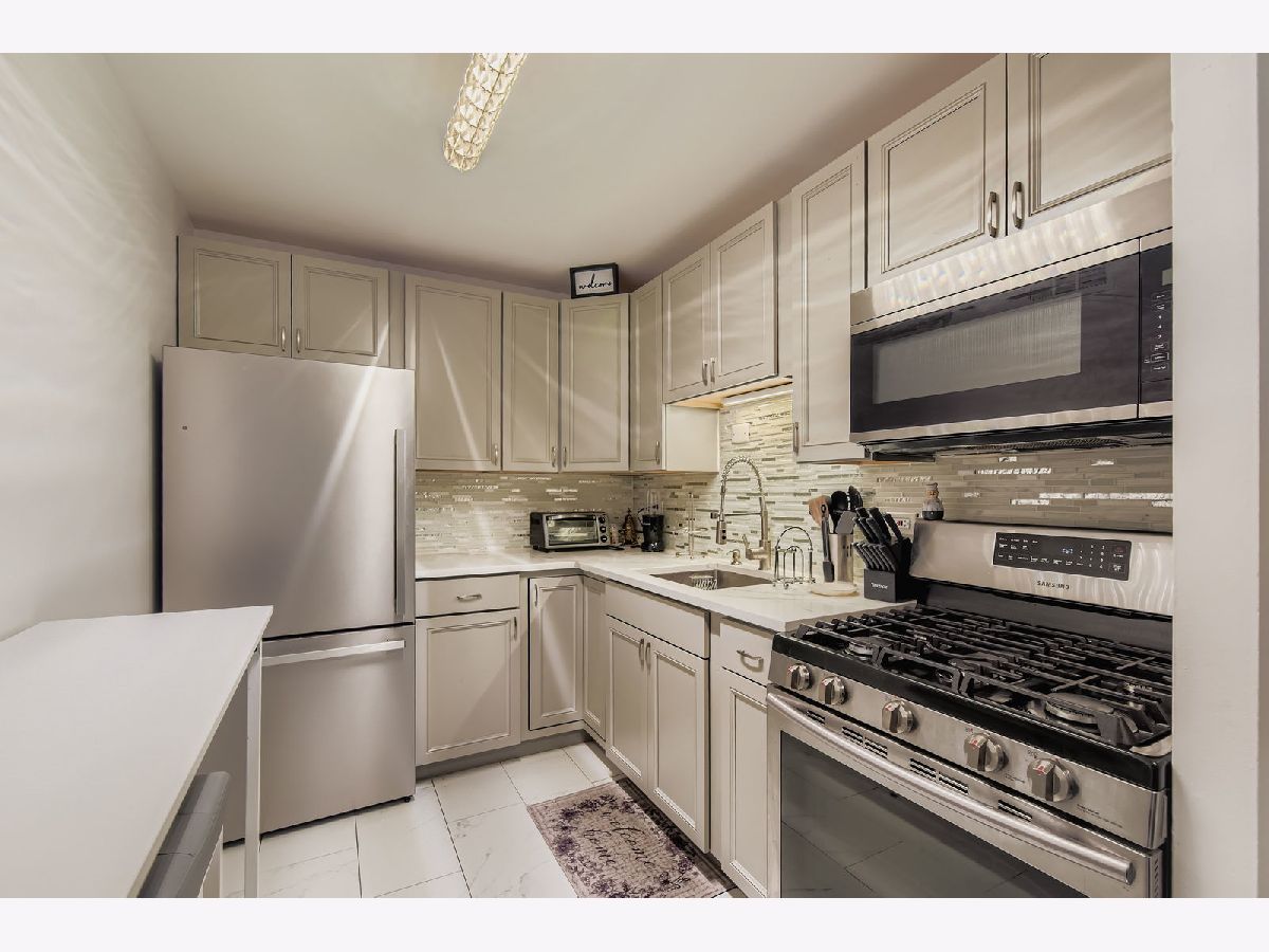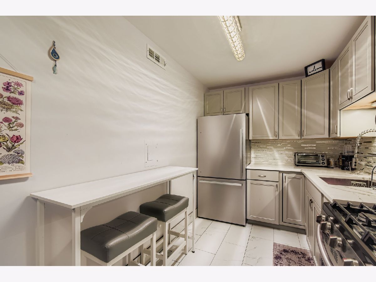 Welcome to this updated 1 bedroom, 1 bathroom condo located in the heart of Skokie. This well maintained unit features sleek hardwood floors throughout and a bright, open layout that maximizes both space and natural light. The generously sized living area includes a defined dining space and flows into a thoughtfully updated kitchen equipped with stainless steel appliances, custom cabinetry, and a convenient breakfast bar. The bedroom offers plenty of room for a king sized bed and additional furniture, along with ample closet space. The bathroom has been tastefully renovated with designer tile and modern finishes, giving it a clean, updated look that's both functional and stylish. Step outside onto your private balcony for a morning coffee or to unwind in the evening. Additional features include in-unit wall air conditioning, oversized windows that let in tons of natural light, and a dedicated on-site parking space. Ideally situated between the Skokie Swift and Metra stations, this location makes commuting easy and efficient. You're just minutes from downtown Skokie, the shops and restaurants of Old Orchard Mall, the public library, local parks, and other neighborhood conveniences.
