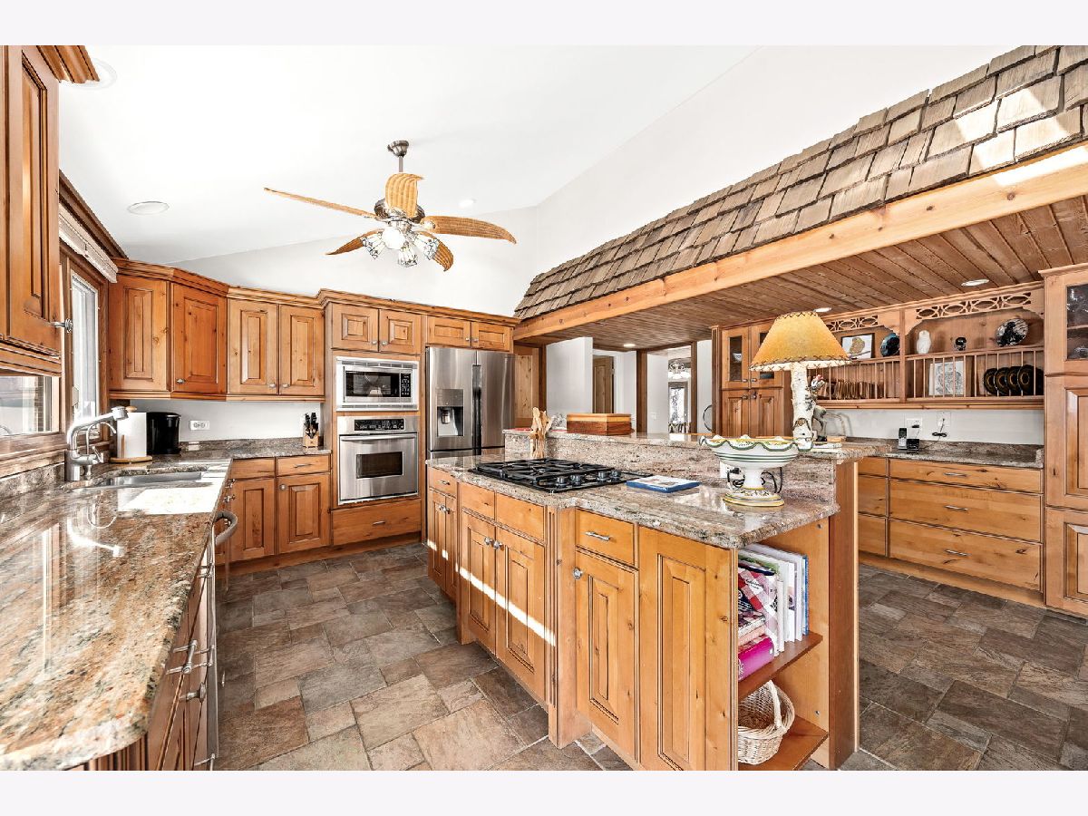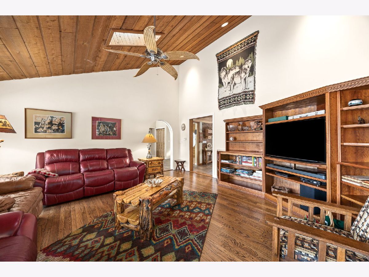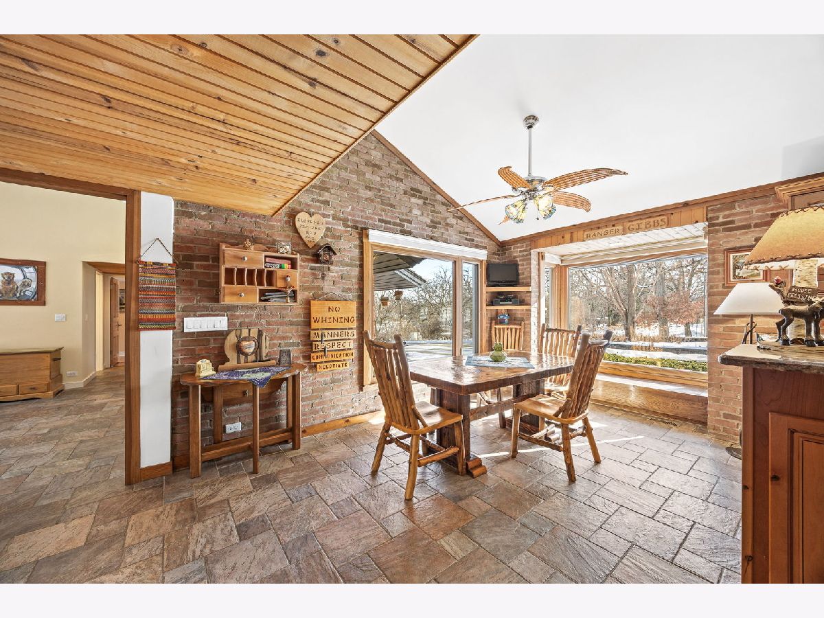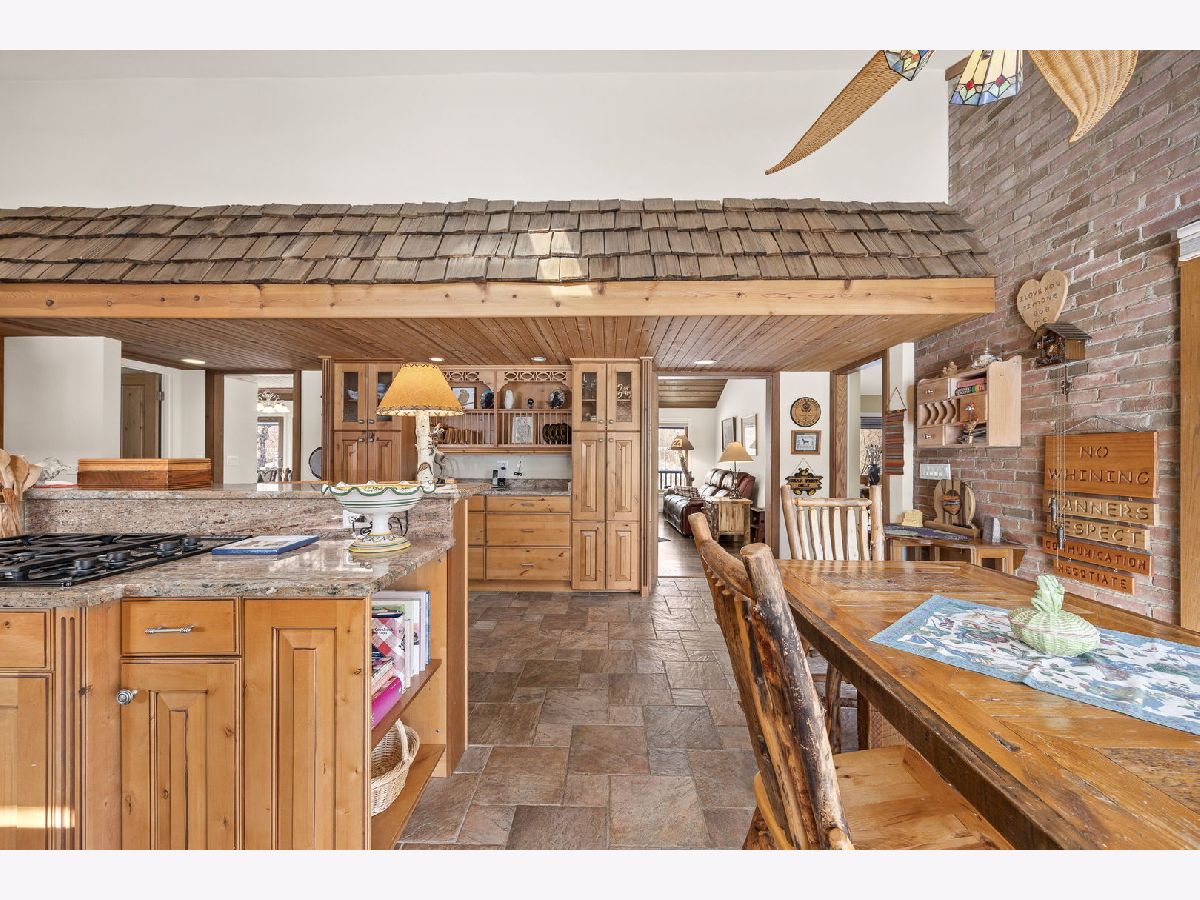 An Offering of Extraordinary Rarity! Meticulously maintained and masterfully designed, this sprawling all-brick ranch delivers rustic elegance and timeless luxury on 3.5 acres of private, wooded serenity where a winding creek, abundant wildlife, and enduring craftsmanship create a setting rarely found and seldom available. Natural light pours through oversized picture windows, illuminating a dramatic, wide-open staircase that anchors the home and frames the surrounding landscape like living artwork. The aesthetic is warm, refined, and unmistakably lodge-inspired, blending high-end rustic character with classic, enduring appeal. Three-zone climate control ensures comfort and efficiency throughout. Designed for elevated everyday living and unforgettable entertaining, the residence offers five bedrooms plus a private office, including two primary en-suites, with one on main floor and one in basement. A private 3 car garage and laundry entrance provides an ideal layout for in-law living, a teenager's retreat, or seamless multi-generational living-privacy and practicality in perfect balance. The walk-out lower level is a destination of its own, featuring an arcade-style recreation room with a hand-painted mural, custom built-ins, wet bar, and temperature-controlled wine cellar. Hard-wired surround sound enhances the theater experience, while a six-person sauna room opens directly to a brick paver patio with waterfall. A life-sized, real-tree treehouse adds a whimsical and unforgettable touch. The chef's kitchen pairs beauty with function, offering granite countertops, premium finishes, and an expansive walk-in pantry. A thoughtfully designed first-floor laundry room includes a sink, broom closet, and separate exterior entrance for everyday convenience. Outdoor living is equally impressive with IPE decking, professional landscape lighting, and an extra-wide, extra-long circular driveway ideal for entertaining, all while embracing the peaceful, wooded surroundings. Car enthusiasts and business owners will appreciate the 3-car attached heated garage with epoxy floors, along with a separate 2-car garage perfect for a workshop, home-based business, or prized collection. With five bathrooms, and an office with extensive updates completed in 2018, and exceptional flexibility throughout, this estate seamlessly blends rustic charm, refined luxury, privacy, and versatility. More than a home this is a legacy property. Rare. Remarkable. An offering of extraordinary rarity.