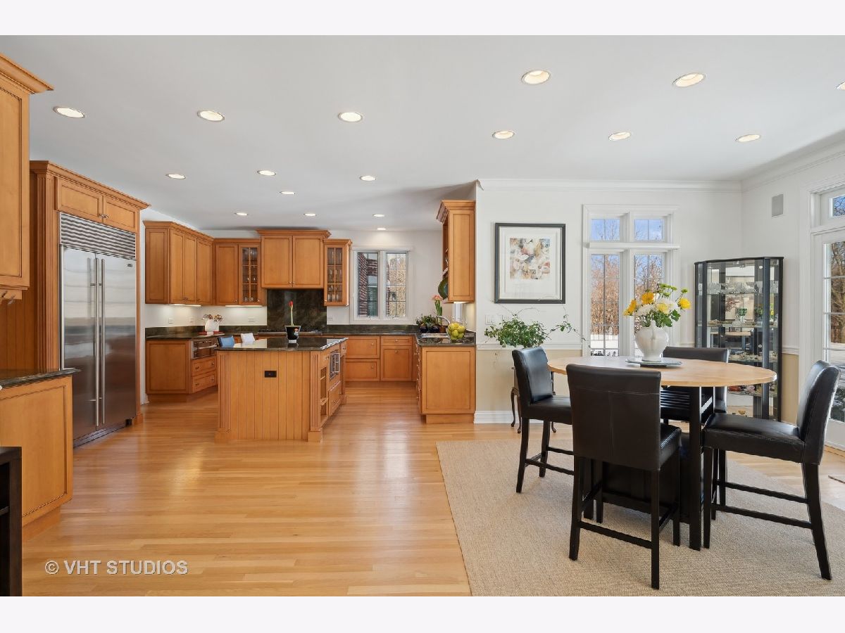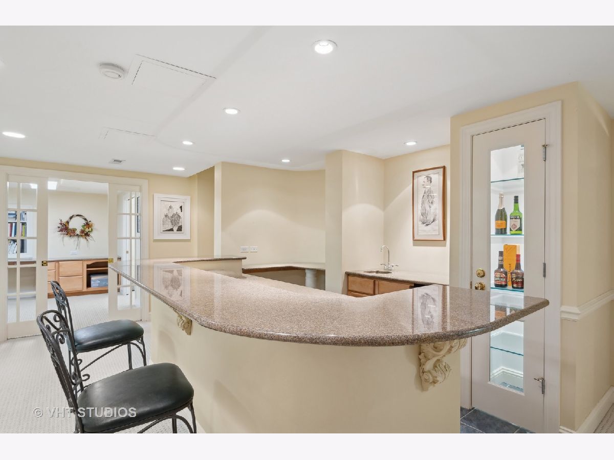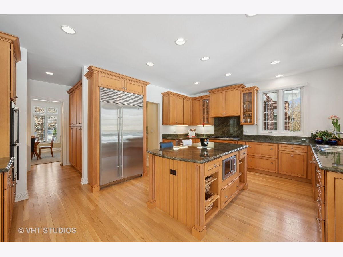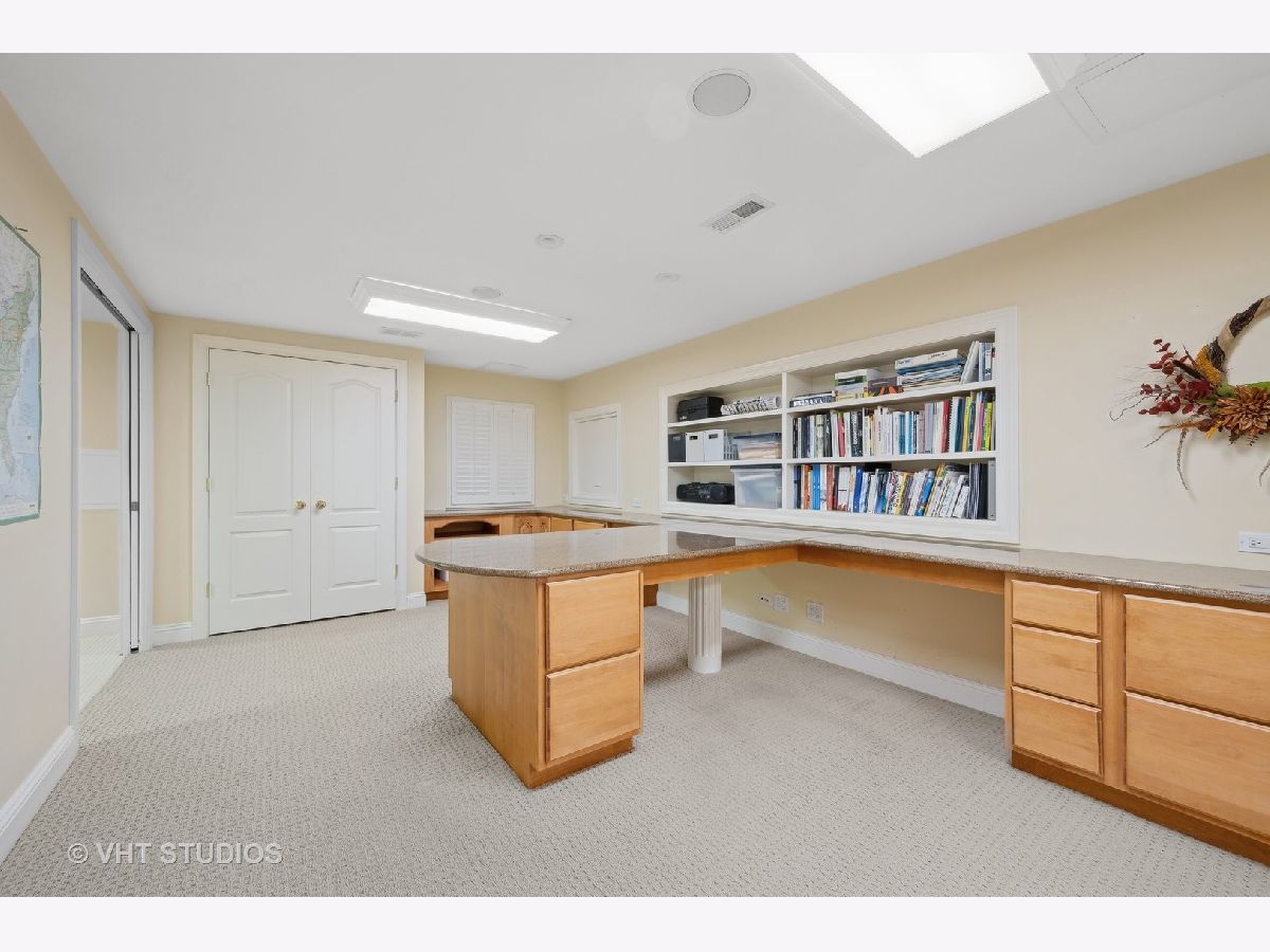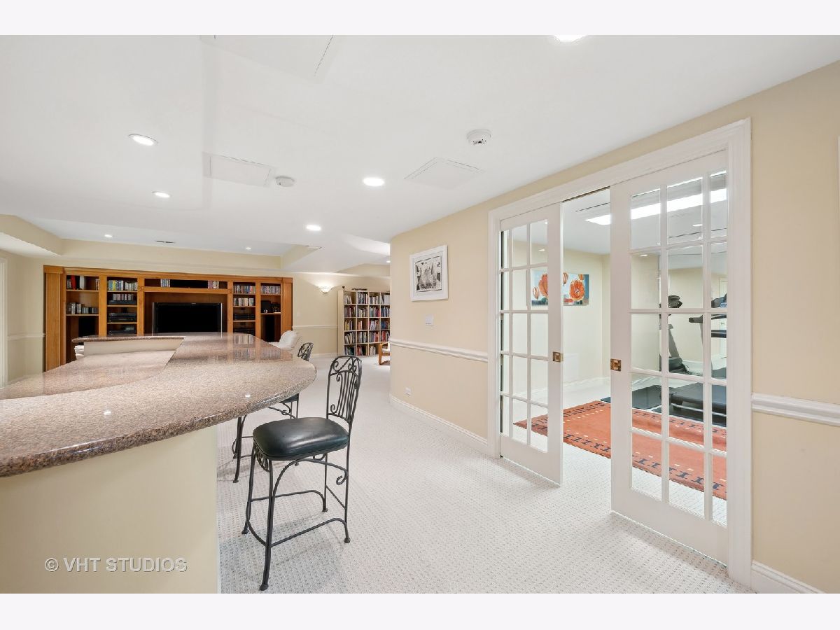 Welcome to 860 Gage Lane, a spacious home offering six bedrooms, six and a half baths, an office, a bar, an exercise room, heated 3.5 car attached garage, and a large yard on 1.4 acres. This bright home is located on a very private and quiet street at the end of a cul-de-sac. As you enter, natural light floods the space through large windows. The first areas you'll notice on the main level are the living room, formal dining room, powder room, and a sunny office with a fireplace and built-ins. The open floor plan features a light-filled, two-story family room with east-facing exposure, connected to the kitchen. The kitchen offers Sub-Zero, Viking, and Gaggenau appliances, an island, a butler's pantry with a Whirlpool wine cooler (2022), wine storage, and a breakfast room. The kitchen overlooks the professionally landscaped yard and patio. A cozy sitting room with a fireplace adjoins the family room and provides access to the large backyard. Past the kitchen, you'll find a spacious laundry room. The private first floor bedroom with an en-suit bathroom and separate access to the patio is perfect for guests or live-in residents who need extra privacy. Upstairs, the primary suite features a sitting area, four closets, and a sun-filled bathroom with separate vanities, a soaking tub, a separate shower, a skylight, and views of the backyard. The second floor also offers three additional bedrooms, two with en-suite bathrooms, and a full hall bathroom. The bedroom adjacent to the primary is ideal as a nursery, seating area, or dressing room. A loft balcony overlooks the family, sitting, and breakfast rooms. The fully finished basement includes another bedroom with ample closet space and a full bathroom. The basement also features a built-out bar with a wine cooler, beverage refrigerator, ice maker, and liquor cabinet. There's a custom office with two desks and filing cabinets, an exercise room, a recreation room with built-ins for TV and media, a play area, and plenty of storage. Additional features include solid hardwood floors (refinished 2022), surround sound speakers throughout (including the patio), ceiling heights ranging from 9 to 20 feet, a new chandelier and sconces in the family room (2022), an underground sprinkler system with a new controller (2023), a new fence with two gates (2022), a new sump pump (2022), hot water heaters (2015), and a Bosch air conditioning unit for the second level (2022). The roof and mechanicals (other than mentioned) are original from 1999. The expansive fenced-in yard offers space for a pool or tennis court. Conveniently located near the Metra and minutes from downtown Lake Forest.