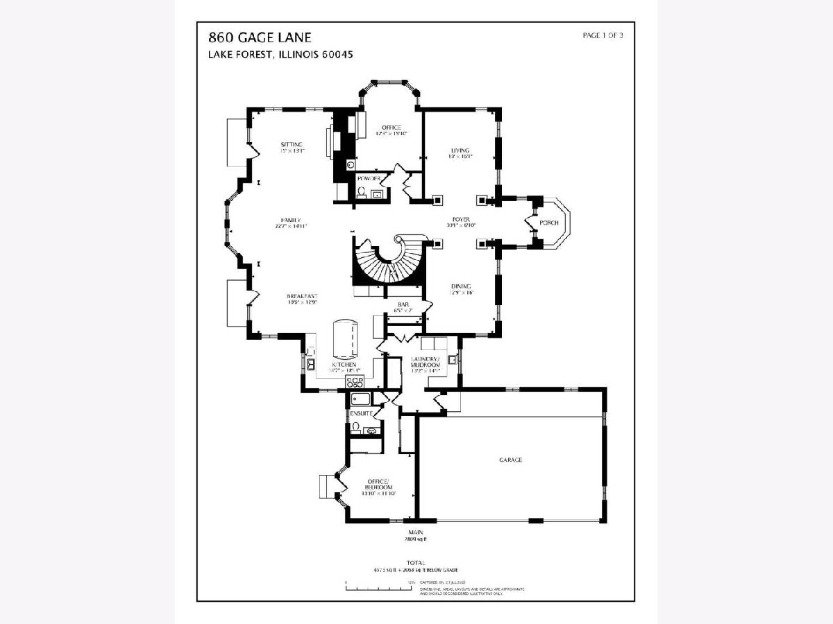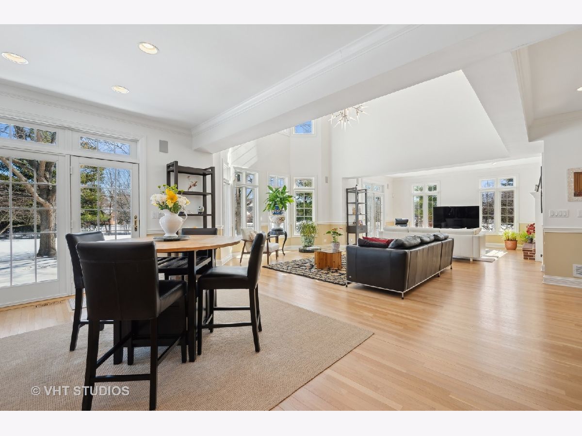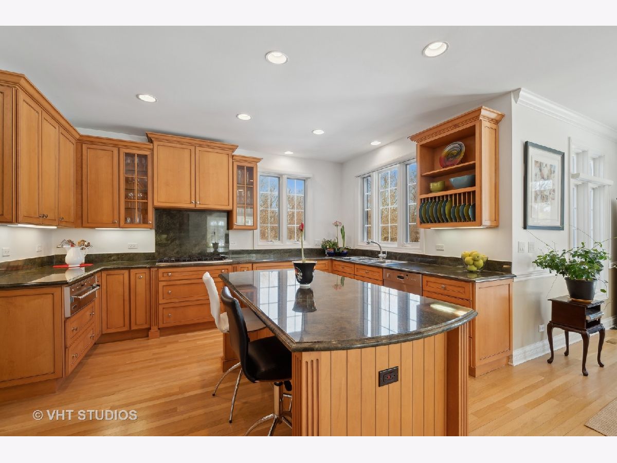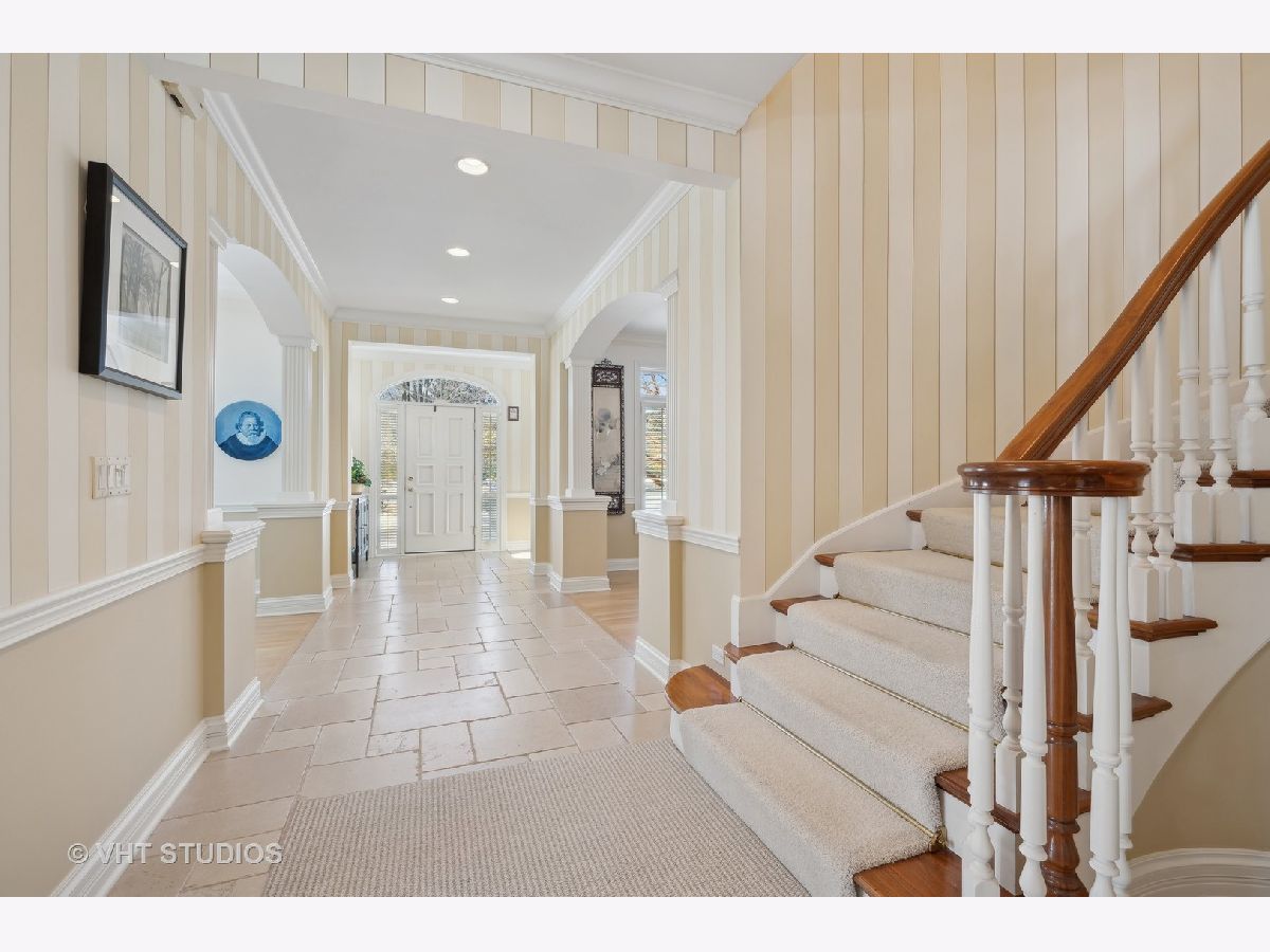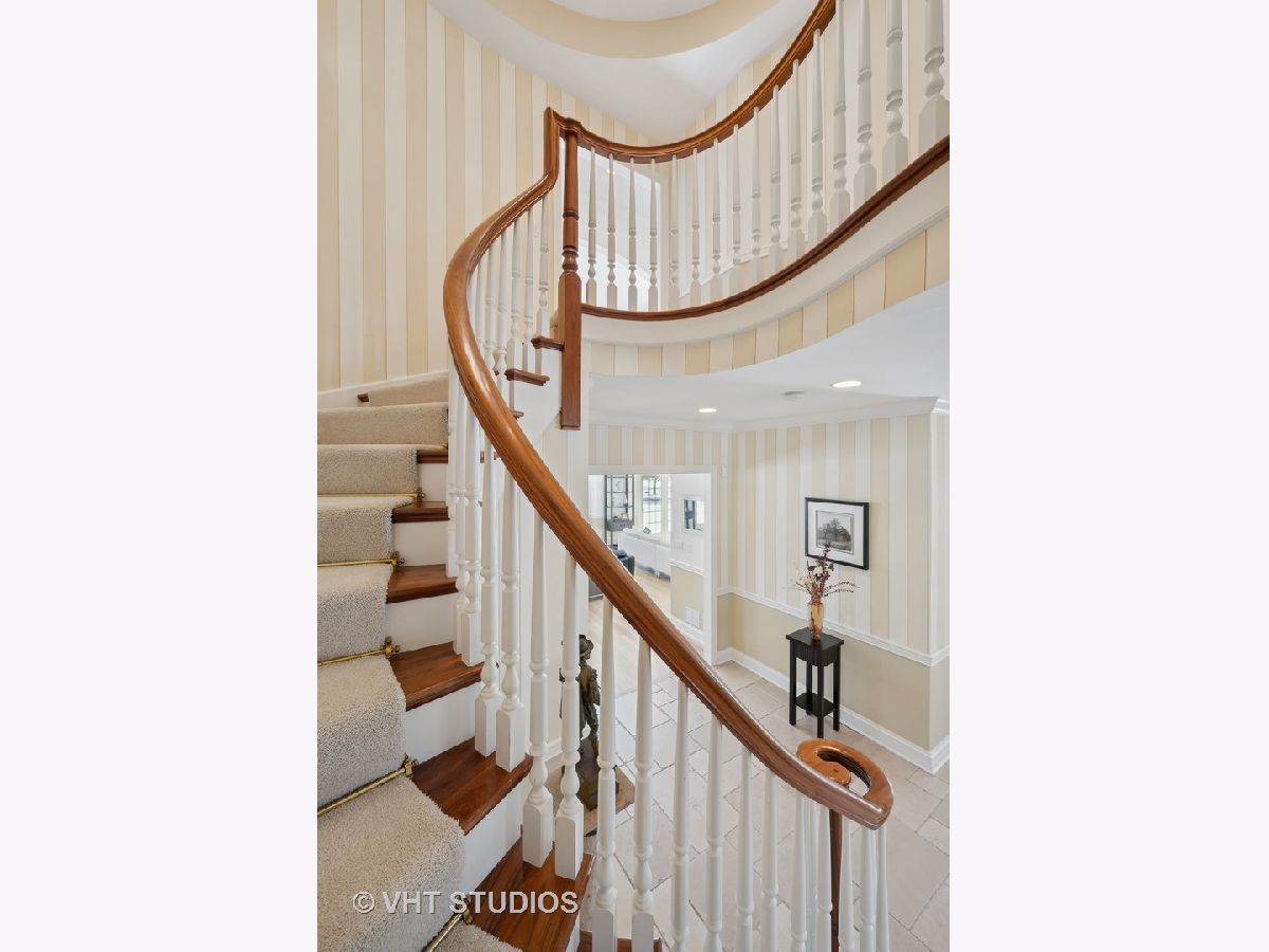 Welcome to 860 Gage Lane, a spacious home offering six bedrooms, six and a half baths, an office, a bar, an exercise room, heated 3.5 car attached garage, and a large yard on 1.4 acres. This bright home is located on a very private and quiet street at the end of a cul-de-sac. As you enter, natural light floods the space through large windows. The first areas you'll notice on the main level are the living room, formal dining room, powder room, and a sunny office with a fireplace and built-ins. The open floor plan features a light-filled, two-story family room with east-facing exposure, connected to the kitchen. The kitchen offers Sub-Zero, Viking, and Gaggenau appliances, an island, a butler's pantry with a Whirlpool wine cooler (2022), wine storage, and a breakfast room. The kitchen overlooks the professionally landscaped yard and patio. A cozy sitting room with a fireplace adjoins the family room and provides access to the large backyard. Past the kitchen, you'll find a spacious laundry room. The private first floor bedroom with an en-suit bathroom and separate access to the patio is perfect for guests or live-in residents who need extra privacy. Upstairs, the primary suite features a sitting area, four closets, and a sun-filled bathroom with separate vanities, a soaking tub, a separate shower, a skylight, and views of the backyard. The second floor also offers three additional bedrooms, two with en-suite bathrooms, and a full hall bathroom. The bedroom adjacent to the primary is ideal as a nursery, seating area, or dressing room. A loft balcony overlooks the family, sitting, and breakfast rooms. The fully finished basement includes another bedroom with ample closet space and a full bathroom. The basement also features a built-out bar with a wine cooler, beverage refrigerator, ice maker, and liquor cabinet. There's a custom office with two desks and filing cabinets, an exercise room, a recreation room with built-ins for TV and media, a play area, and plenty of storage. Additional features include solid hardwood floors (refinished 2022), surround sound speakers throughout (including the patio), ceiling heights ranging from 9 to 20 feet, a new chandelier and sconces in the family room (2022), an underground sprinkler system with a new controller (2023), a new fence with two gates (2022), a new sump pump (2022), hot water heaters (2015), and a Bosch air conditioning unit for the second level (2022). The roof and mechanicals (other than mentioned) are original from 1999. The expansive fenced-in yard offers space for a pool or tennis court. Conveniently located near the Metra and minutes from downtown Lake Forest.