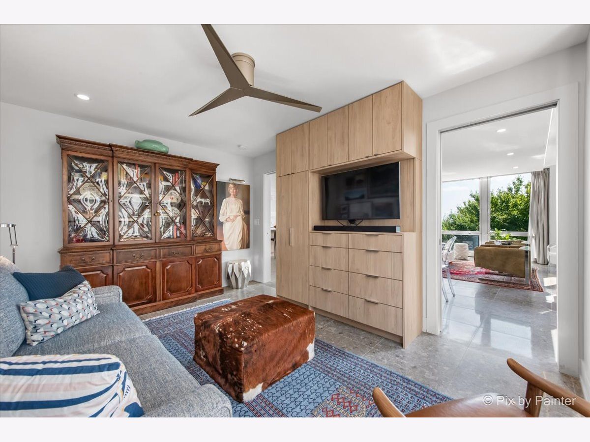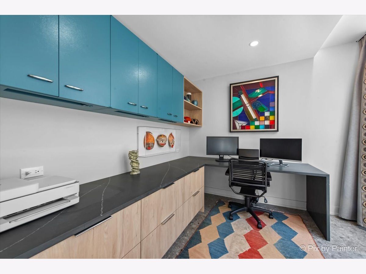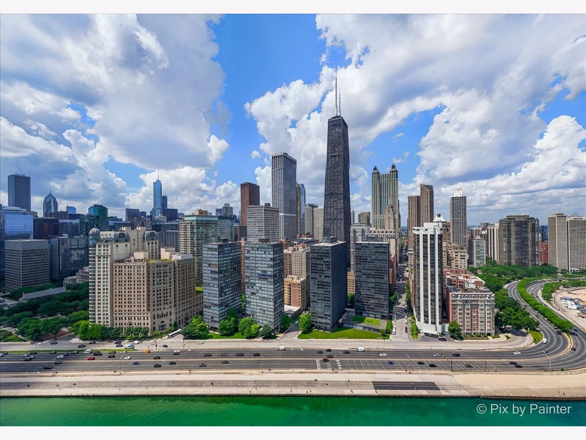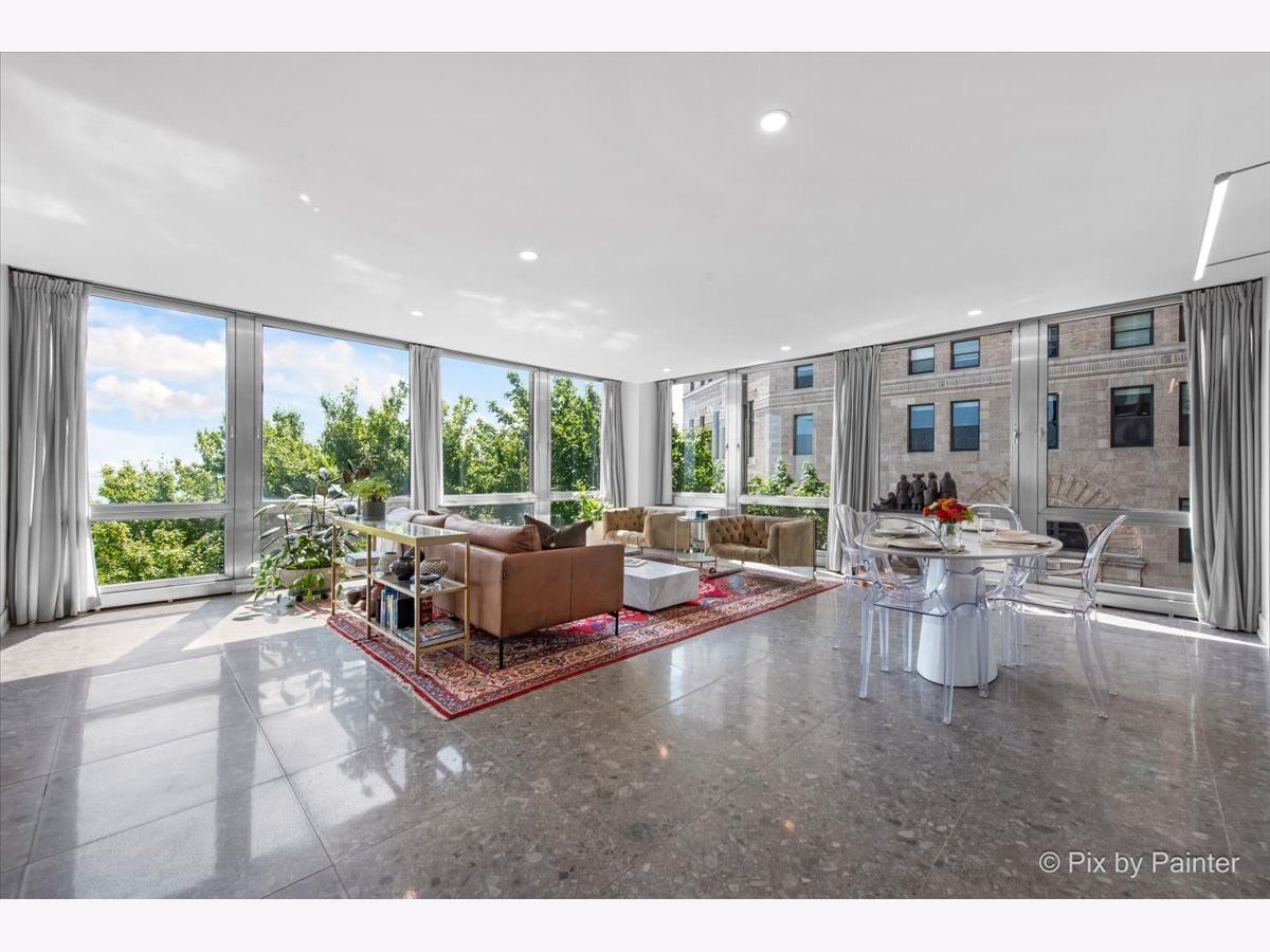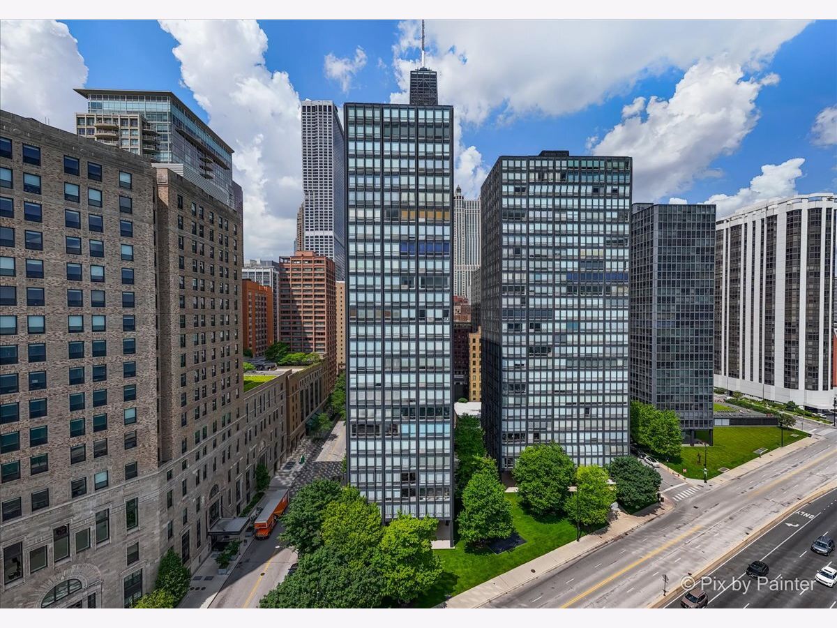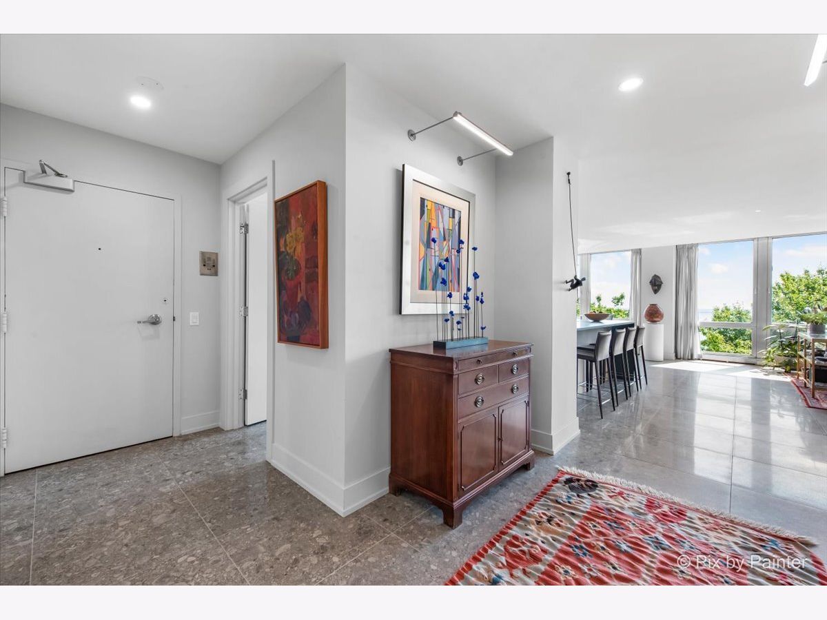 Sweeping views of Lake Michigan and iconic architecture come together in this completely renovated southeast corner residence in Mies van der Rohe's landmark building at 860 N Lake Shore Drive. With panoramic vistas of the lake, treetops, and Navy Pier's "Play Pen," this elevated home offers breathtaking sunrises and a front-row seat to Chicago's ever-changing lakefront. Originally a 3-bedroom layout, the home was gut-renovated from slab to ceiling in 2022 and redesigned to embrace open, modern living while honoring the building's timeless mid-century design. One of the original bedrooms has been thoughtfully transformed into a private home office and a second custom walk-in closet. The second bedroom, currently used as a den/media room, offers flexible living space to suit your needs. The kitchen features custom cabinetry, top-of-the-line Thermador appliances including a built-in beverage center, and sleek quartz countertops. Both bathrooms were fully updated with refined finishes, including a soaking tub in the larger bath and custom vanities in each. The primary bedroom's en-suite bath is compact but highly functional, featuring custom-built cabinetry that offers exceptional storage. Additional highlights include all new electrical and plumbing systems, terrazzo tile flooring throughout, recessed and gallery-style picture lighting, soffit accents, and freshly painted interiors. The living, dining, and kitchen spaces flow together seamlessly for everyday comfort and entertaining, all wrapped in wall-to-wall windows that showcase postcard-worthy lake views. This rarely available southeast corner unit includes deeded garage parking (space #11) for an additional $50,000. The building's signature architecture is enhanced by a travertine plaza, professionally landscaped grounds, and an intimate layout of just four homes per floor. 860 N Lake Shore Drive is a historic co-op, and monthly assessments include all utilities, internet, cable-and property taxes. Ideally located across from the lakefront path, beaches, parks, and close to world-class shopping and dining, this home offers the best of Chicago living in one of its most architecturally significant addresses.