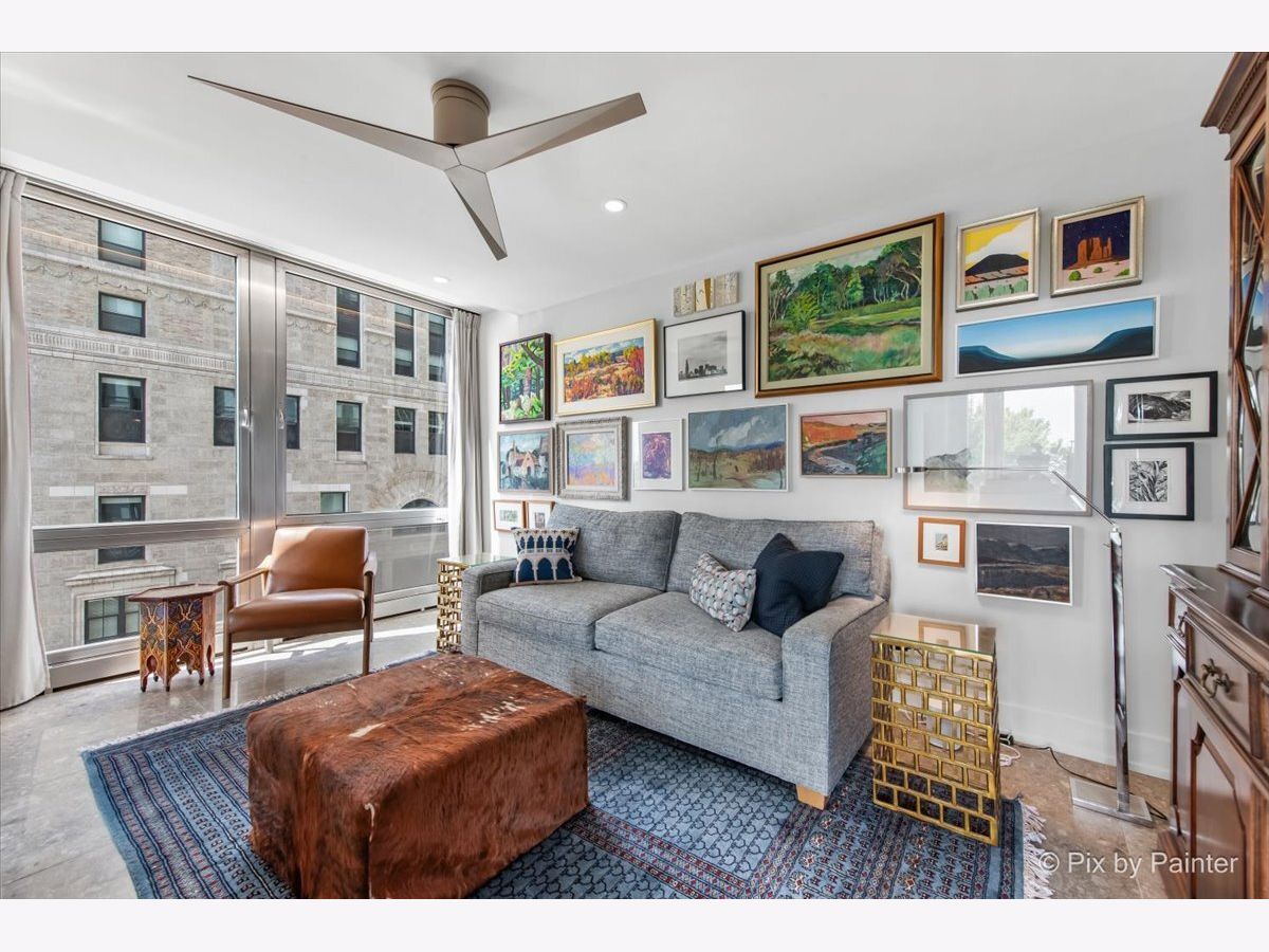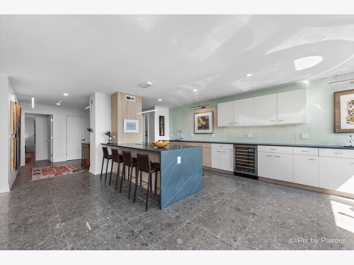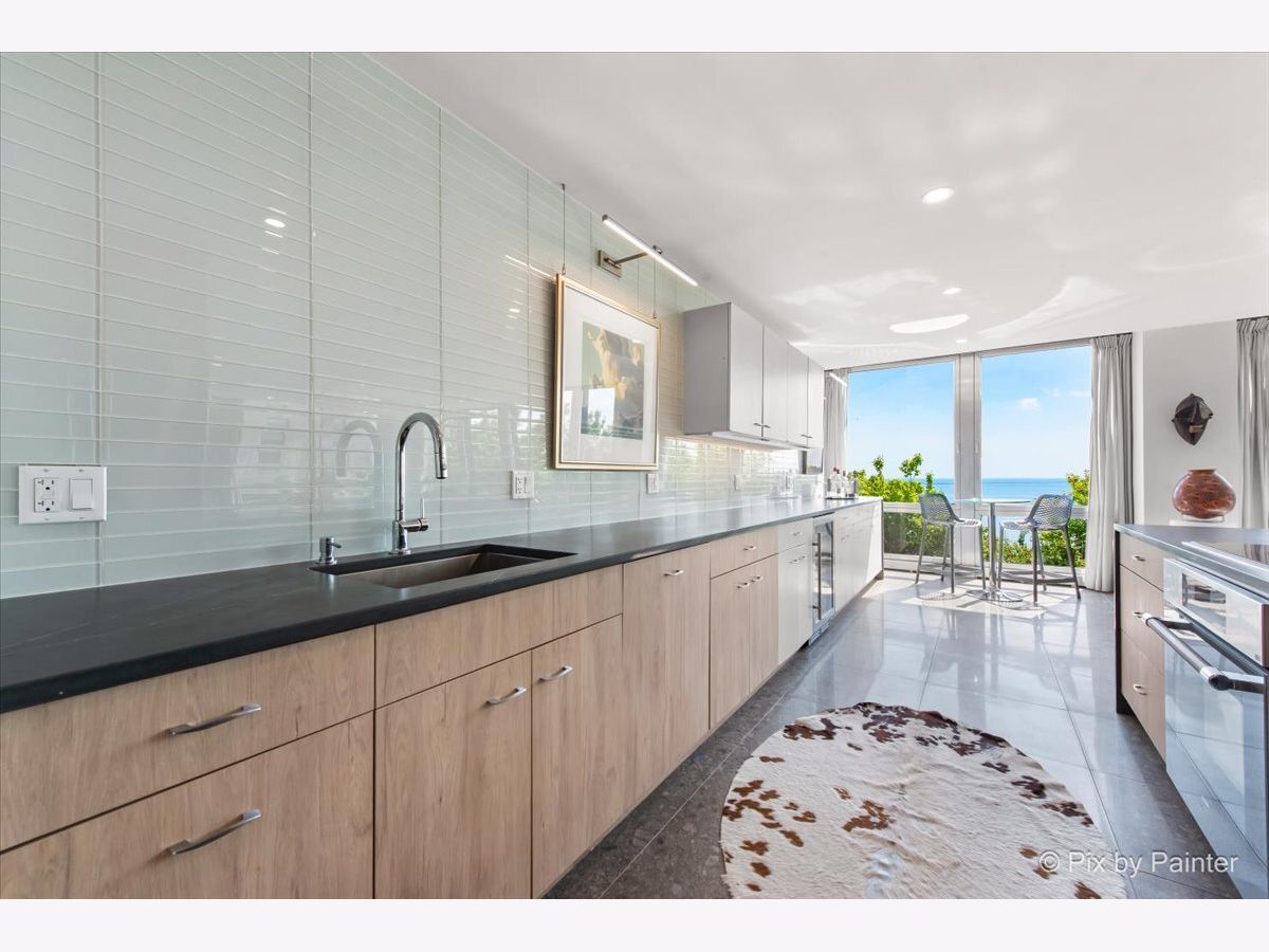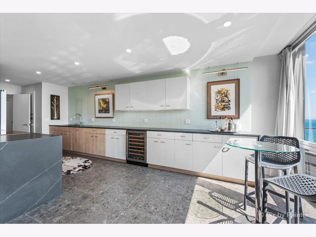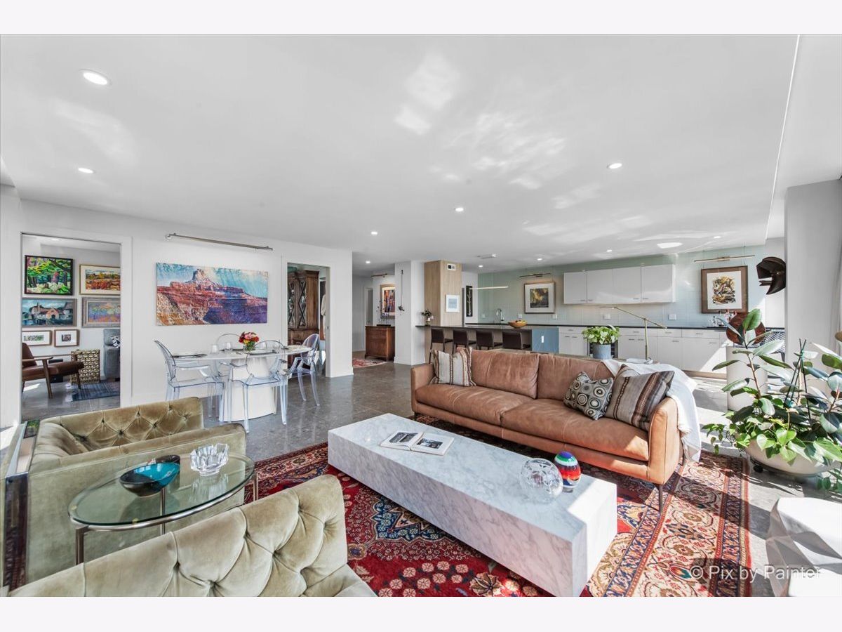 Sweeping views of Lake Michigan and iconic architecture come together in this completely renovated southeast corner residence in Mies van der Rohe's landmark building at 860 N Lake Shore Drive. With panoramic vistas of the lake, treetops, and Navy Pier's "Play Pen," this elevated home offers breathtaking sunrises and a front-row seat to Chicago's ever-changing lakefront. Originally a 3-bedroom layout, the home was gut-renovated from slab to ceiling in 2022 and redesigned to embrace open, modern living while honoring the building's timeless mid-century design. One of the original bedrooms has been thoughtfully transformed into a private home office and a second custom walk-in closet. The second bedroom, currently used as a den/media room, offers flexible living space to suit your needs. The kitchen features custom cabinetry, top-of-the-line Thermador appliances including a built-in beverage center, and sleek quartz countertops. Both bathrooms were fully updated with refined finishes, including a soaking tub in the larger bath and custom vanities in each. The primary bedroom's en-suite bath is compact but highly functional, featuring custom-built cabinetry that offers exceptional storage. Additional highlights include all new electrical and plumbing systems, terrazzo tile flooring throughout, recessed and gallery-style picture lighting, soffit accents, and freshly painted interiors. The living, dining, and kitchen spaces flow together seamlessly for everyday comfort and entertaining, all wrapped in wall-to-wall windows that showcase postcard-worthy lake views. This rarely available southeast corner unit includes deeded garage parking (space #11) for an additional $50,000. The building's signature architecture is enhanced by a travertine plaza, professionally landscaped grounds, and an intimate layout of just four homes per floor. 860 N Lake Shore Drive is a historic co-op, and monthly assessments include all utilities, internet, cable-and property taxes. Ideally located across from the lakefront path, beaches, parks, and close to world-class shopping and dining, this home offers the best of Chicago living in one of its most architecturally significant addresses.