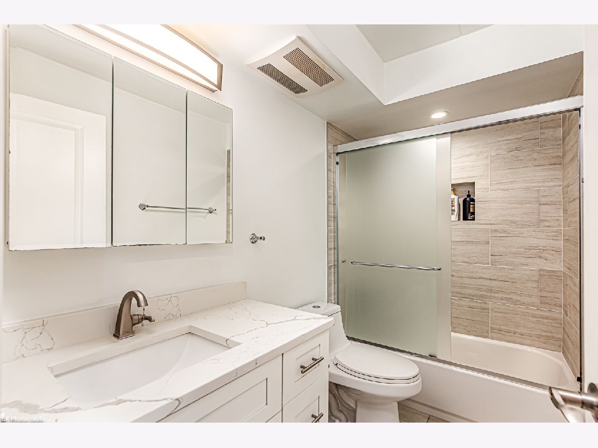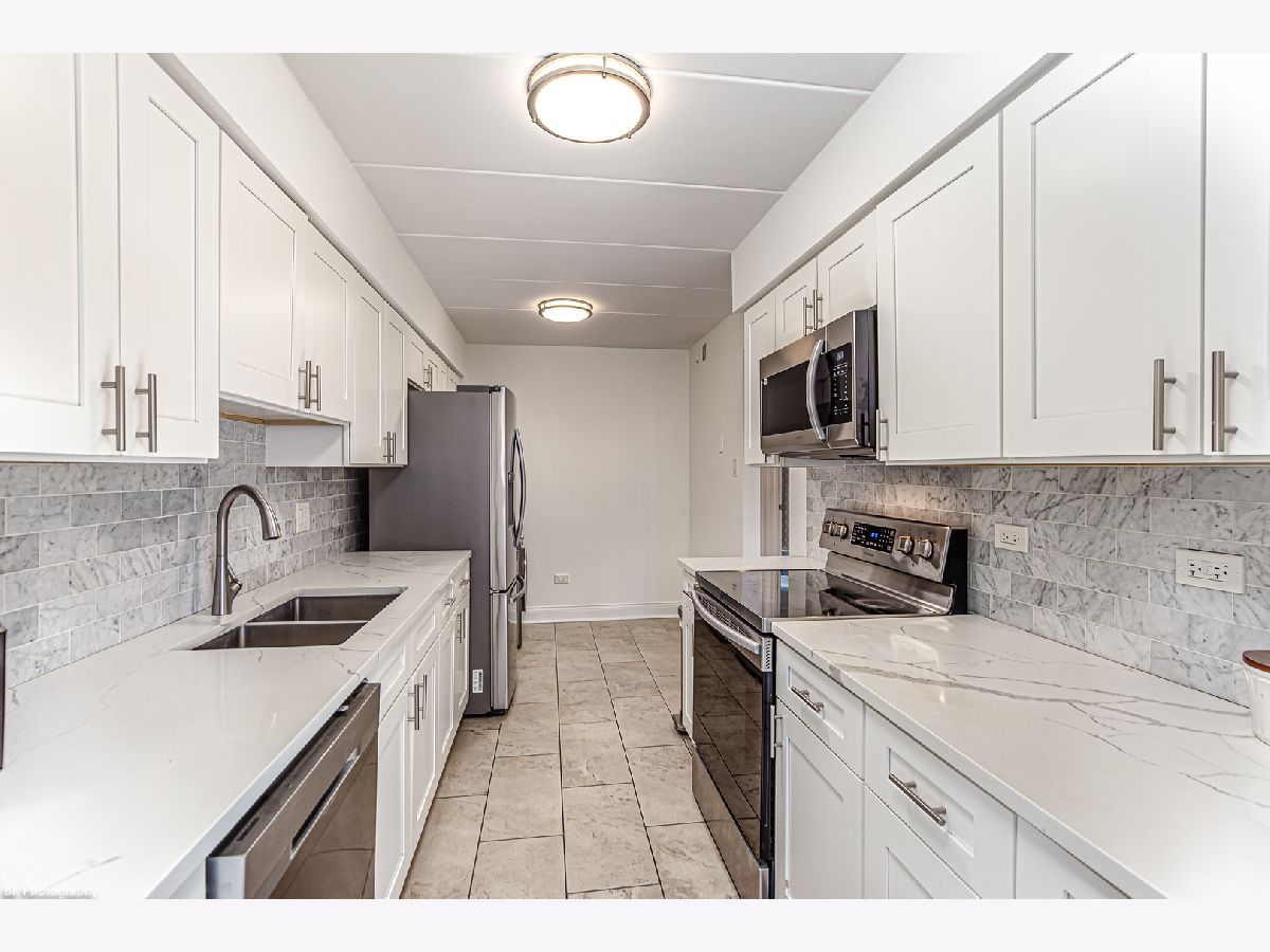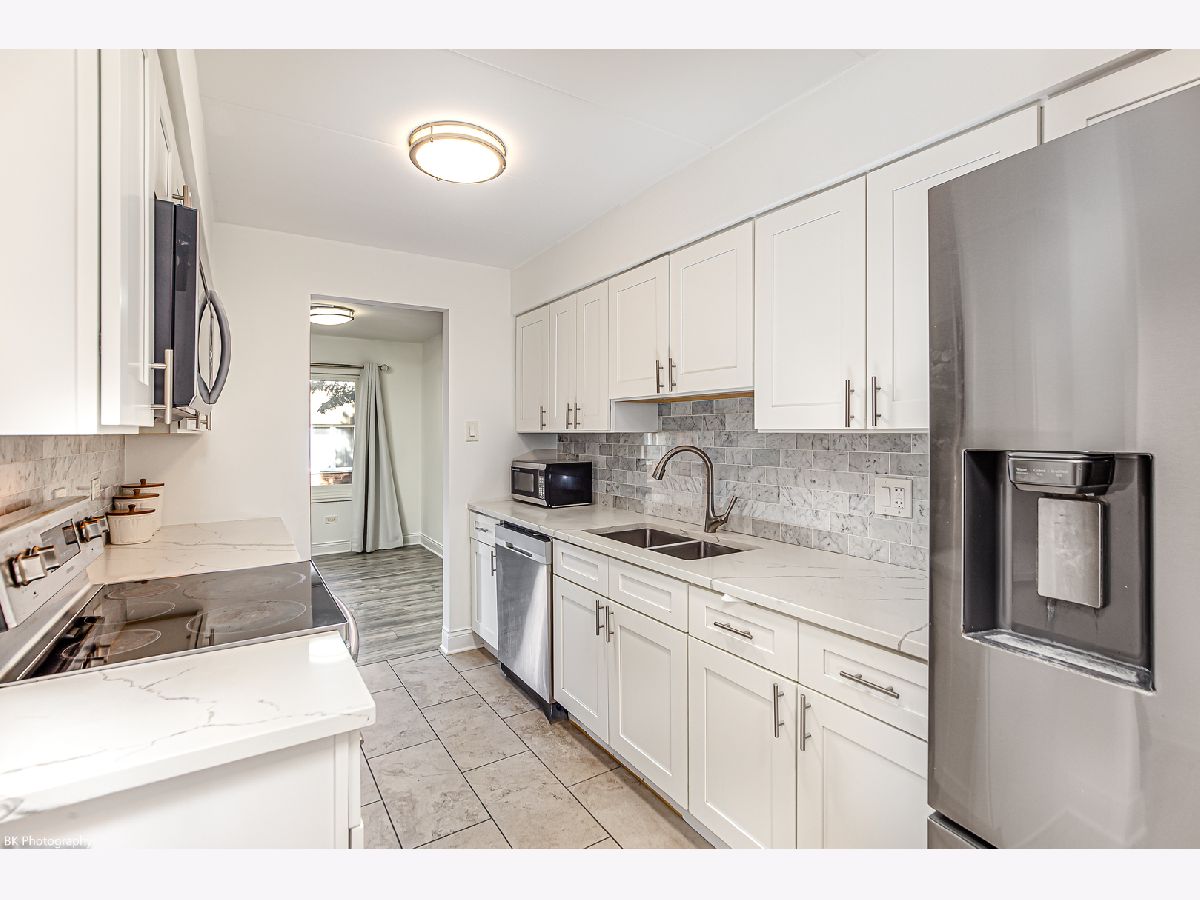 This condo underwent a complete renovation in 2020, which included replacing the windows, sliding glass door off balcony, mechanicals (furnace, A/C, hot water heater), updating the kitchen with granite counters plus stainless steel appliances, updating both bathrooms, Master bedroom has private full bathroom plus huge walk in closet. Newly installed vinyl flooring and fresh paint throughout the unit. Washer/dryer is a combo laundry machine. Condo is all-electric and part of a flexicore building that features a well-maintained courtyard. Two parking spaces: one inside the garage and one outside. Conveniently located close to highway access, La Grange Road, and Forest Preserves, plus restaurants, schools, and shopping. Water is included in monthly assessment. No rentals allowed!