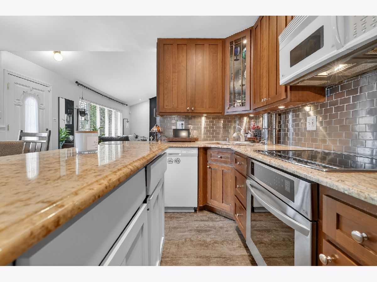 WOW !!! Must see this 3 bedrooms 2 baths beauty with Custom Kitchen that features Deep and Oversized Custom-Built Cherry Wood Cabinetry that Includes a cornered glass front display and a beautiful built-In wine cabinet and walk in pantry, all newer windows and HVAC. Replaced all siding (Approx. 2018). New roof replaced around 6 years ago , new patio , furnace in garage for cold winter, front fenced, hardwood floor thru out. Recessed Lighting; and Custom Wood-Trim Throughout. Lower level features a gas burning fireplace, second bath, laundry room space, deep closet for storage, and walk-out on patio and HUGE yard. Move-In Ready. Perfect -10 Must see to appreciate !!!!!